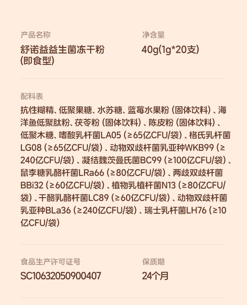 【社群-蓝莓味】1盒装 舒诺益益生菌冻干粉(1000亿活菌 )