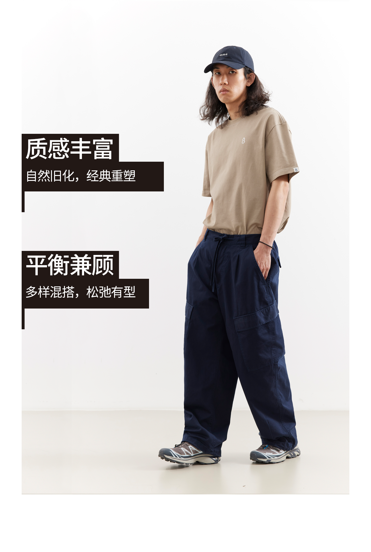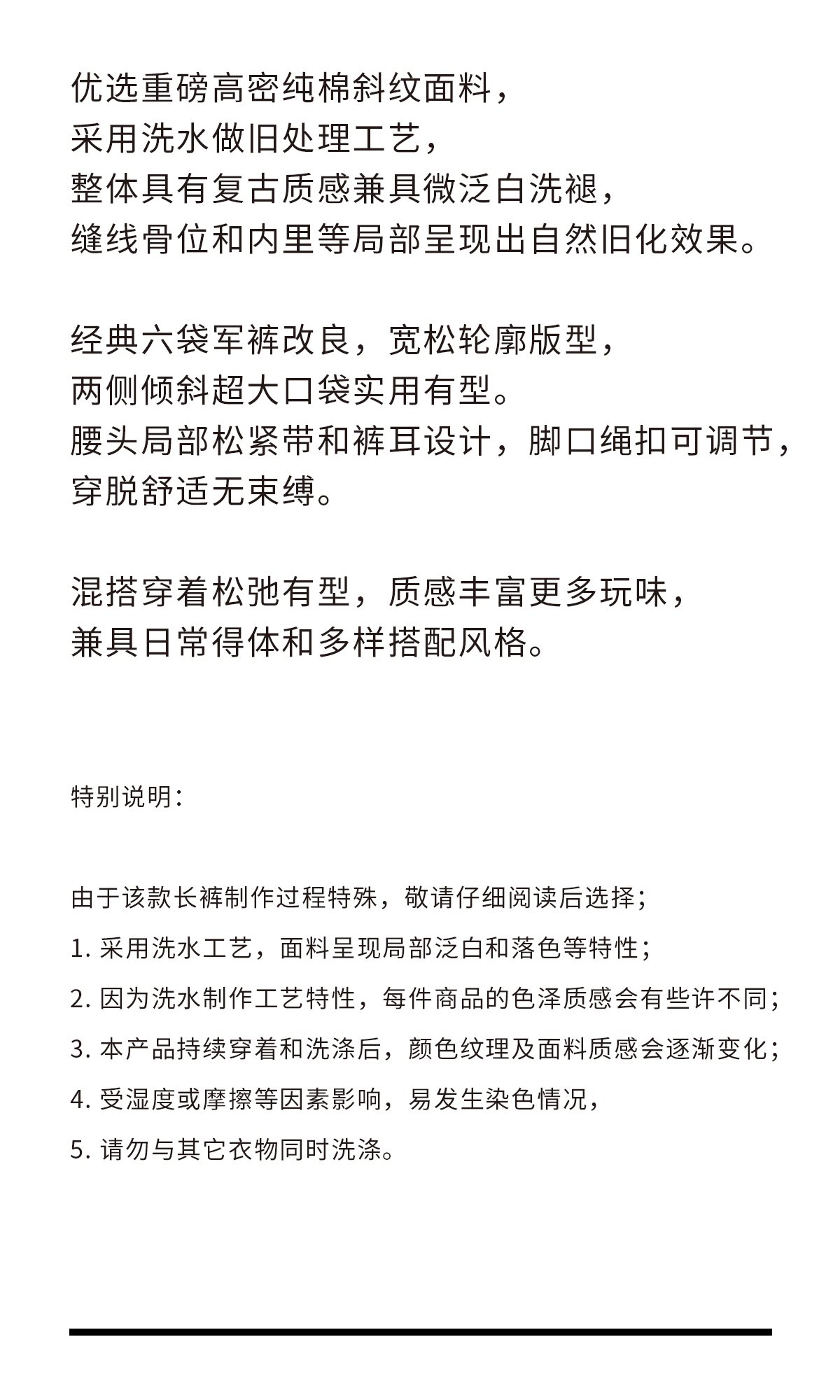 吃茶去chichaqu25全棉洗水口袋长裤宽松复古休闲工装男女
