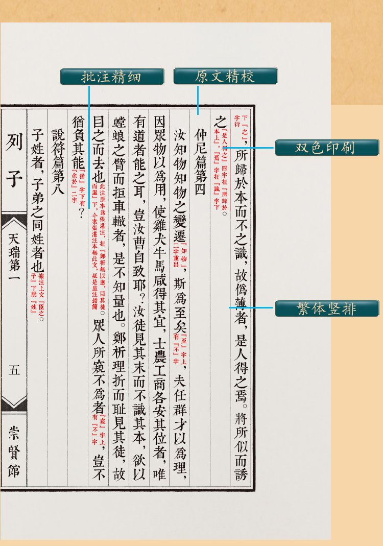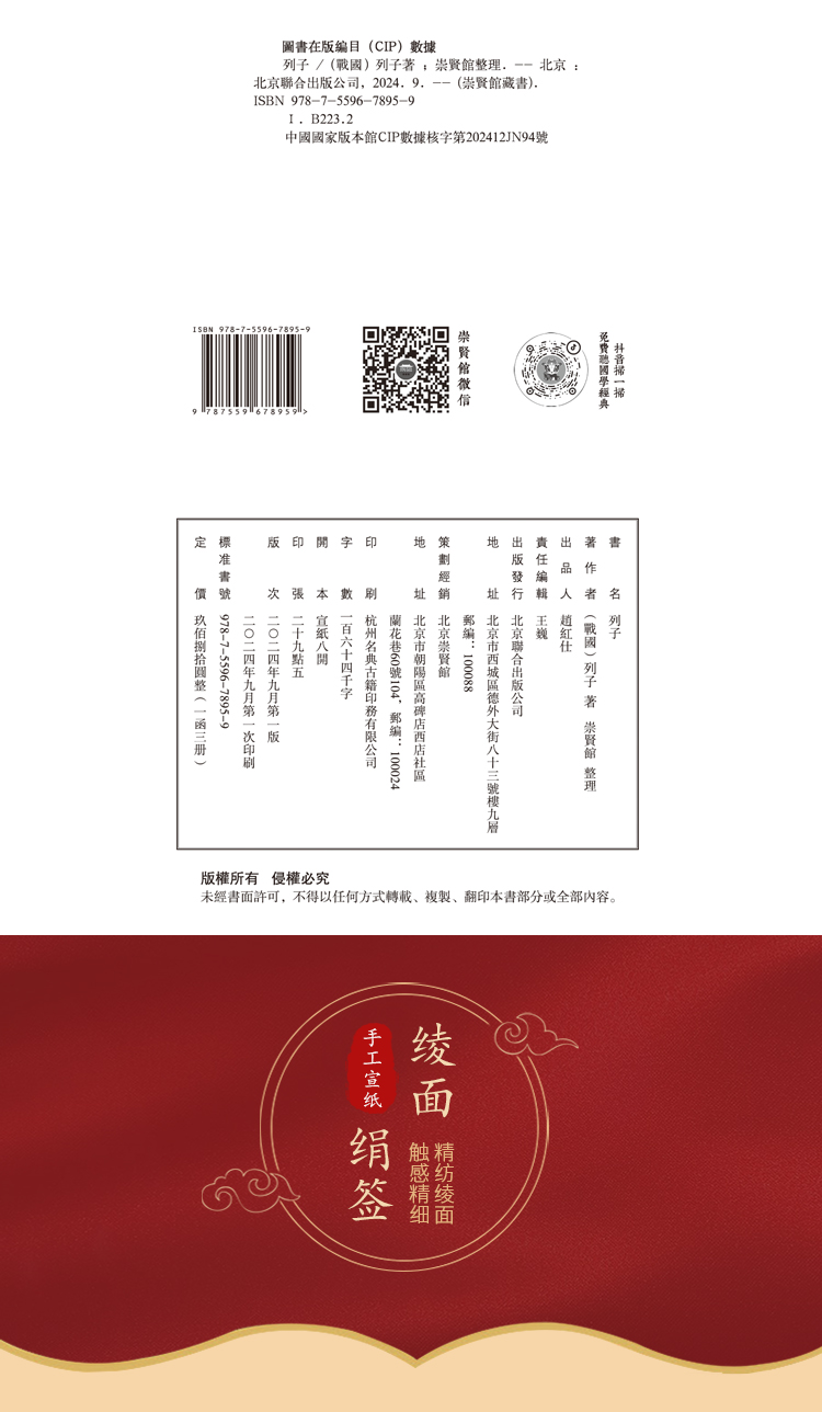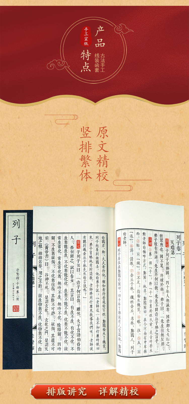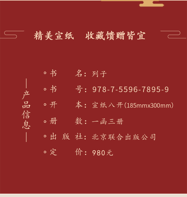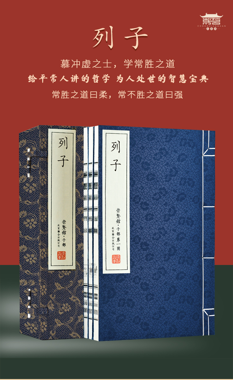 崇贤善本《列子》一函三册 手工宣纸线装竖排繁体字