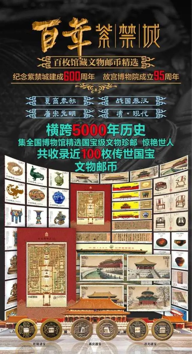 这两套珍邮大全可厉害了,不仅涵盖今年故宫新邮票,还涵盖紫禁城宫殿建筑群、文物典藏、宫廷历史文化遗存、明清档案、清宫典籍以及故宫博物院历史六个方面的相关珍邮,文化收藏意义和升值潜力非凡。