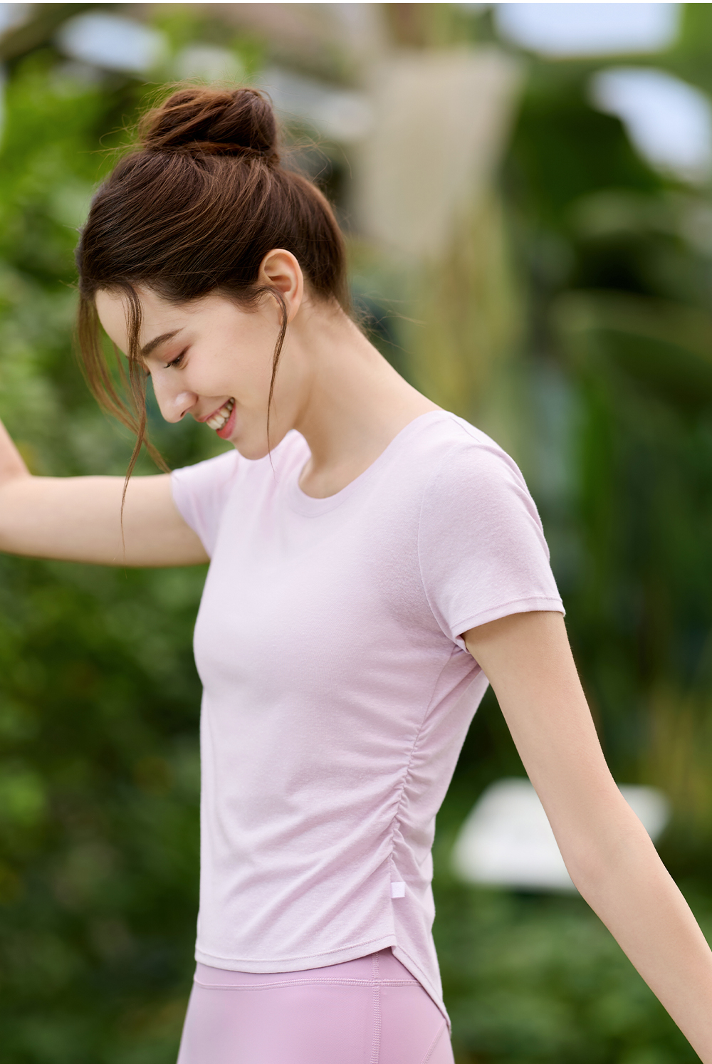 FC14353圆领抽褶收腰短袖