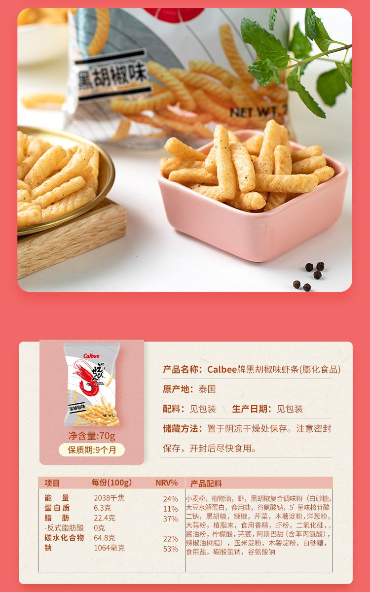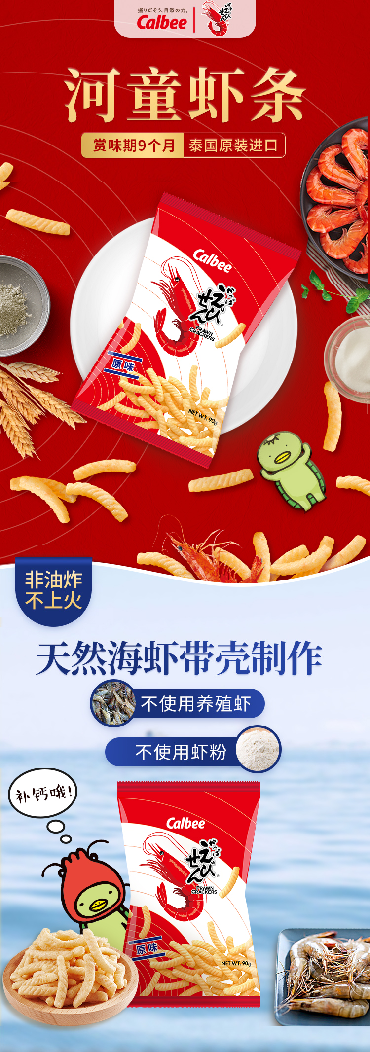 泰国进口卡乐比河童虾条天然健康非油炸原味90g