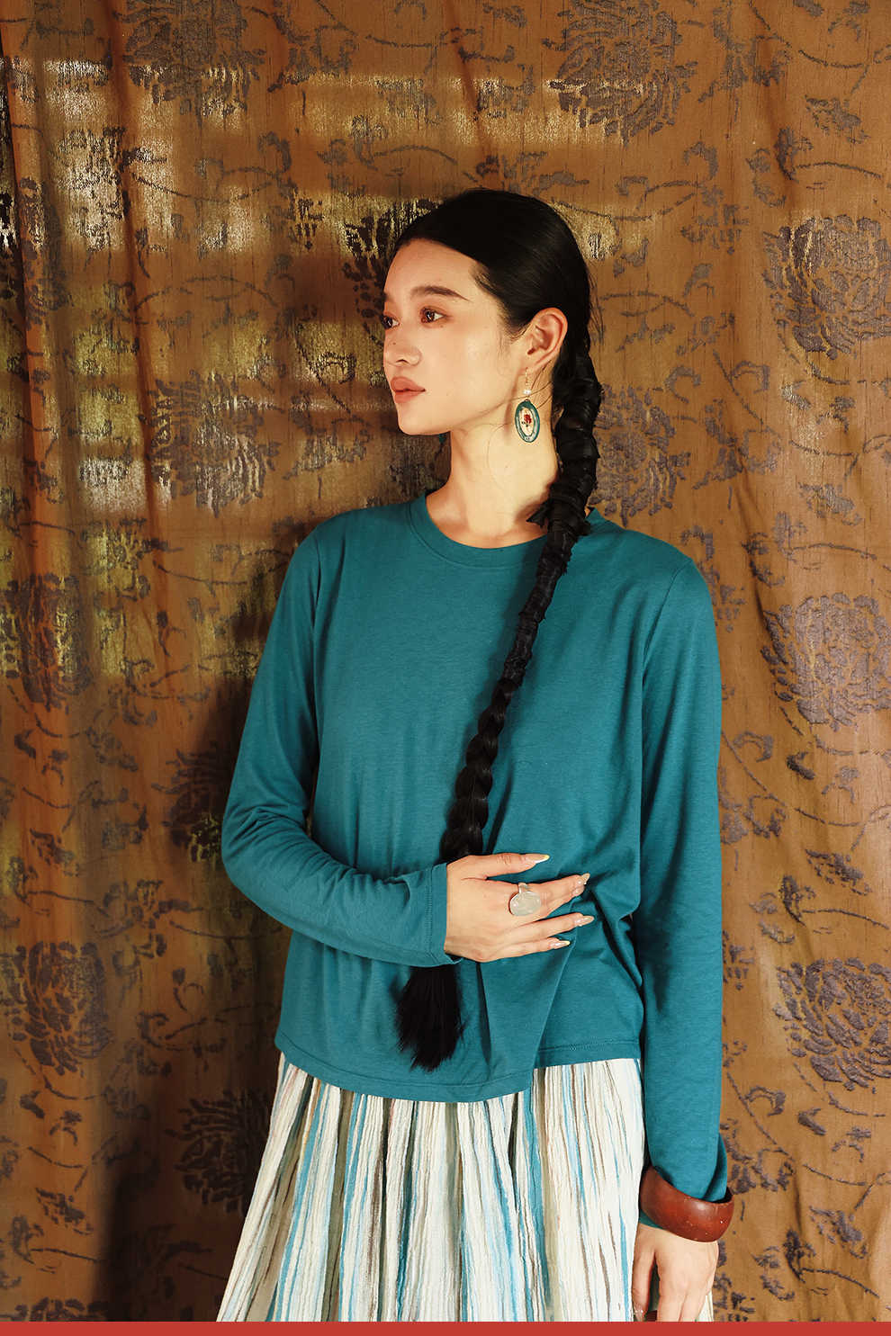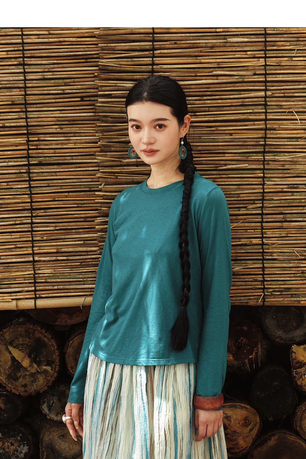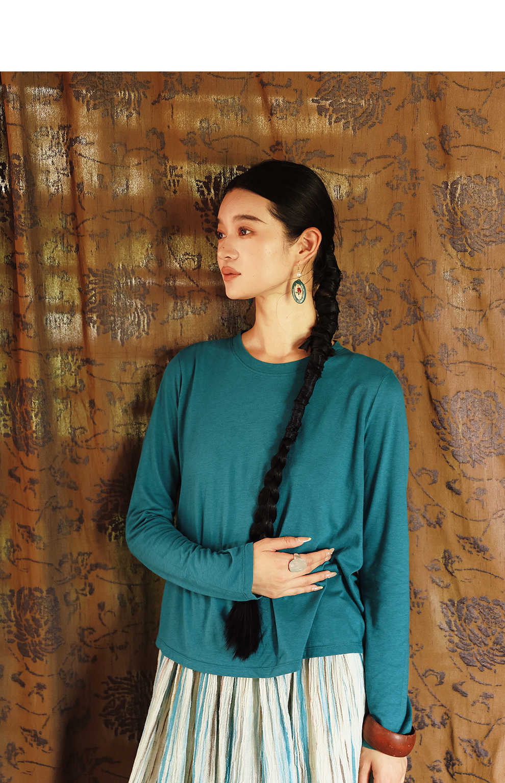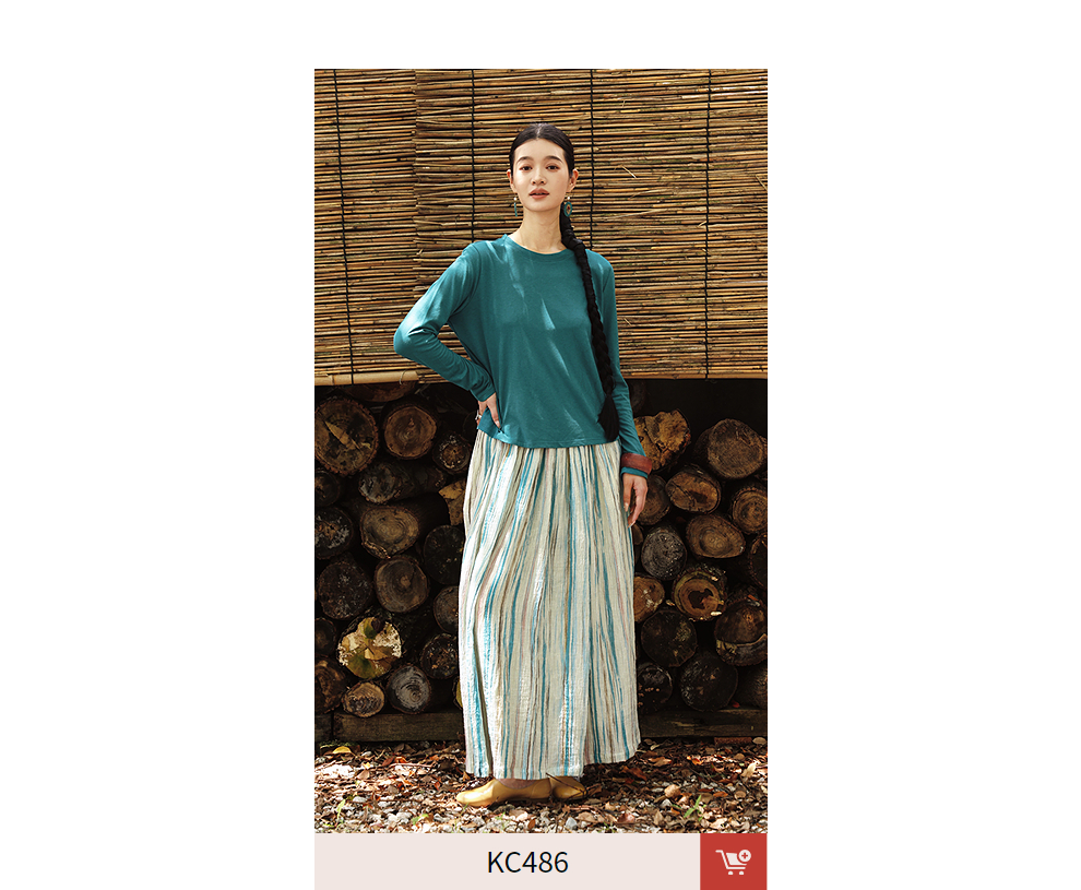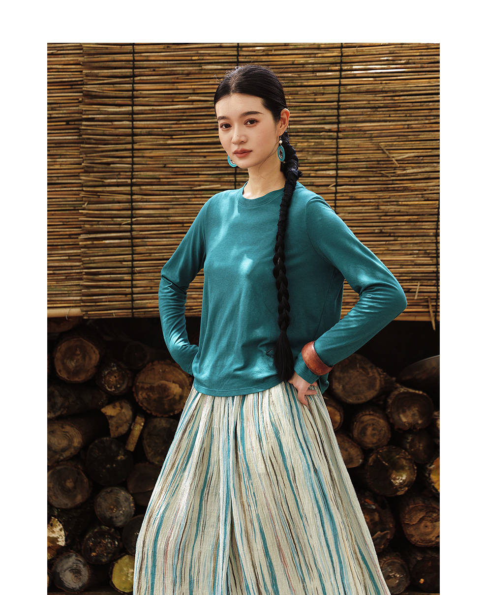 绽放女装511朵/【大山的褶皱】日本进口高支棉圆领长袖T恤打底衫