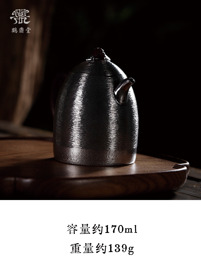 鹤鼎堂银壶于野系列乘駽横纹急须(银色)(缺货)