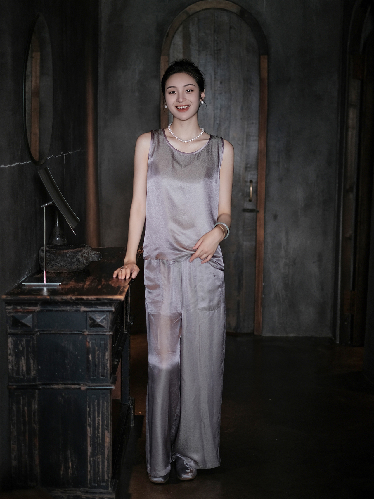 盛唐婧 |暮山紫桑蚕丝暗纹提花背心上衣