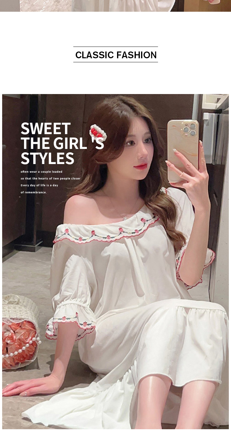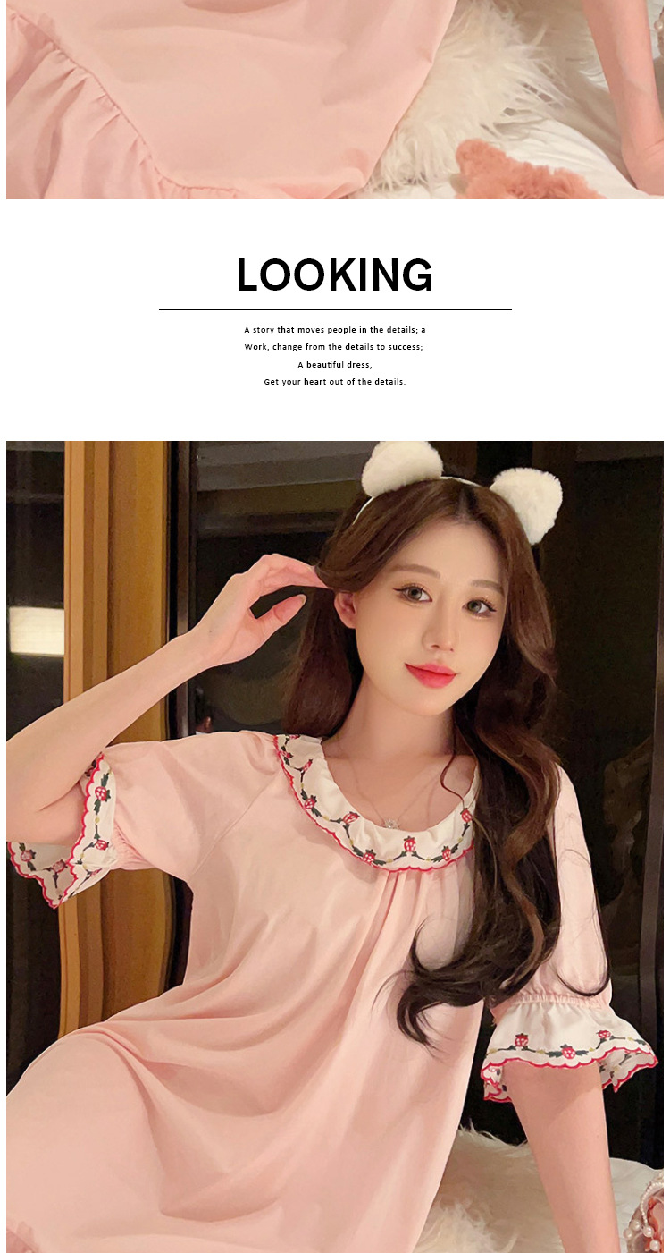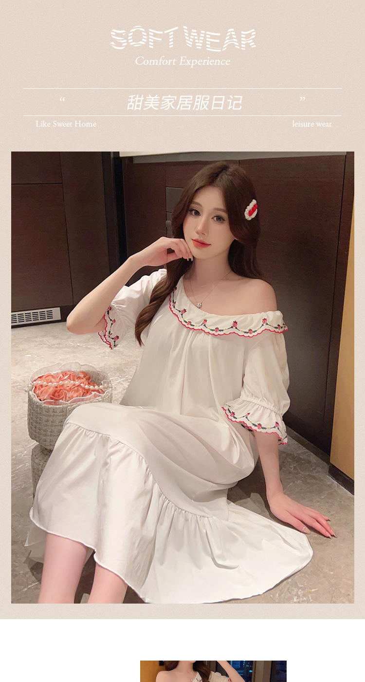 【明星同款!超仙的甜美睡裙】柔软舒适,轻盈飘逸,曼妙动人,夏款女短袖睡衣白色草莓花边可外穿家居服