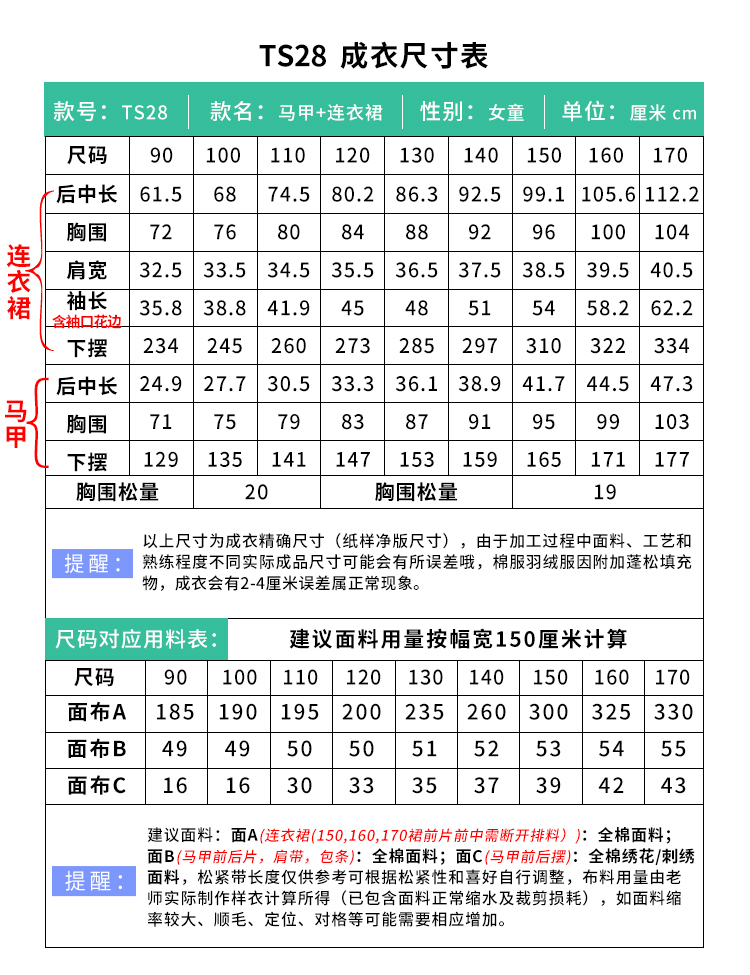 裁缝学苑TS28儿童新款木耳边长袖连衣裙纸样女童无袖背心马甲服装打板