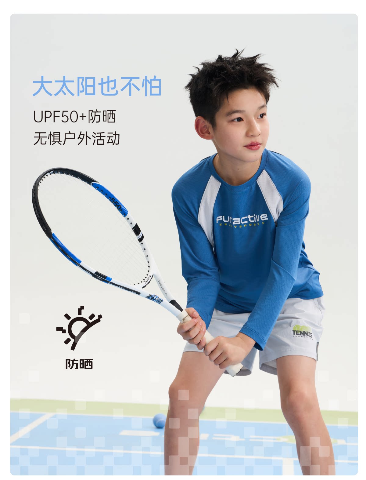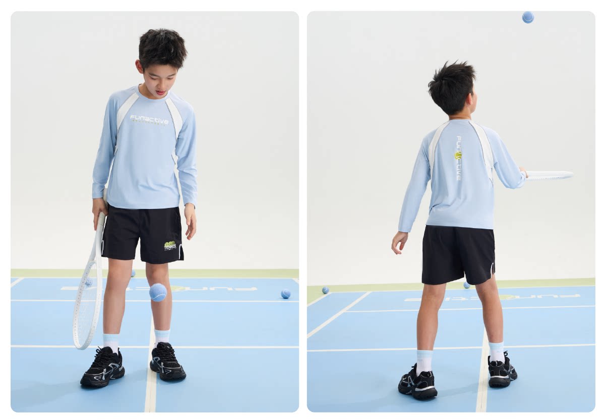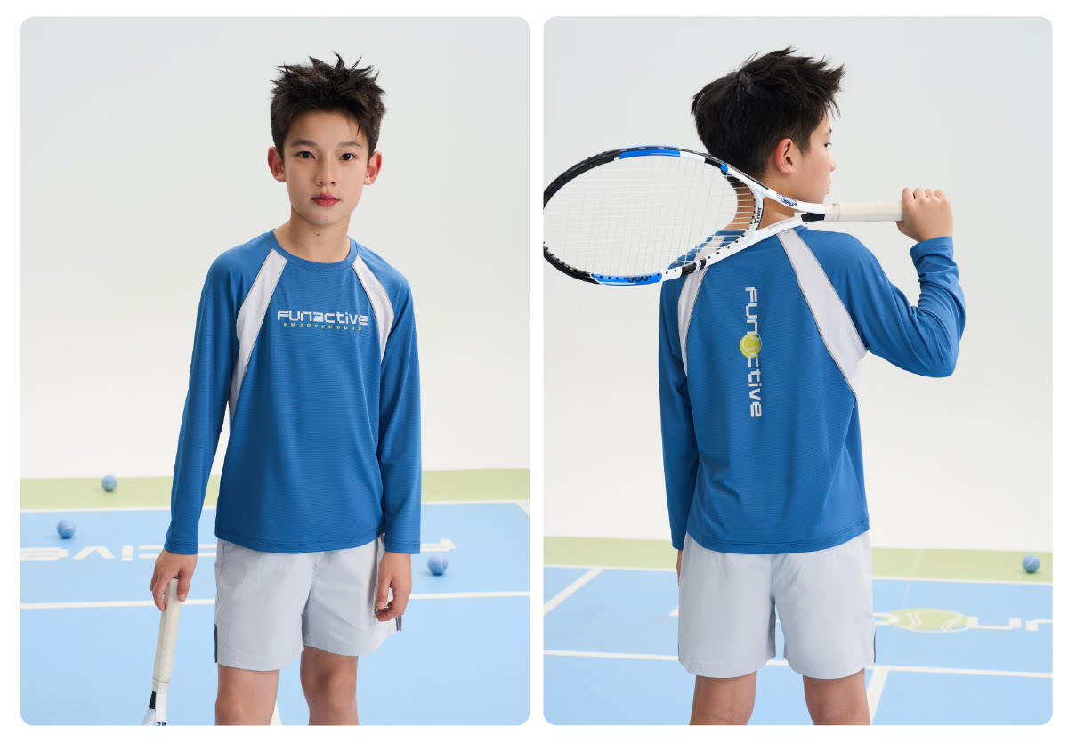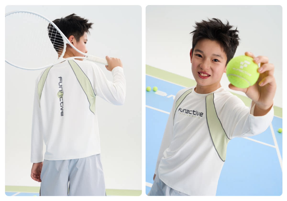 funactive男童原纱防晒衣春装新款儿童透气羽毛球运动长袖T恤上衣F1UT20198