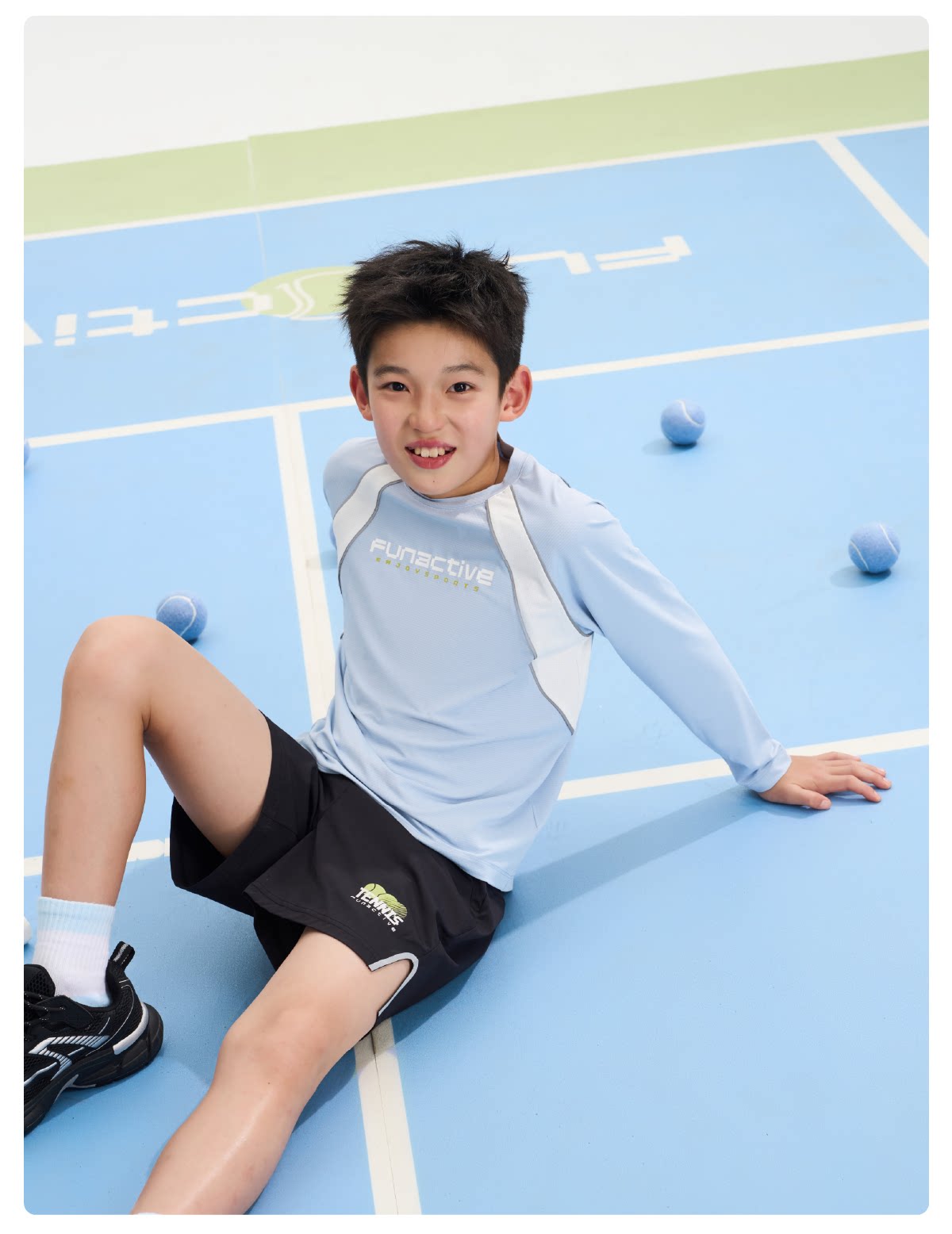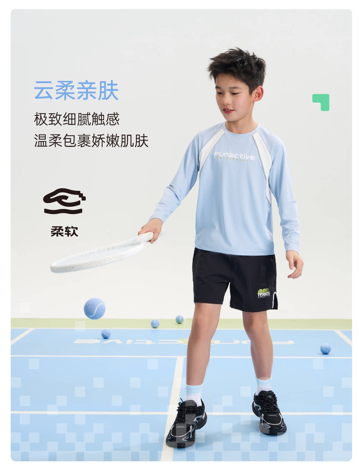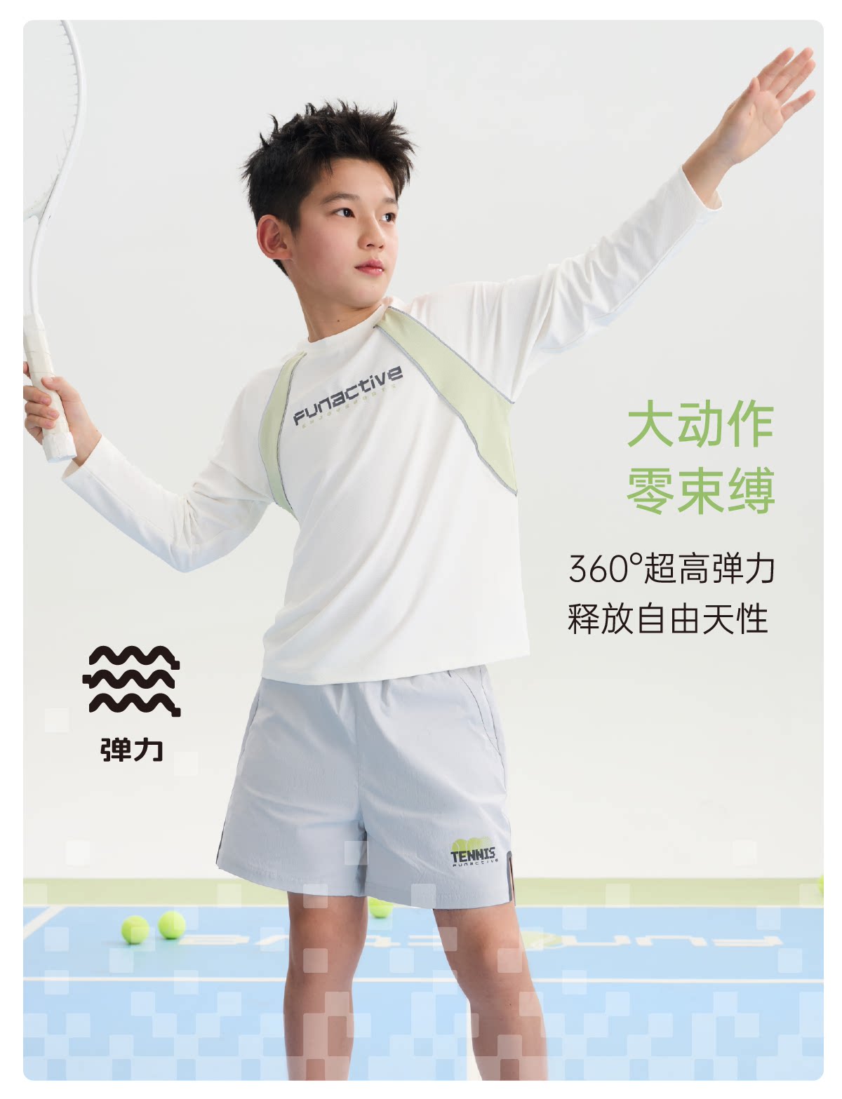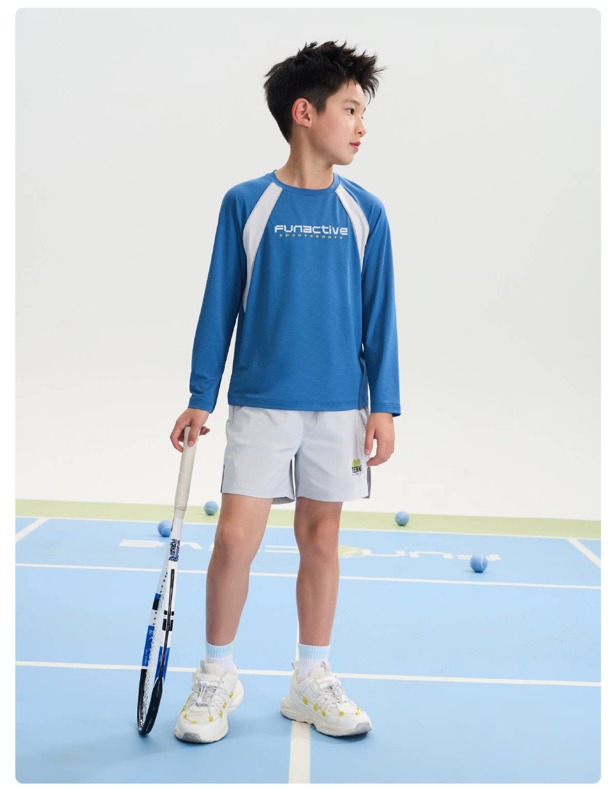 funactive男童原纱防晒衣春装新款儿童透气羽毛球运动长袖T恤上衣F1UT20198
