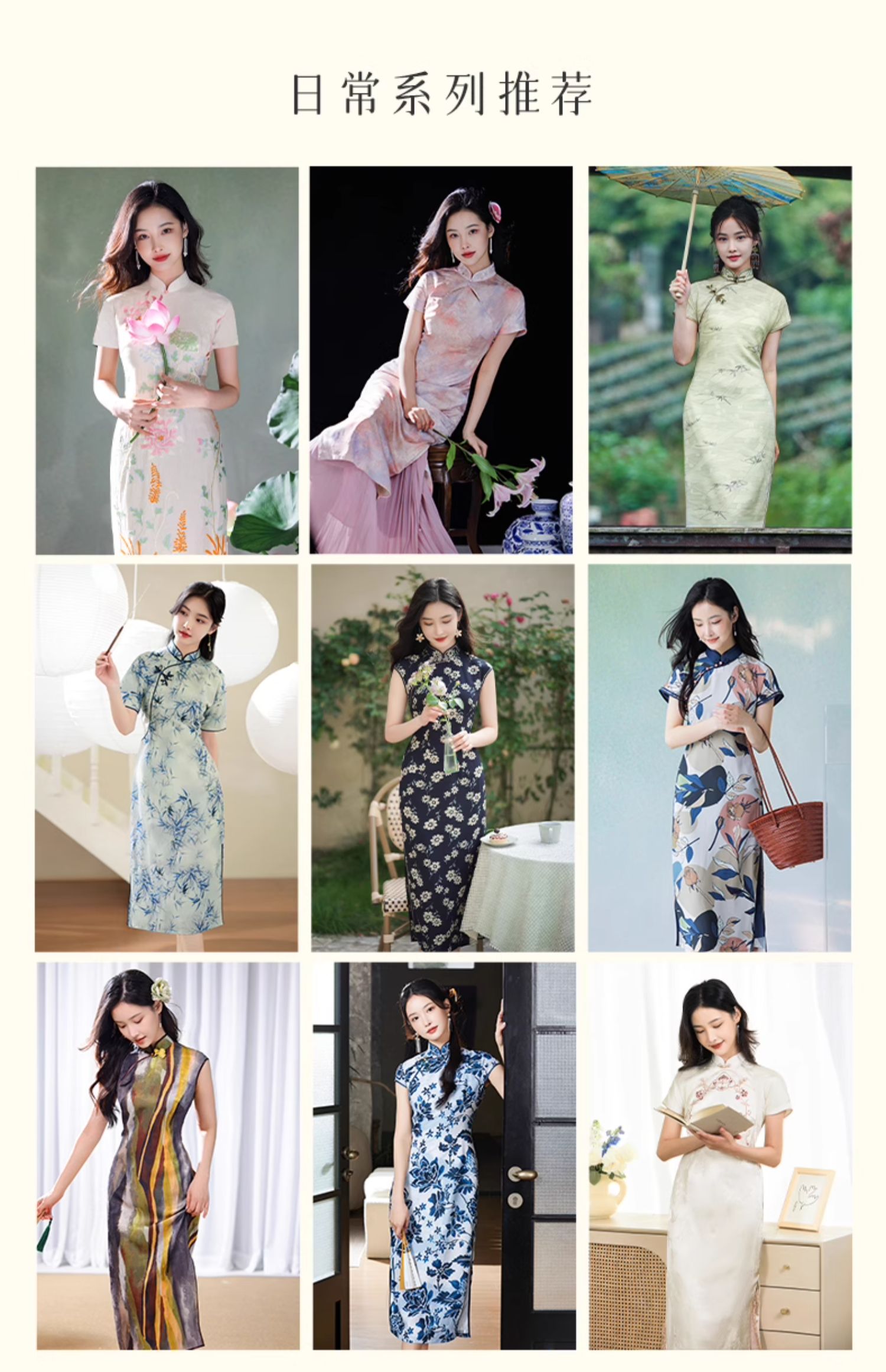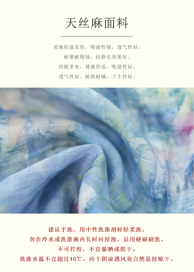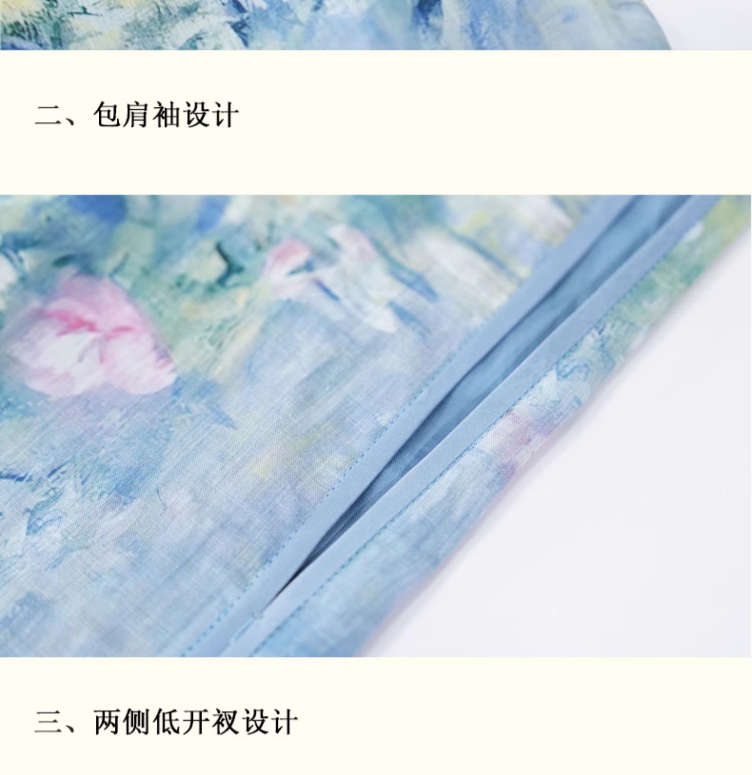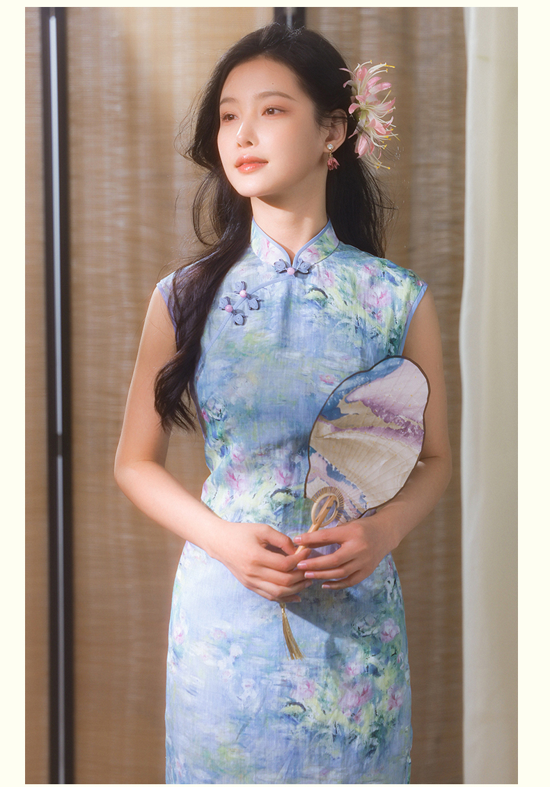逸红颜天婼2025夏新款略宽松版天然植物草色染莫奈睡莲天丝麻旗袍