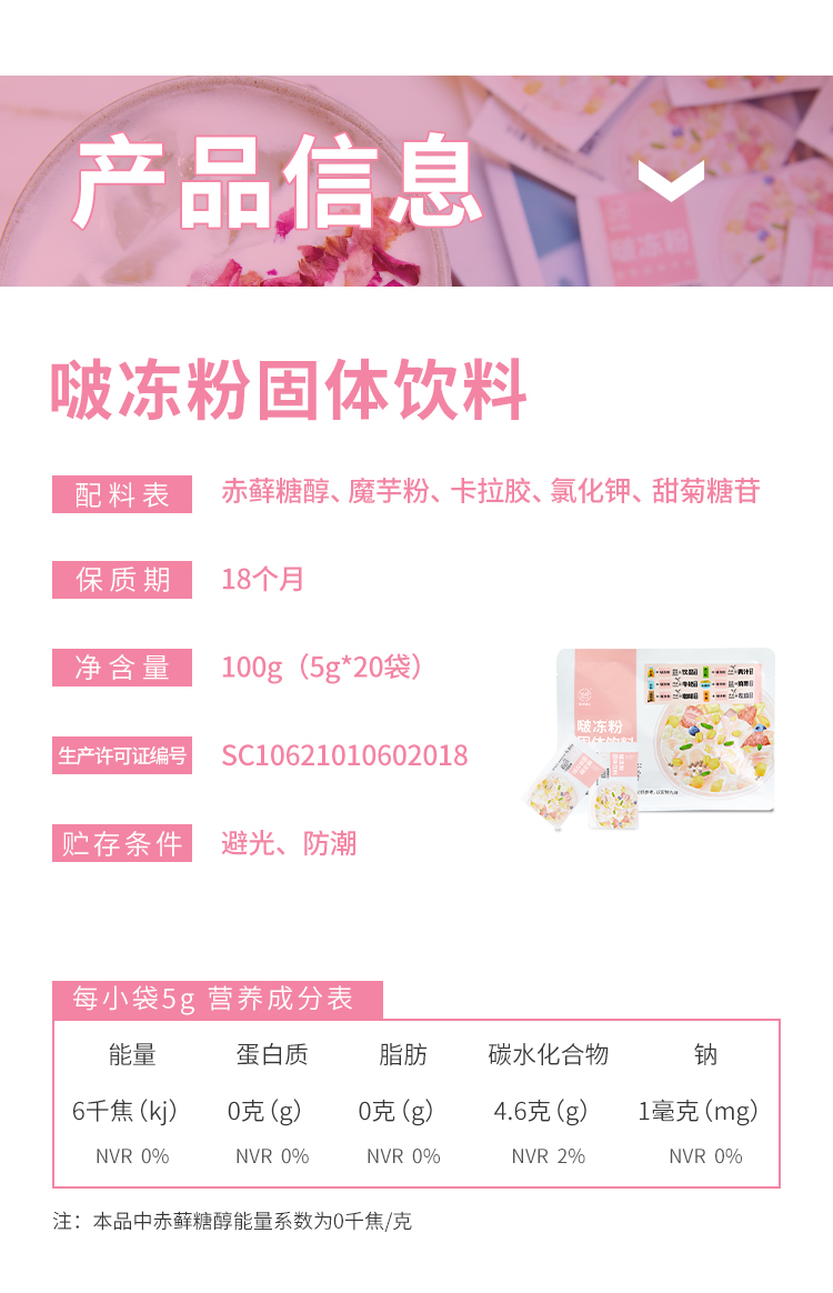 专属 低卡博士啵冻粉果冻粉布丁粉 1包20小袋共100克
