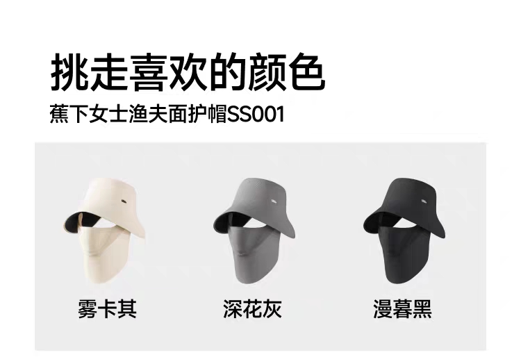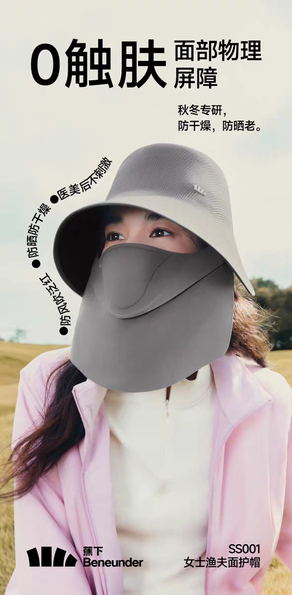 蕉下渔夫面护帽女士面罩防干燥防紫外线防风抑菌防晒帽秋冬SS001