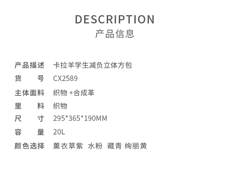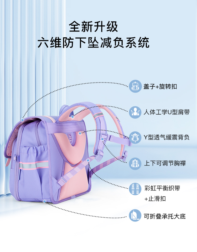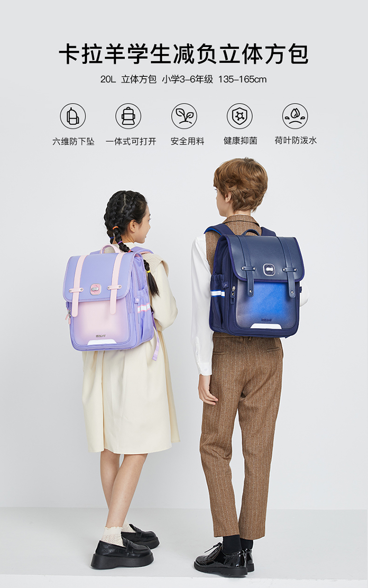 卡拉羊1-3-6年级18/20L减负防下坠立体方包 欧若拉 CX2154+CX2589