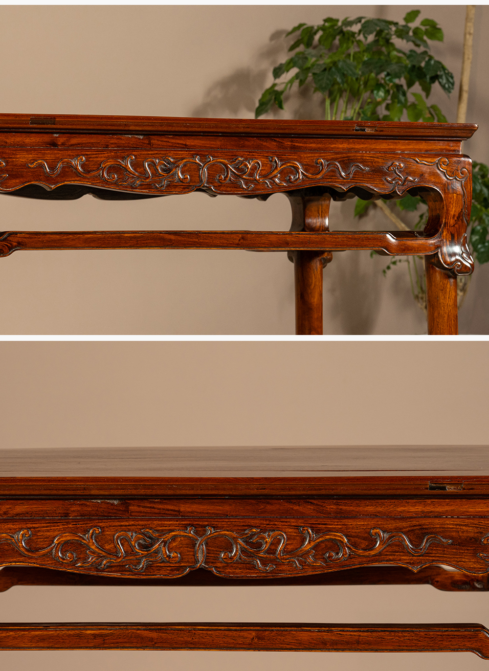 二十世纪 黄花梨卷草纹三弯腿带托泥方香几(一对)