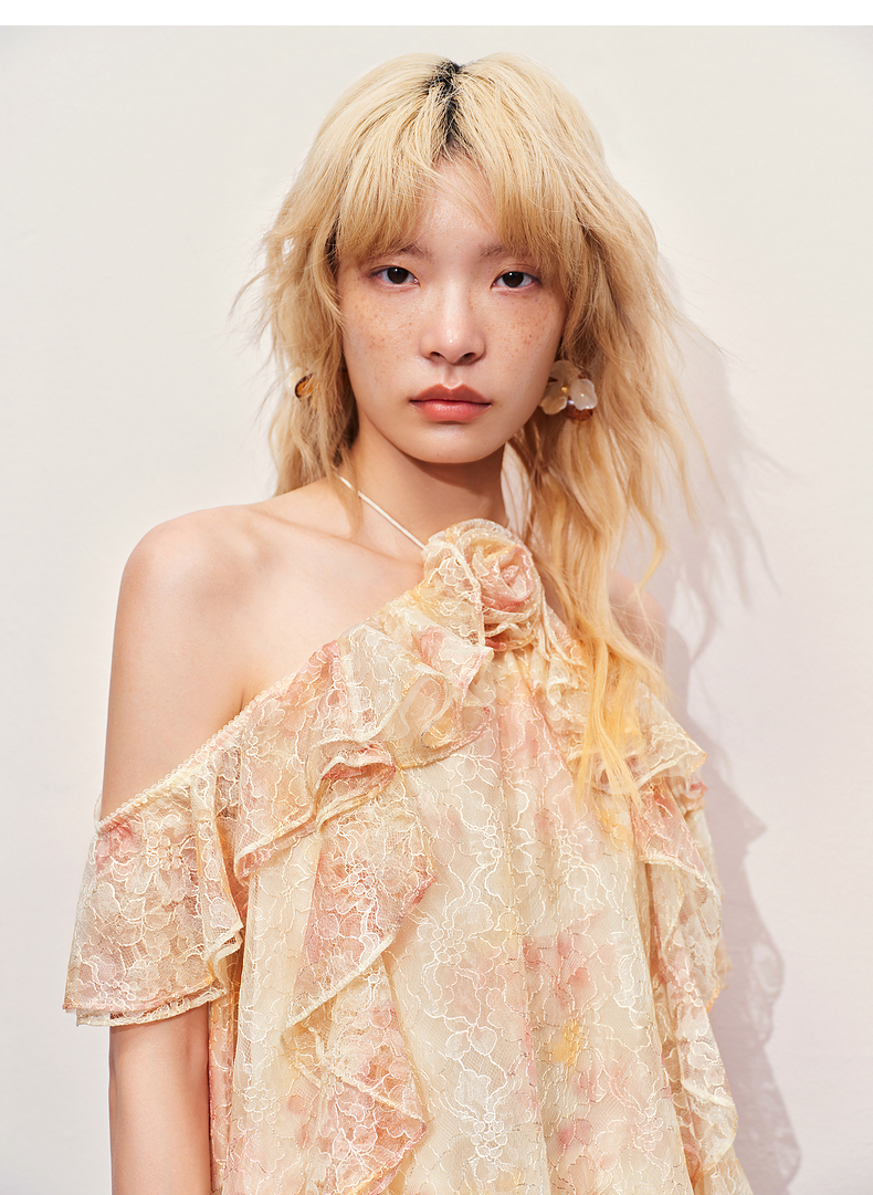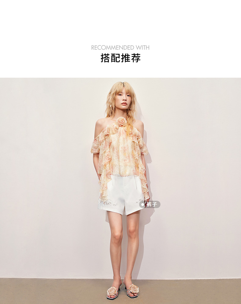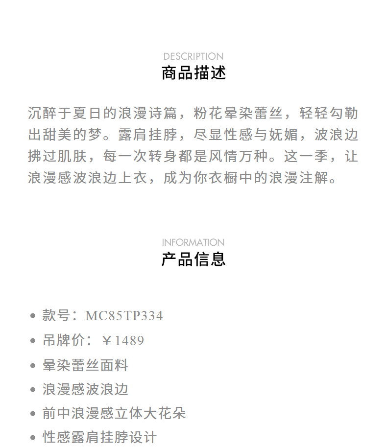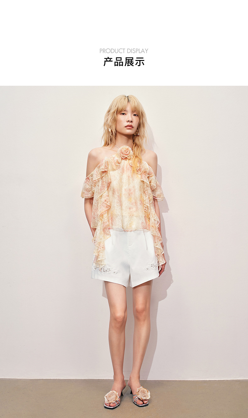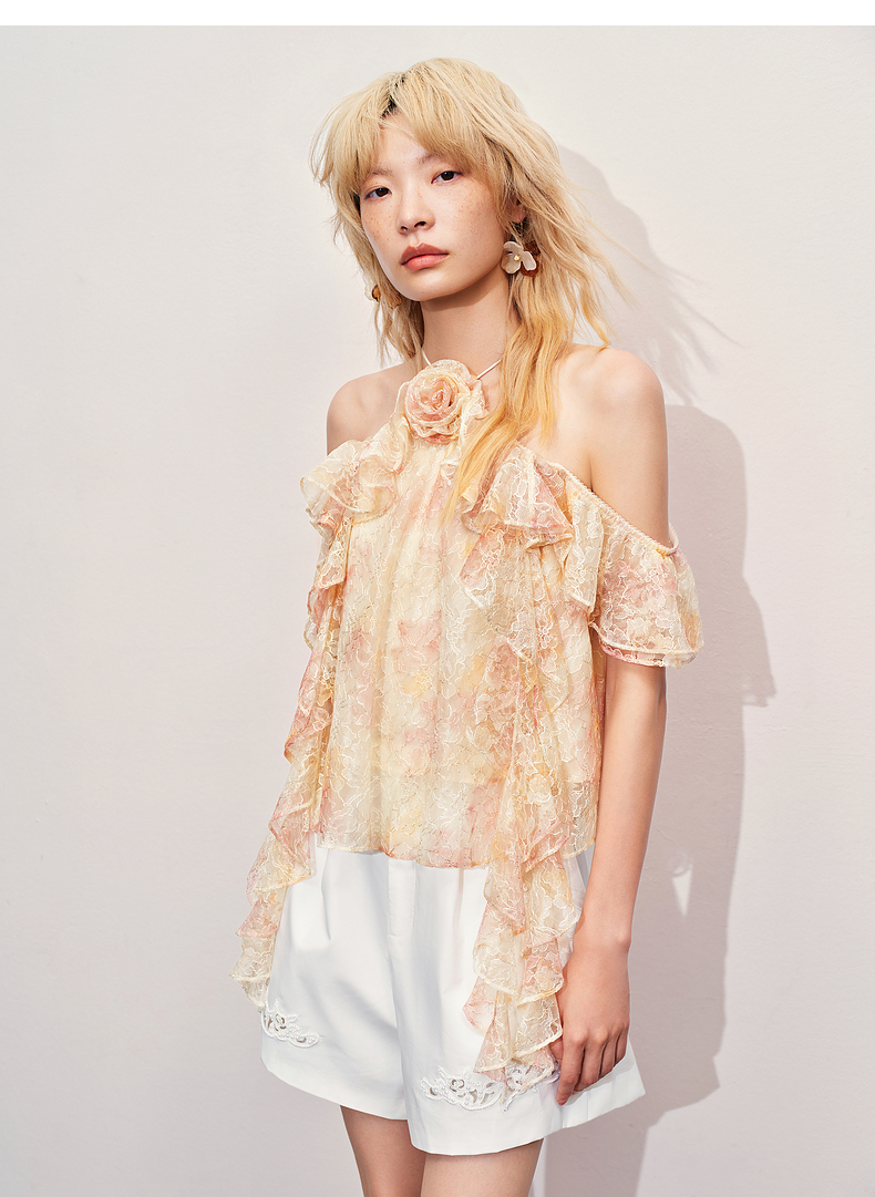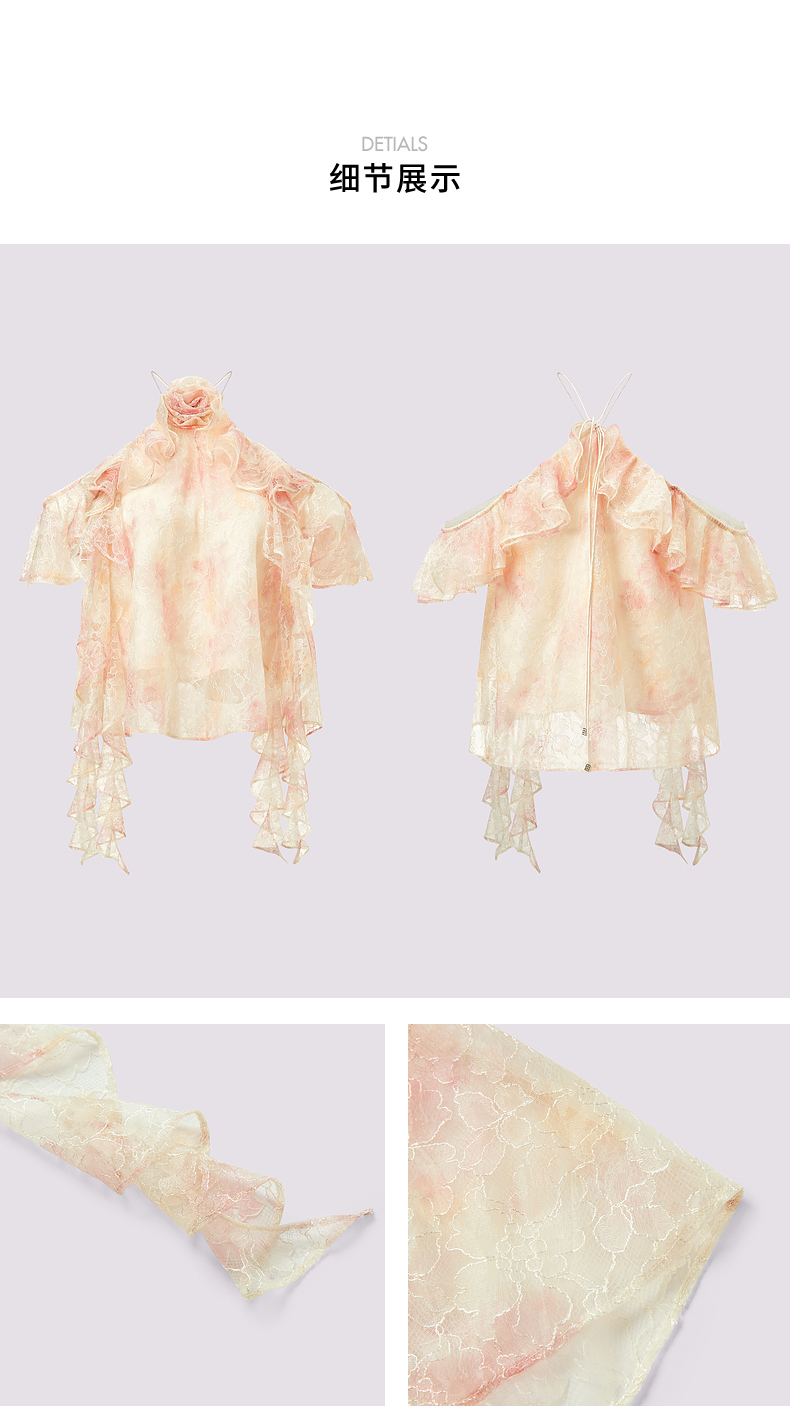 【异域·摩洛哥-商场同款】MAXRIENY晕染蕾丝浪漫甜美波浪边上衣(货号:MC85TP334)