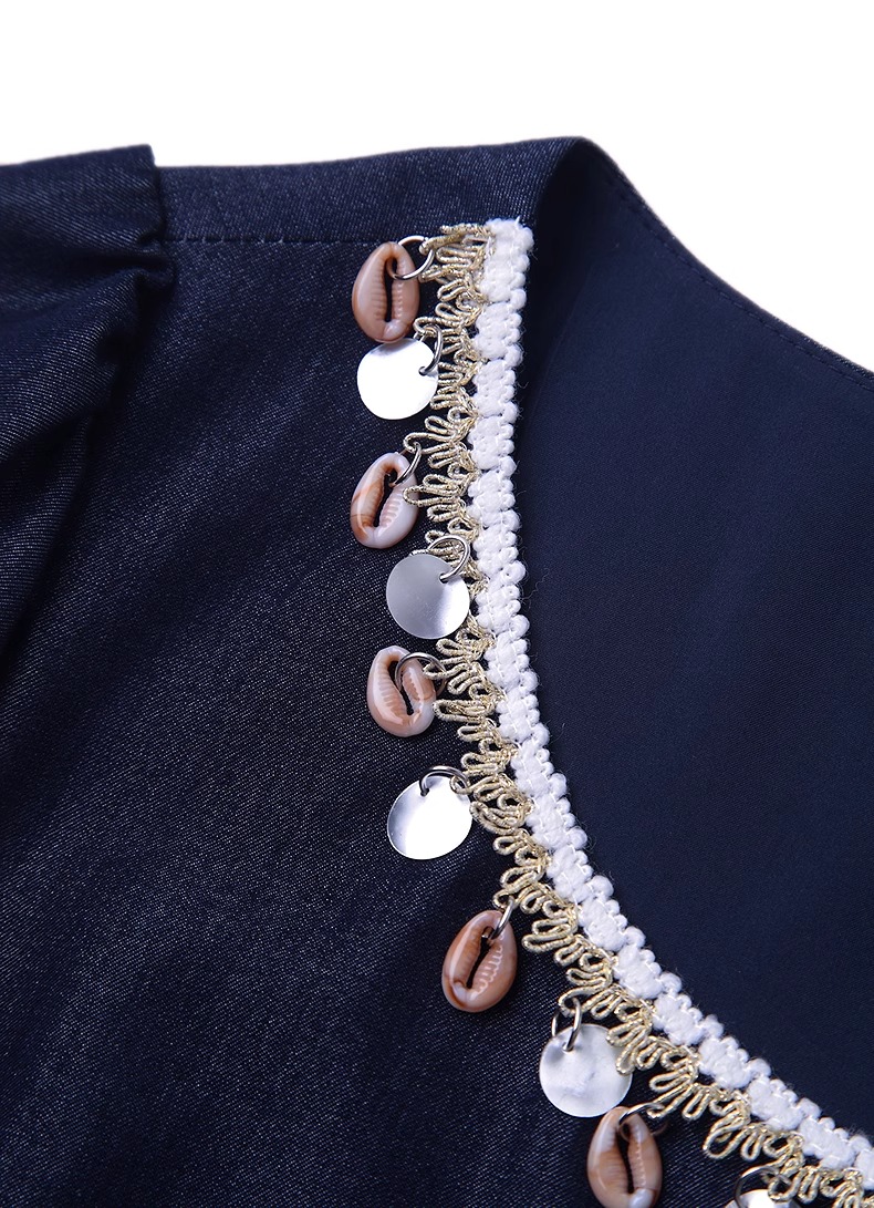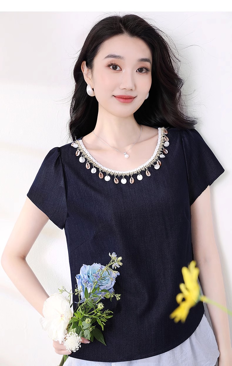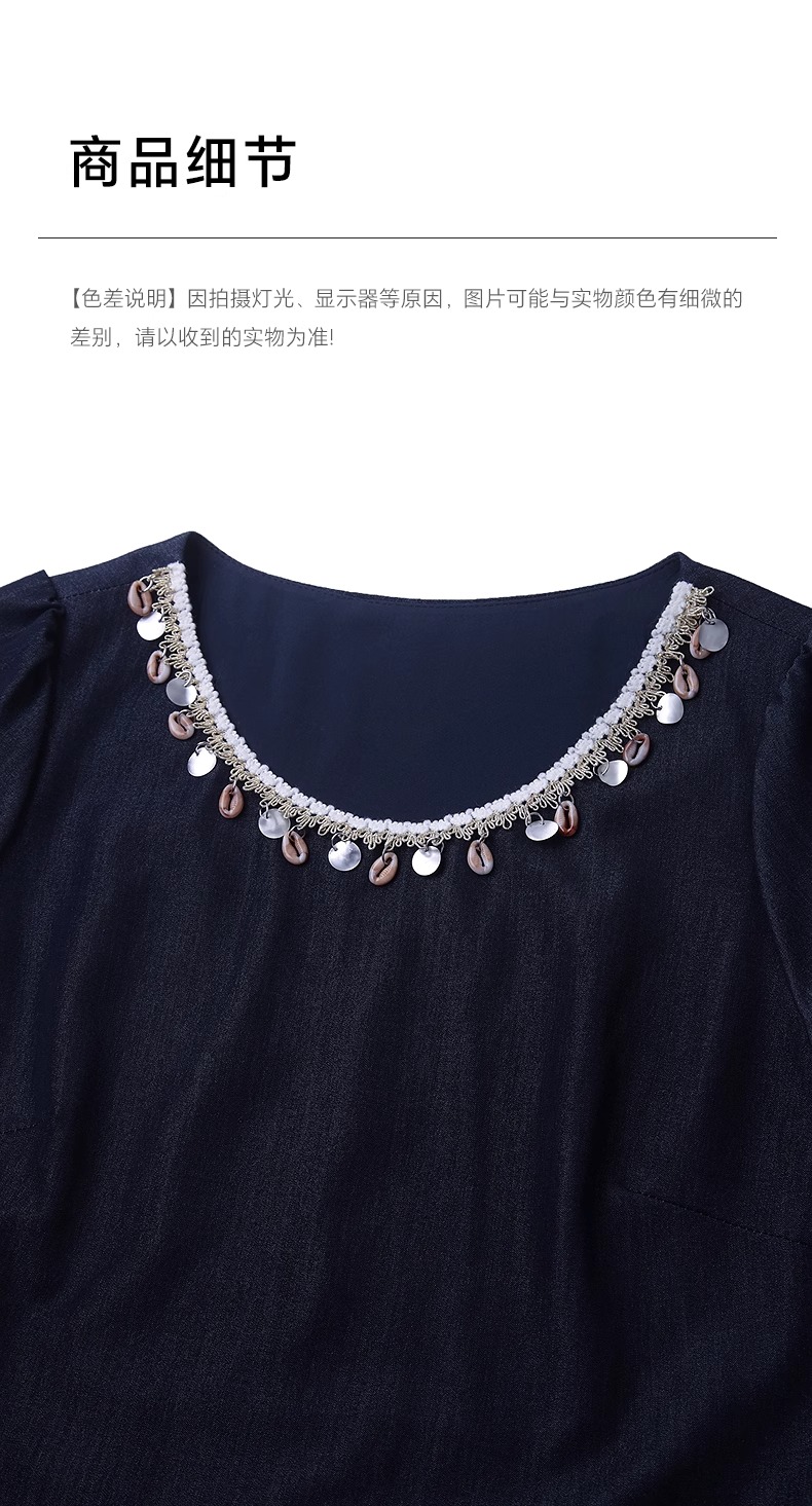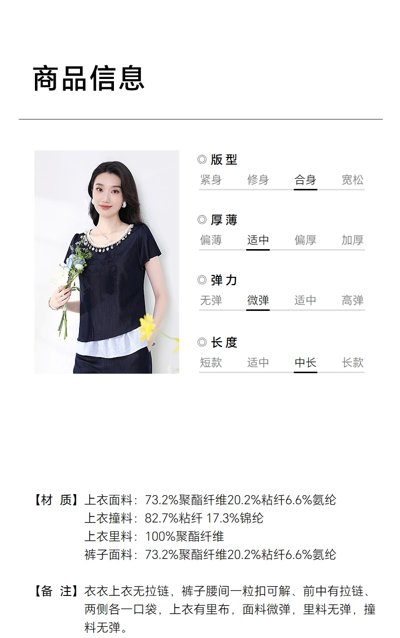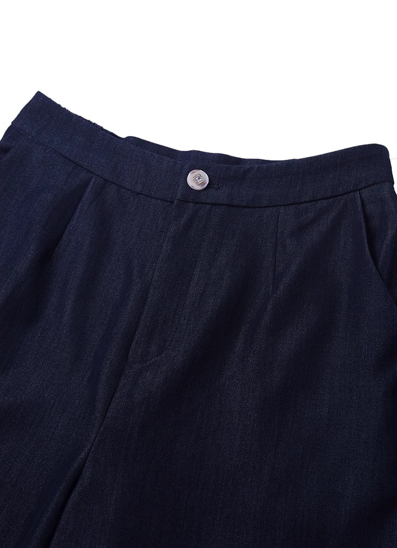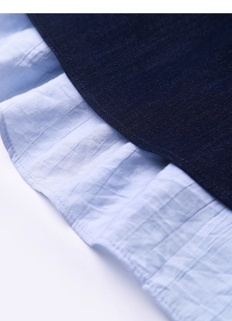 全新升级【铂金会员293/天猫399/差价106】(99846)洛诗琳撞色牛仔通勤套装女2025新款夏季圆领上衣阔腿裤两件套