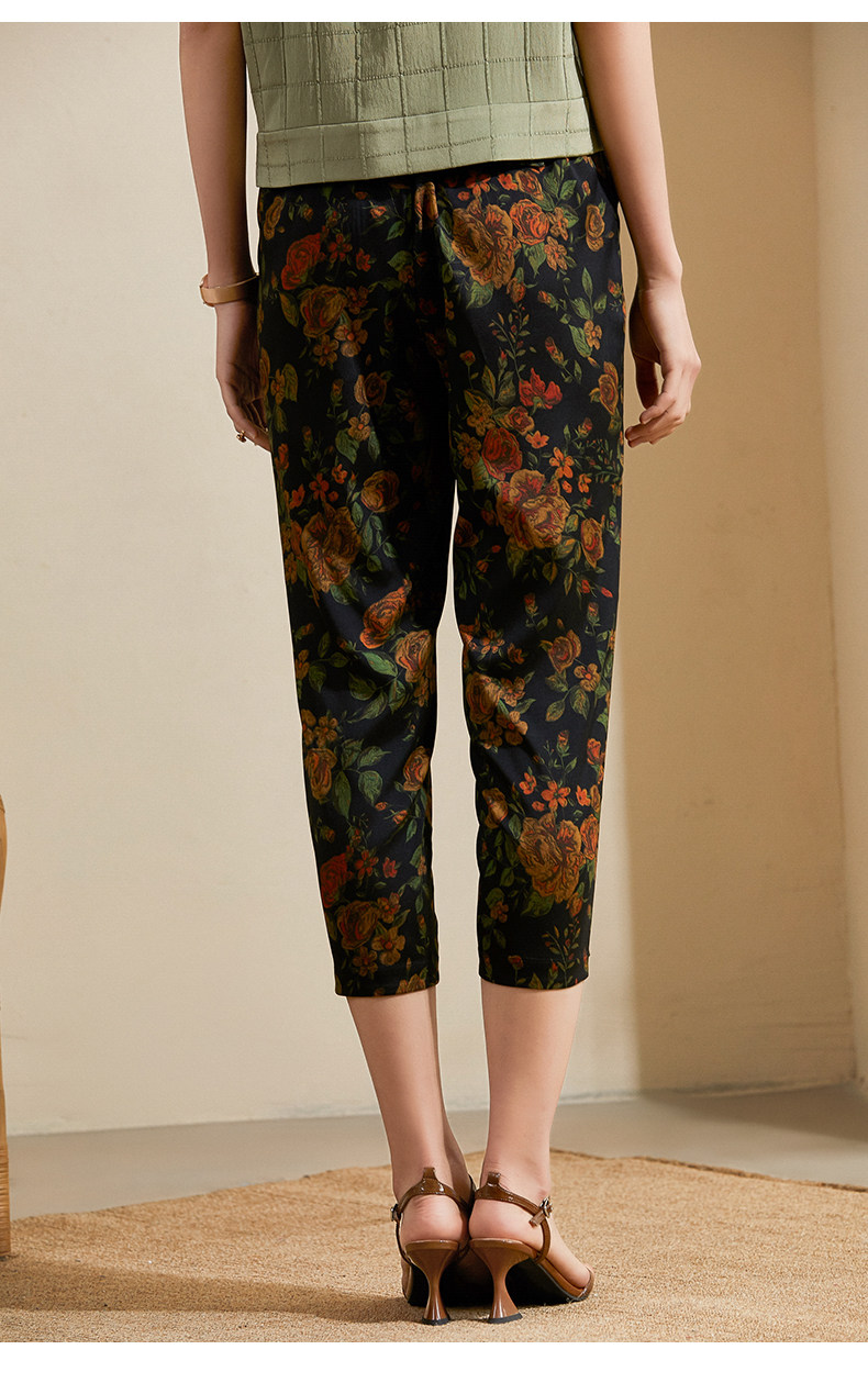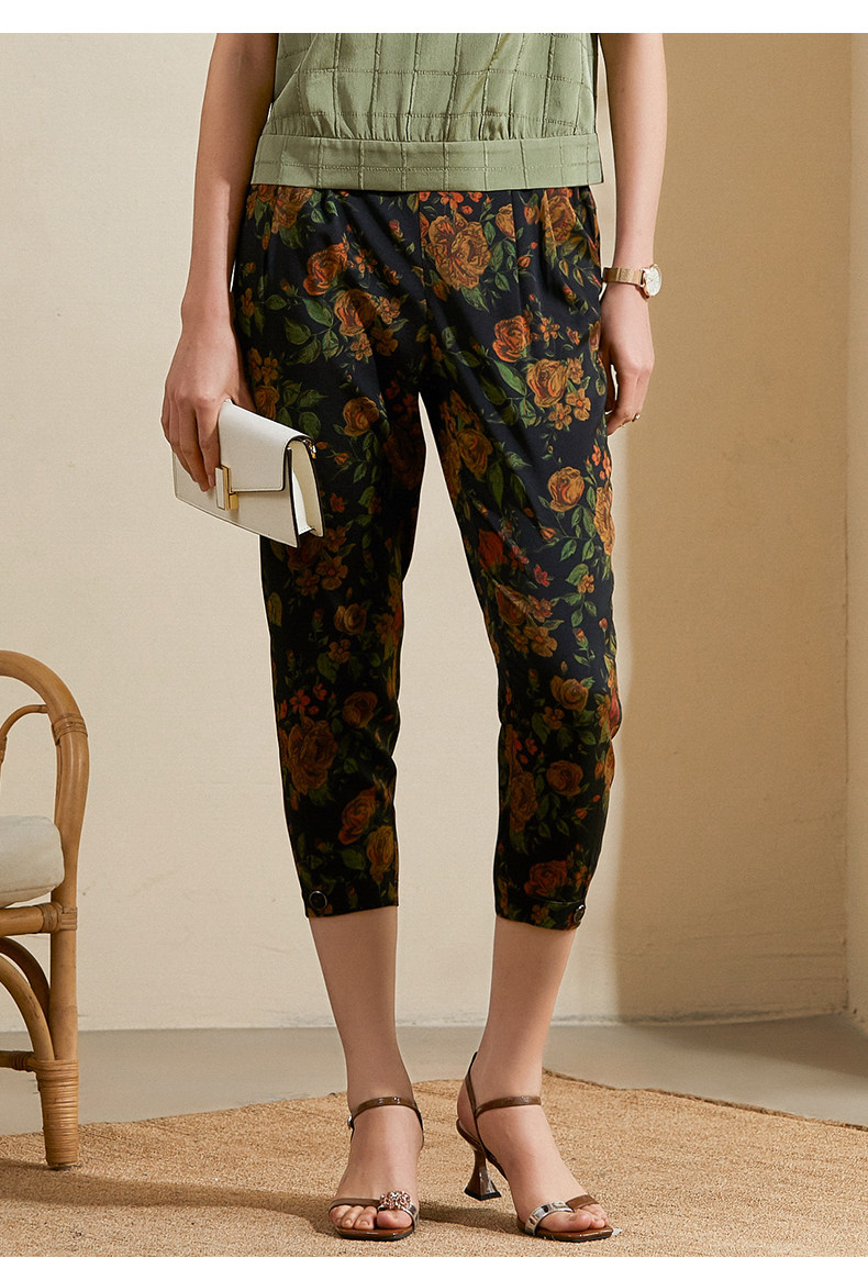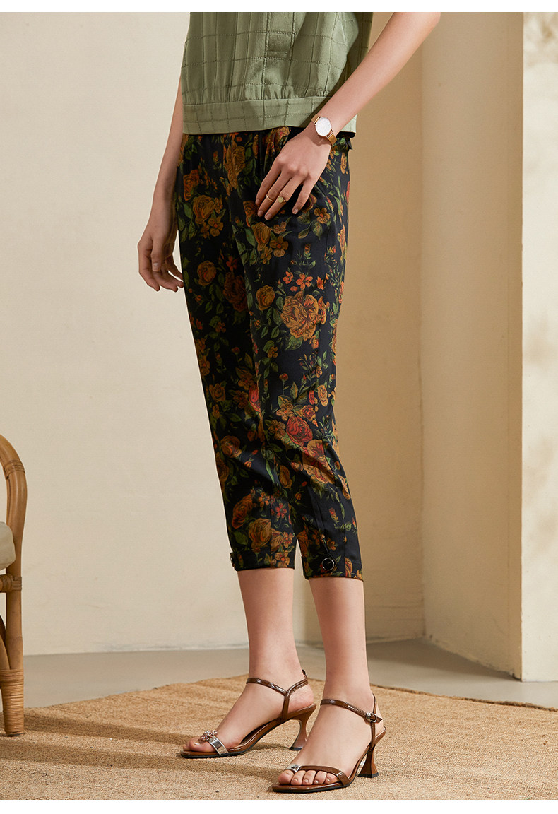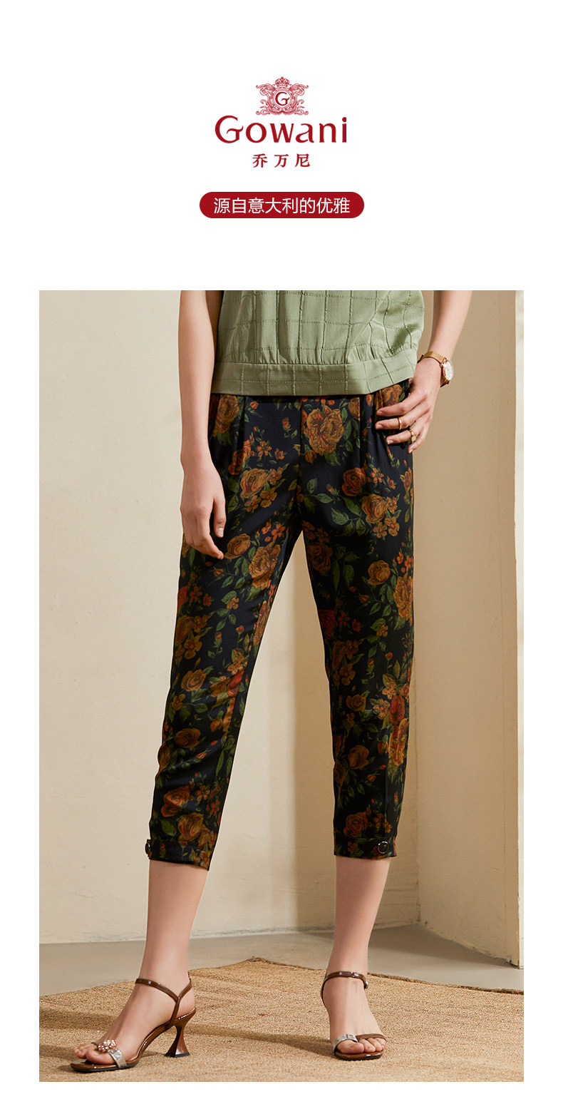 乔万尼桑蚕丝哈伦裤夏新款印花真丝薄款直筒裤九分裤子ES2F192