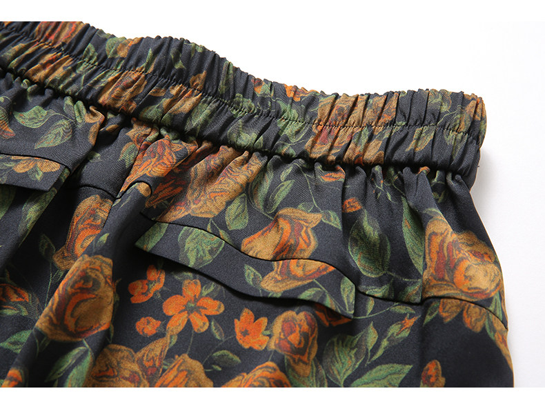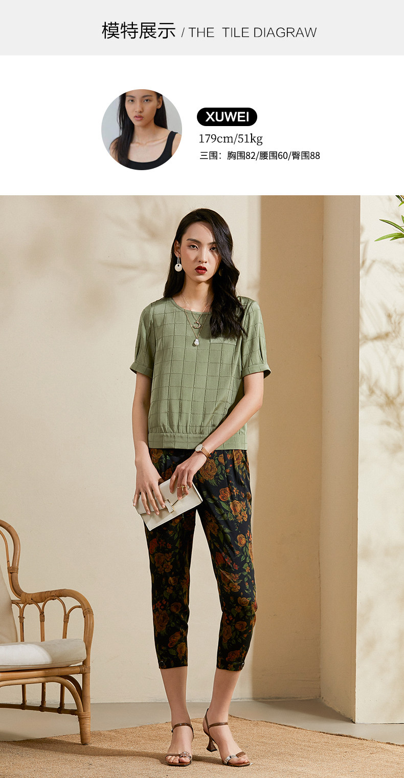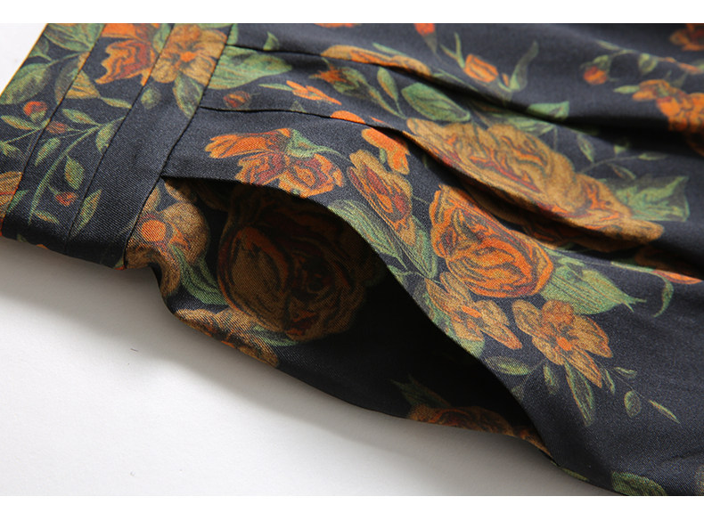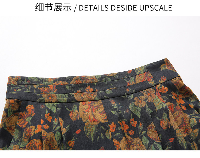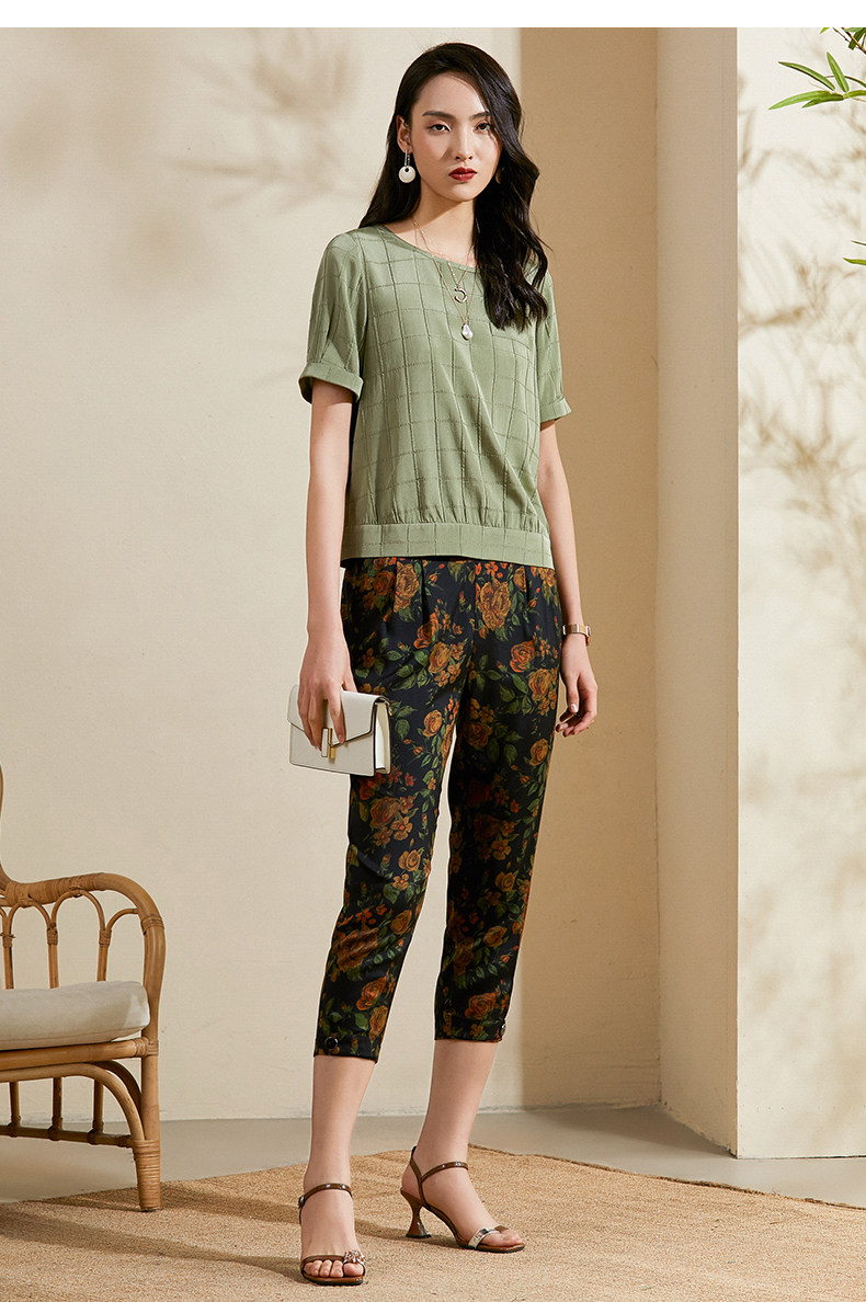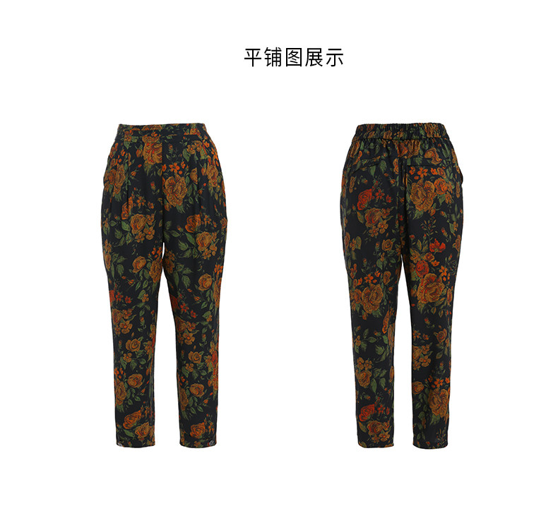 乔万尼桑蚕丝哈伦裤夏新款印花真丝薄款直筒裤九分裤子ES2F192