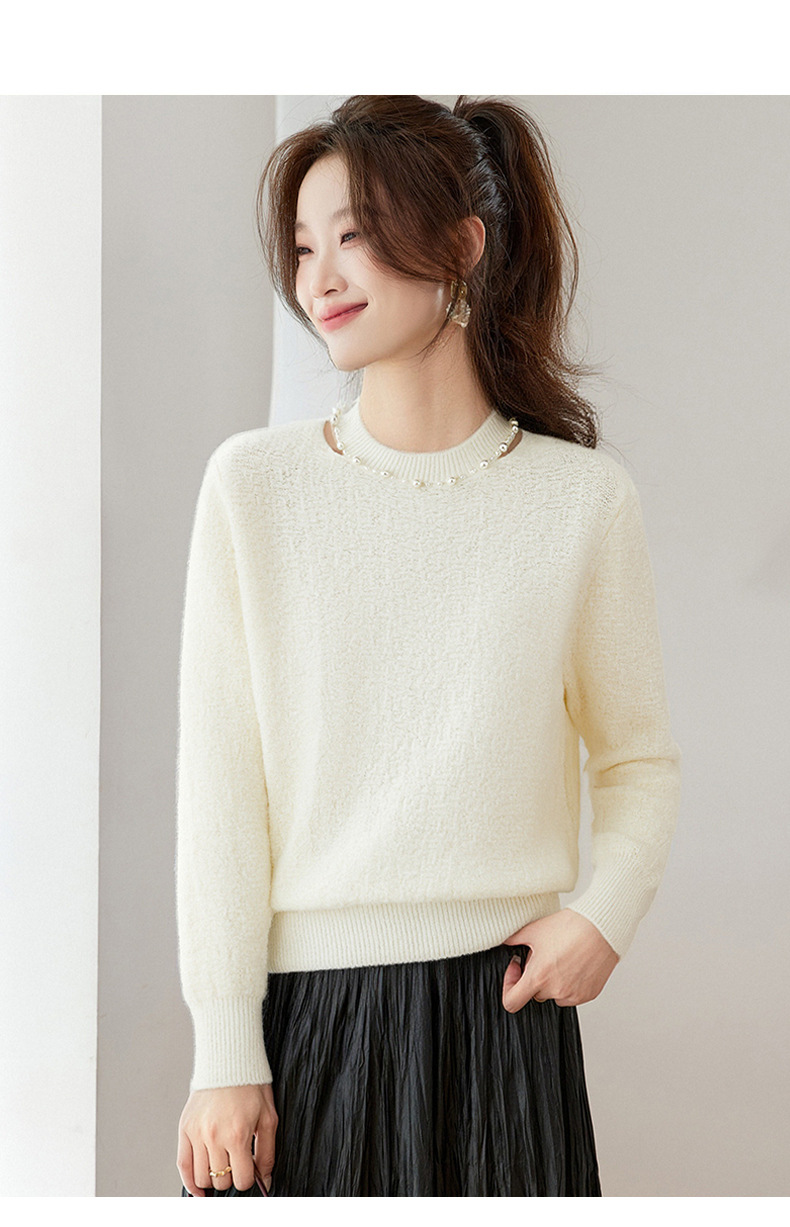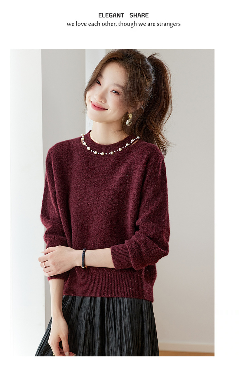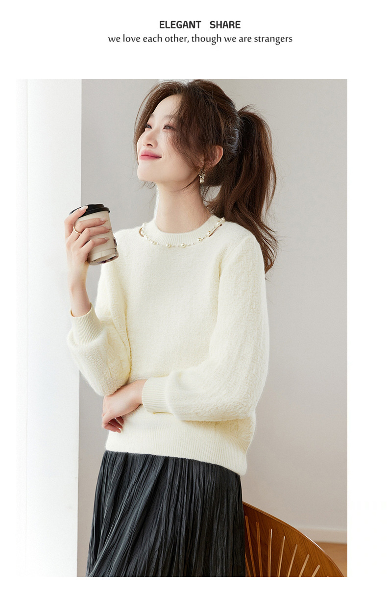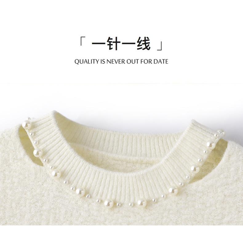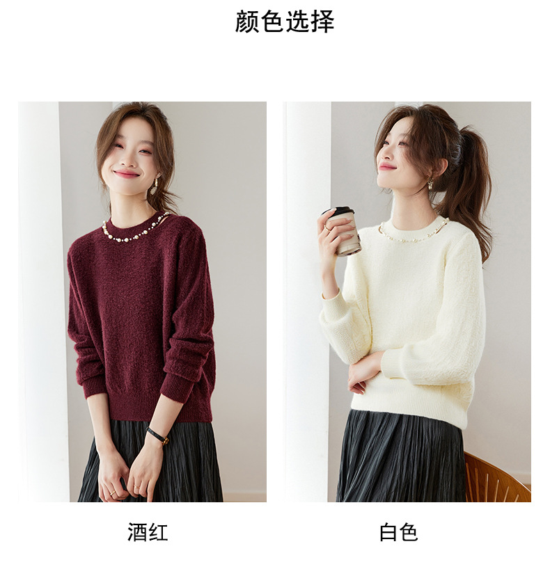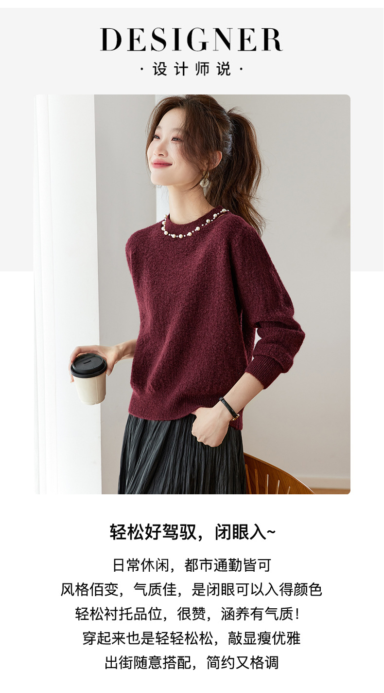 丁摩新款高级感宽松针织打底衫上衣法式钉珠软糯慵懒风毛衣女ALW2101