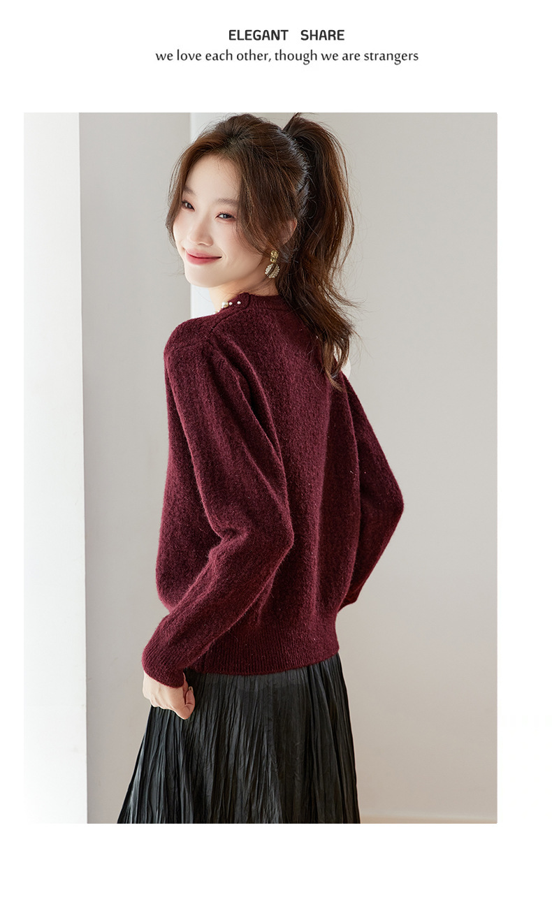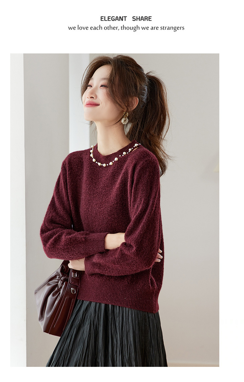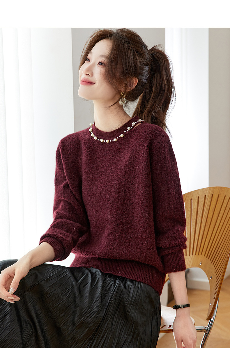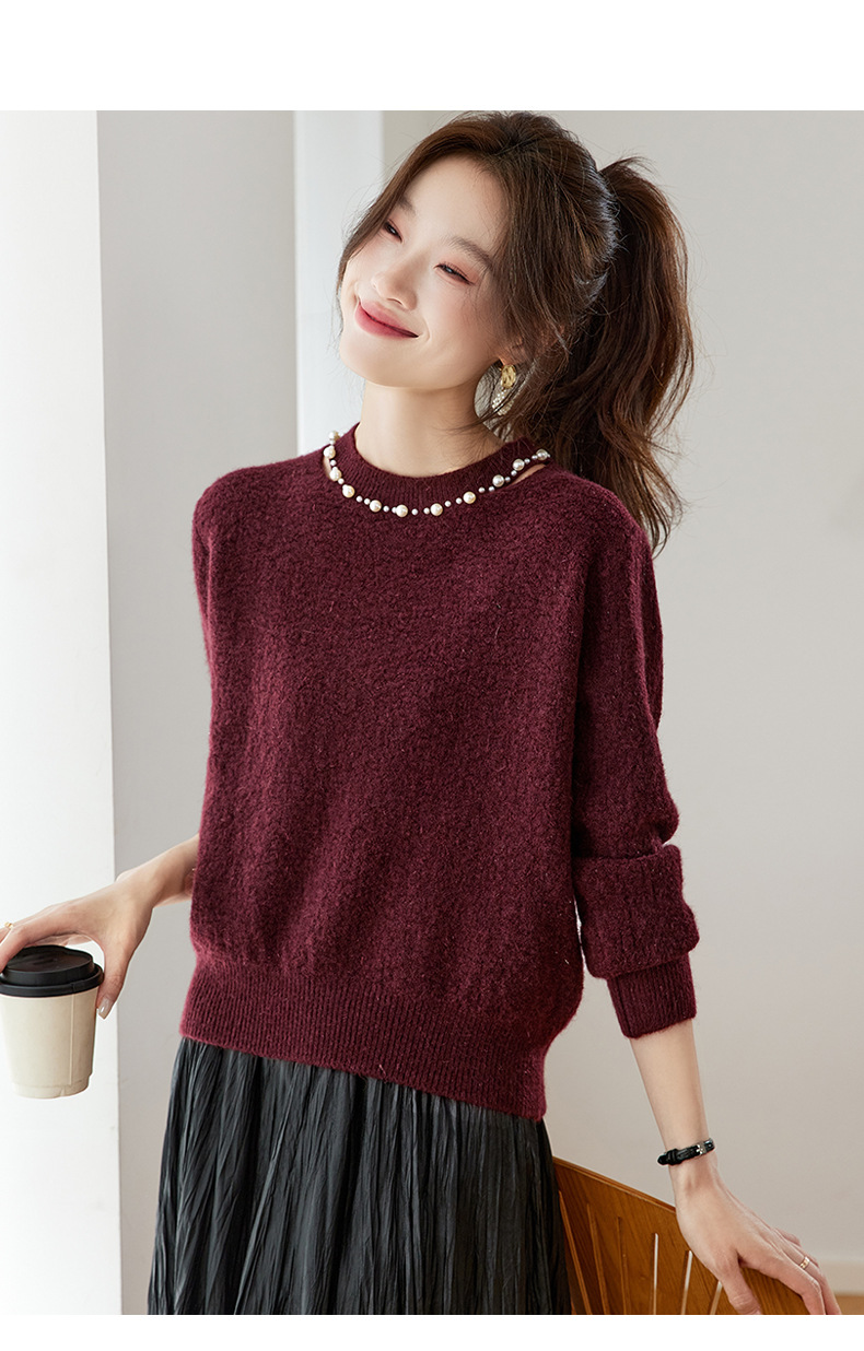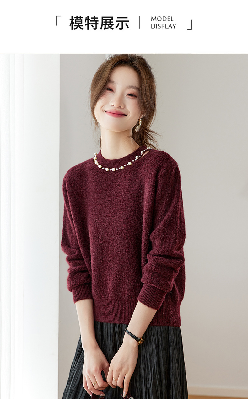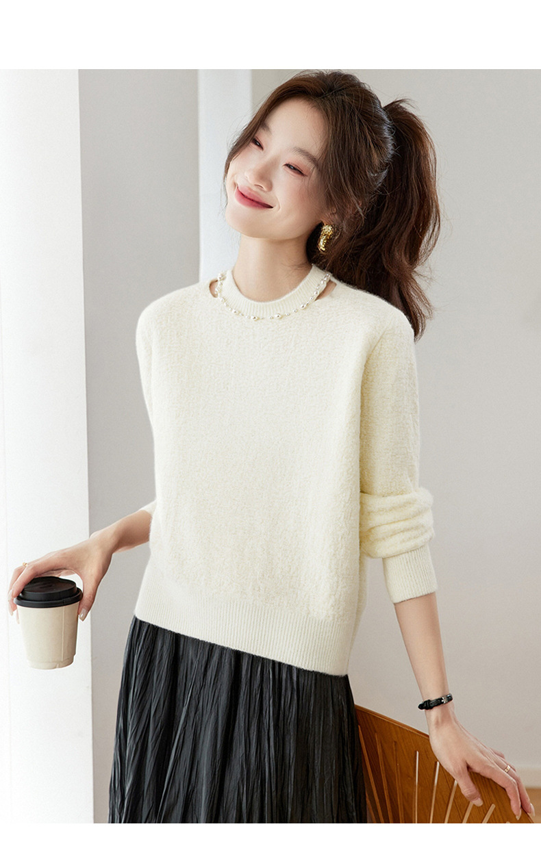 丁摩新款高级感宽松针织打底衫上衣法式钉珠软糯慵懒风毛衣女ALW2101