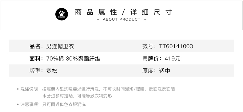 卡尔美 春季新款休闲连帽卫衣男运动时尚运动套头衫潮