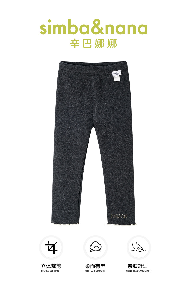 【辛巴娜娜】simbanana【大童】洋气保暖甜美花朵秋冬款女孩打底简约修身休闲百搭长裤