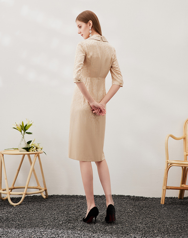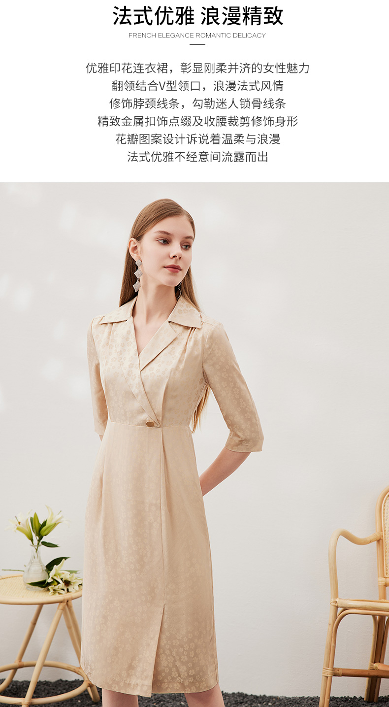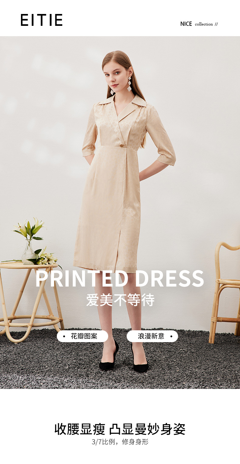 EITIE爱特爱夏季新款印花五分袖长裙碎花连衣裙女7007706