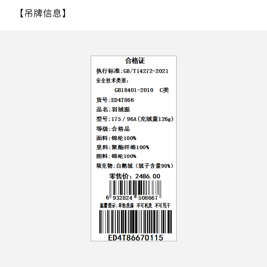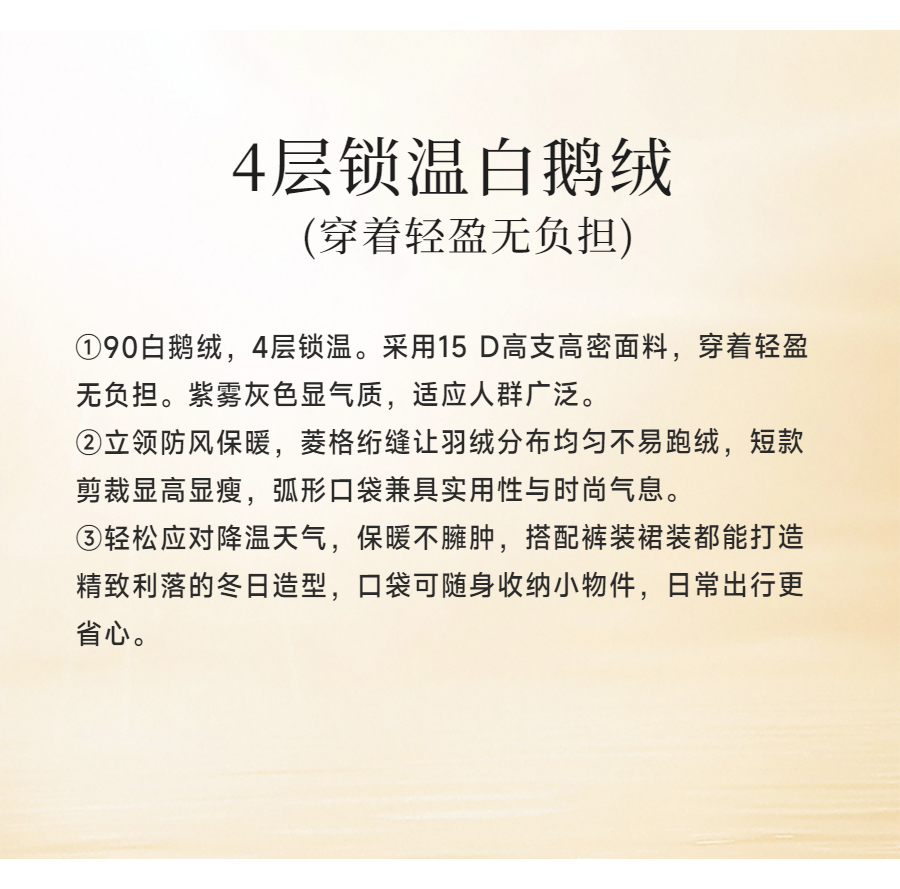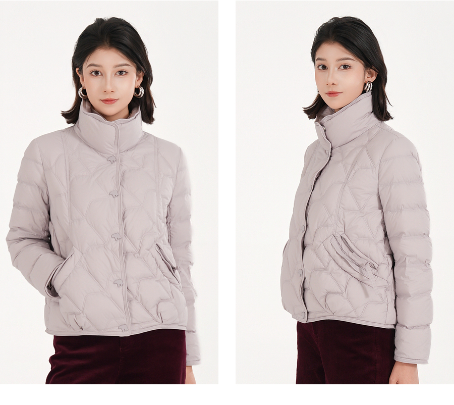 【鹅绒】乔万尼90%白鹅绒女绗缝简约通勤立领设计羽绒服ED4T866