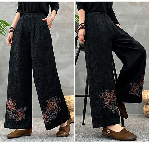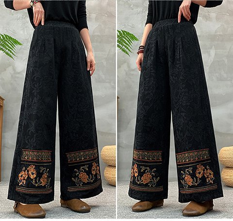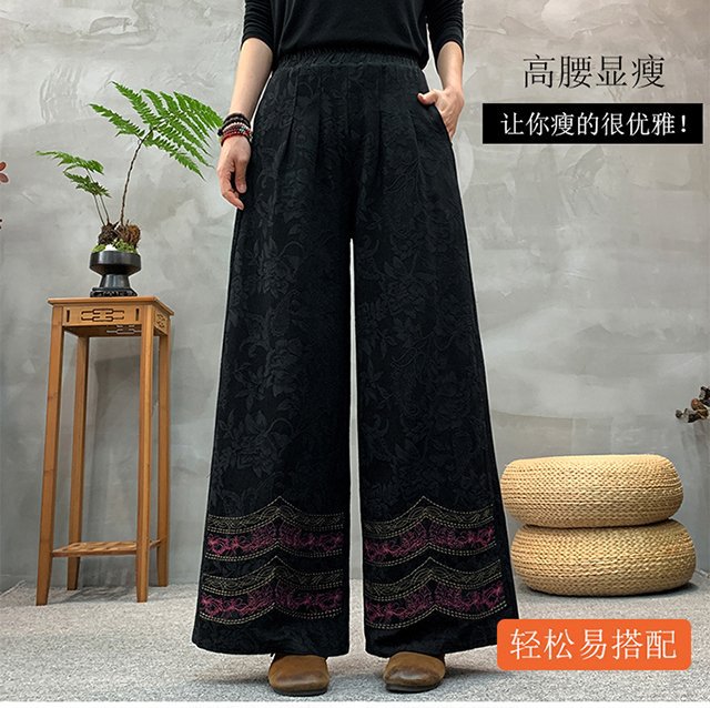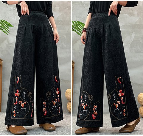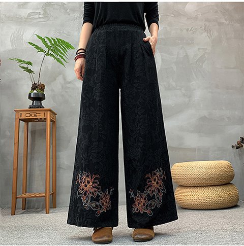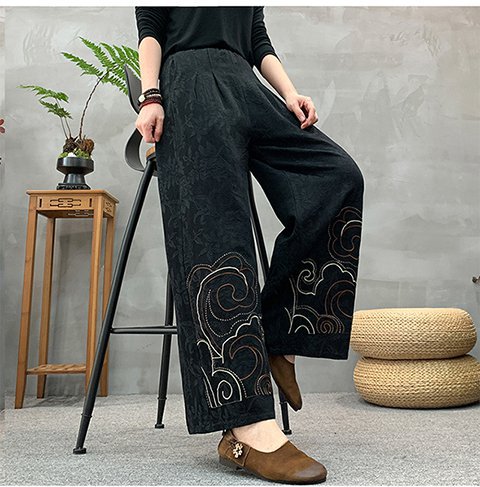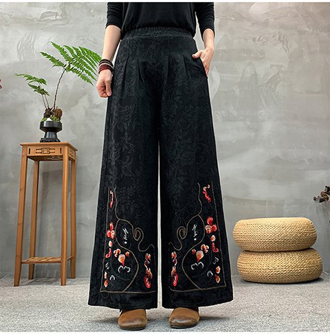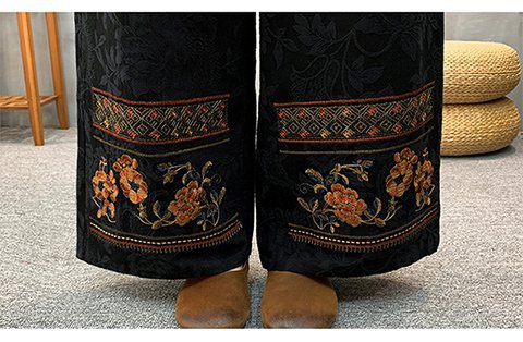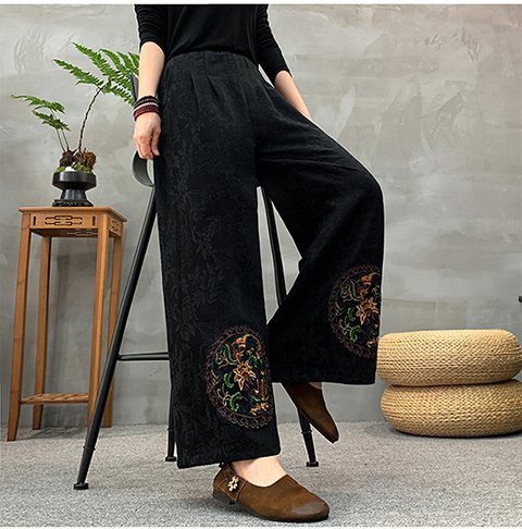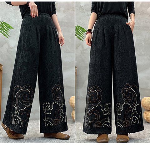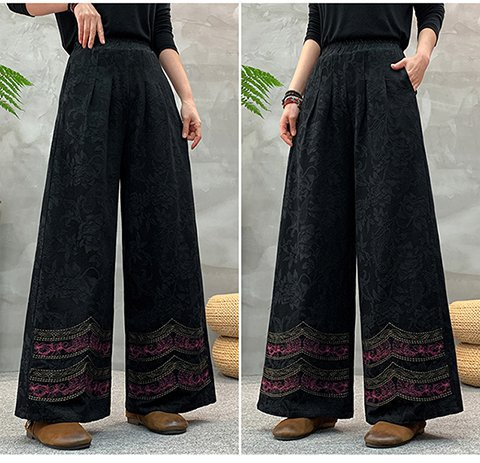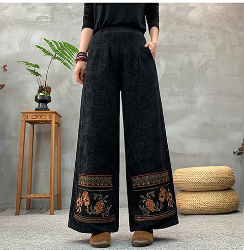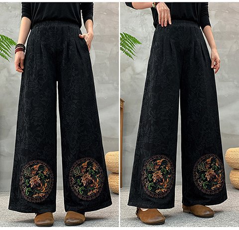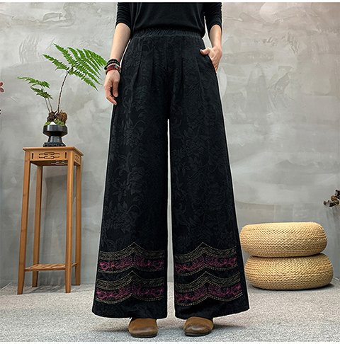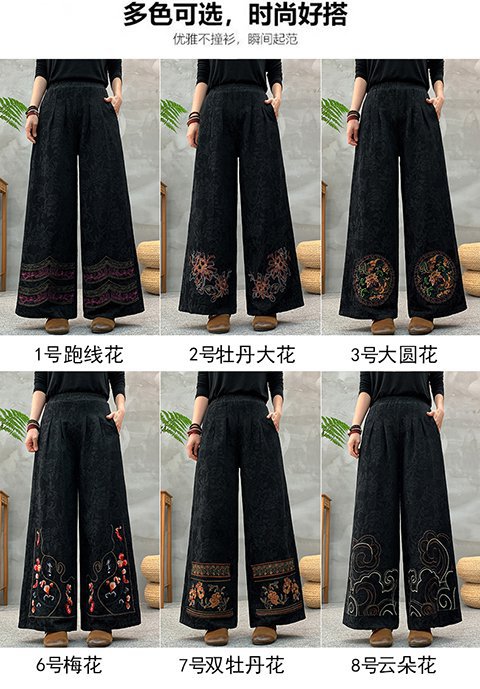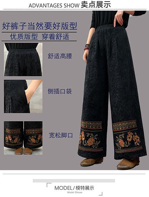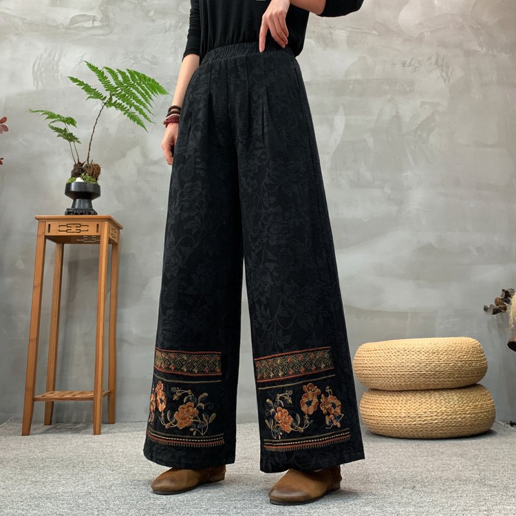 雀说新款文艺民族绣花提花重工刺绣复古裤子宽松阔腿裤长裤AL34044