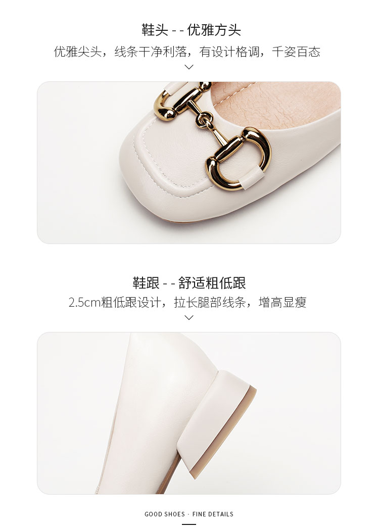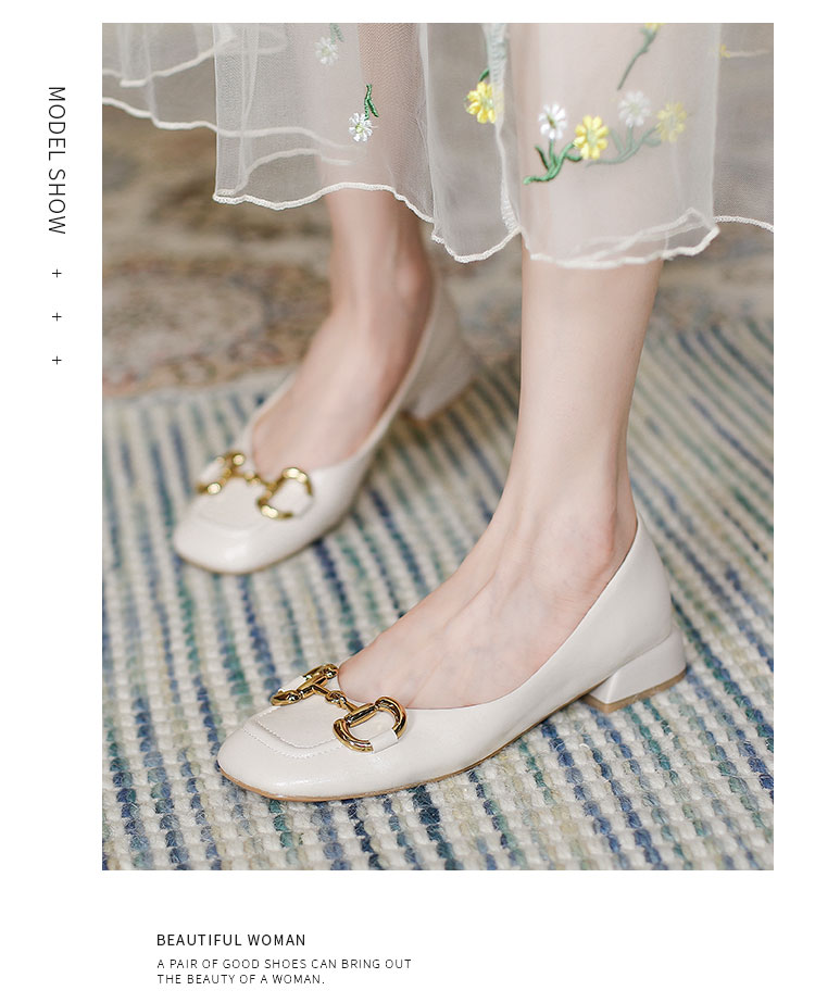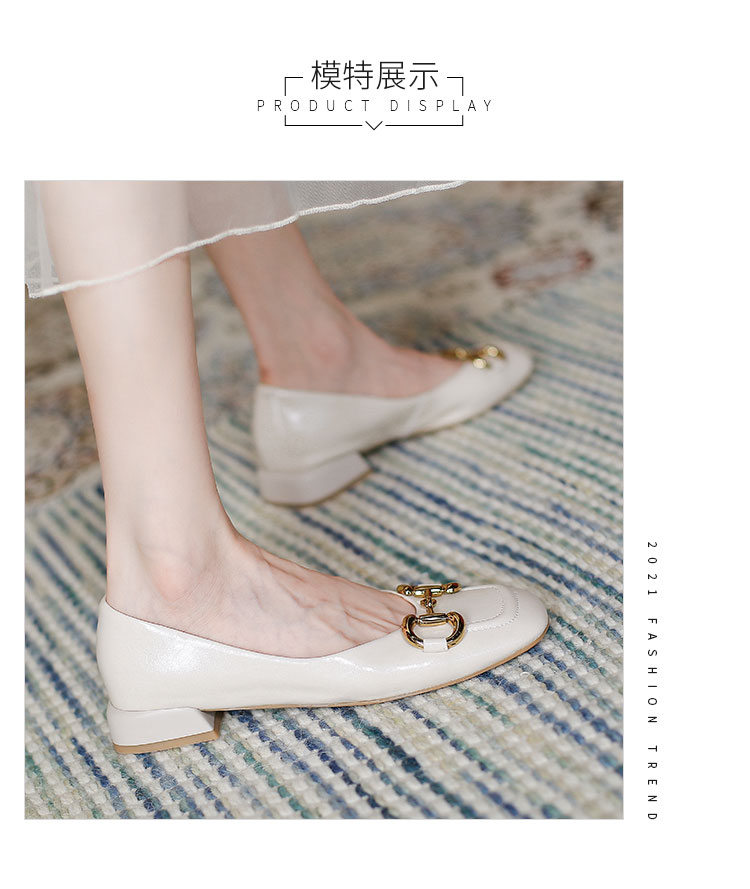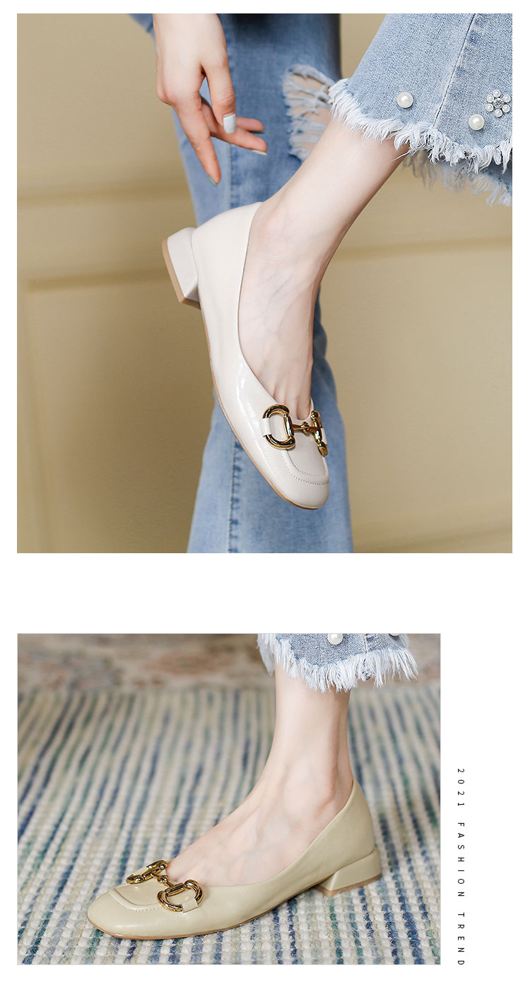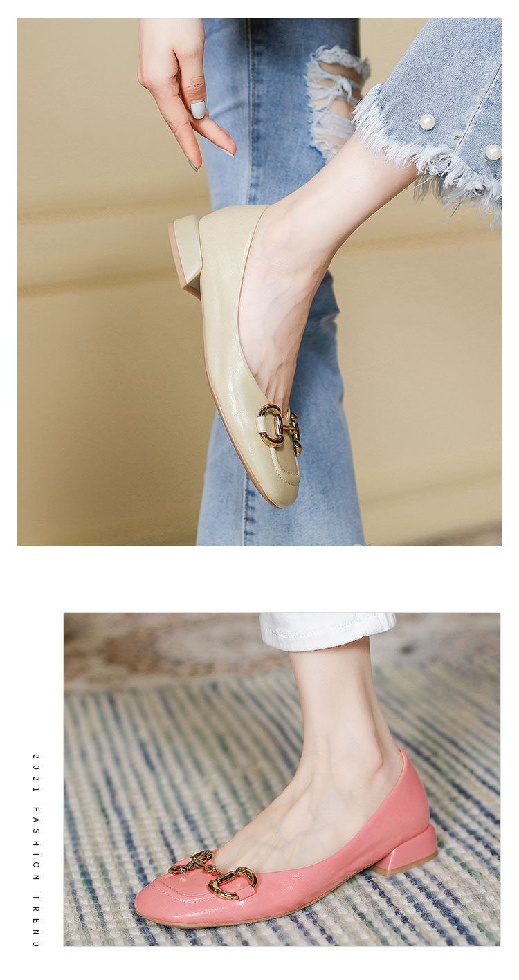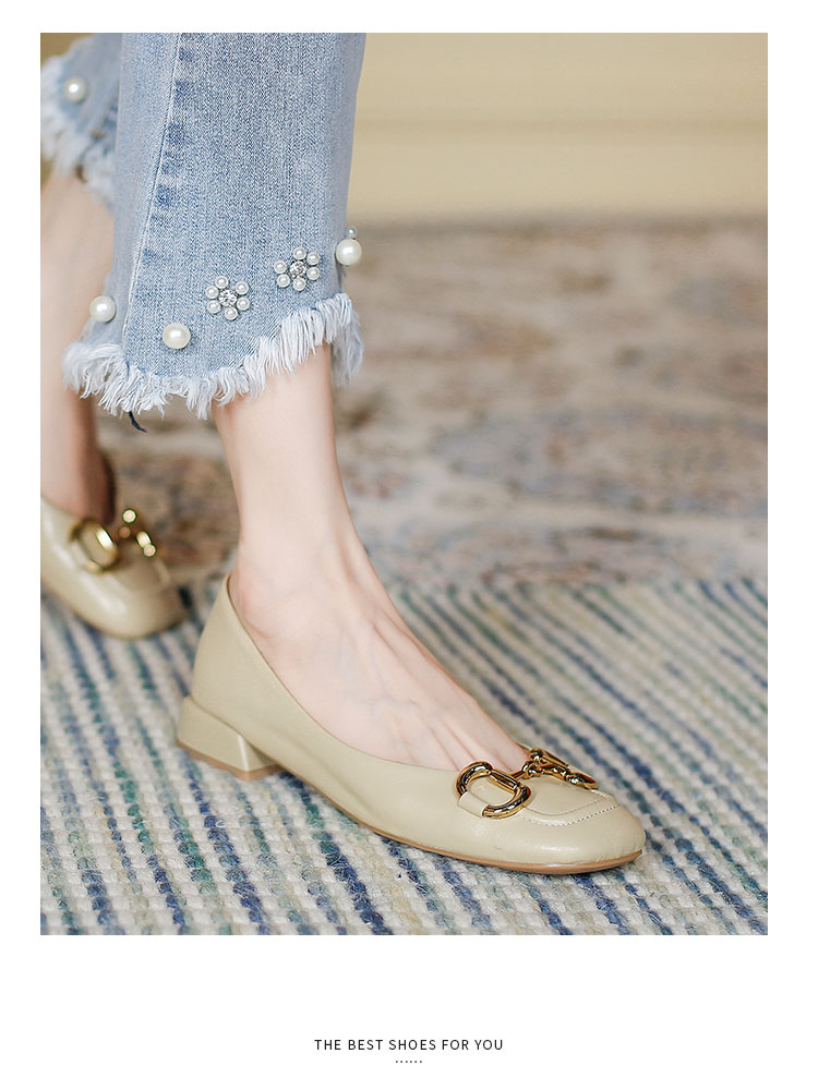 【预售5天】韩版小众低跟小皮鞋2024年新款时尚方头浅口金属扣粗跟单鞋女HCYYHD&2425