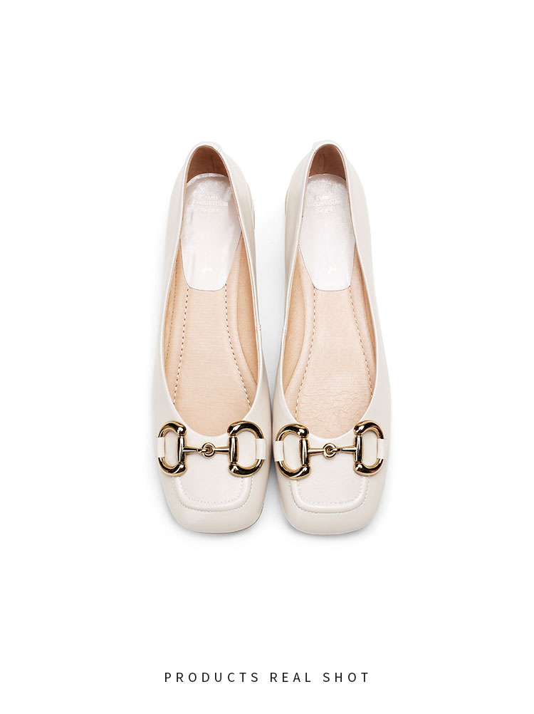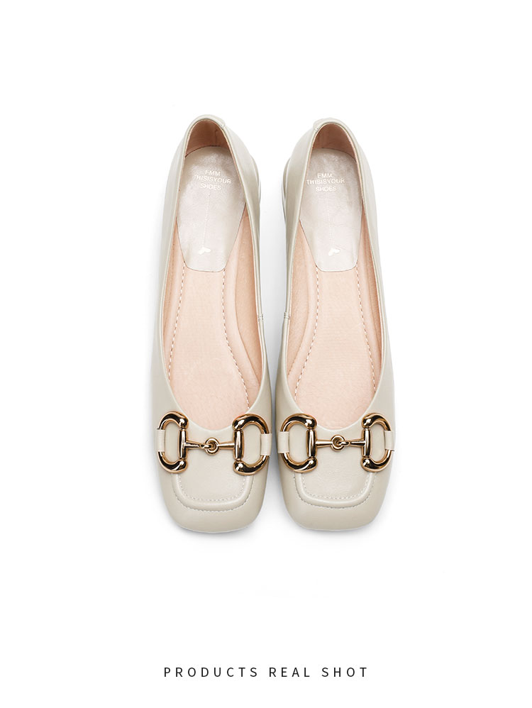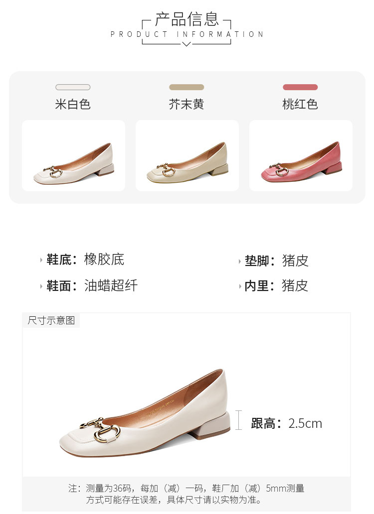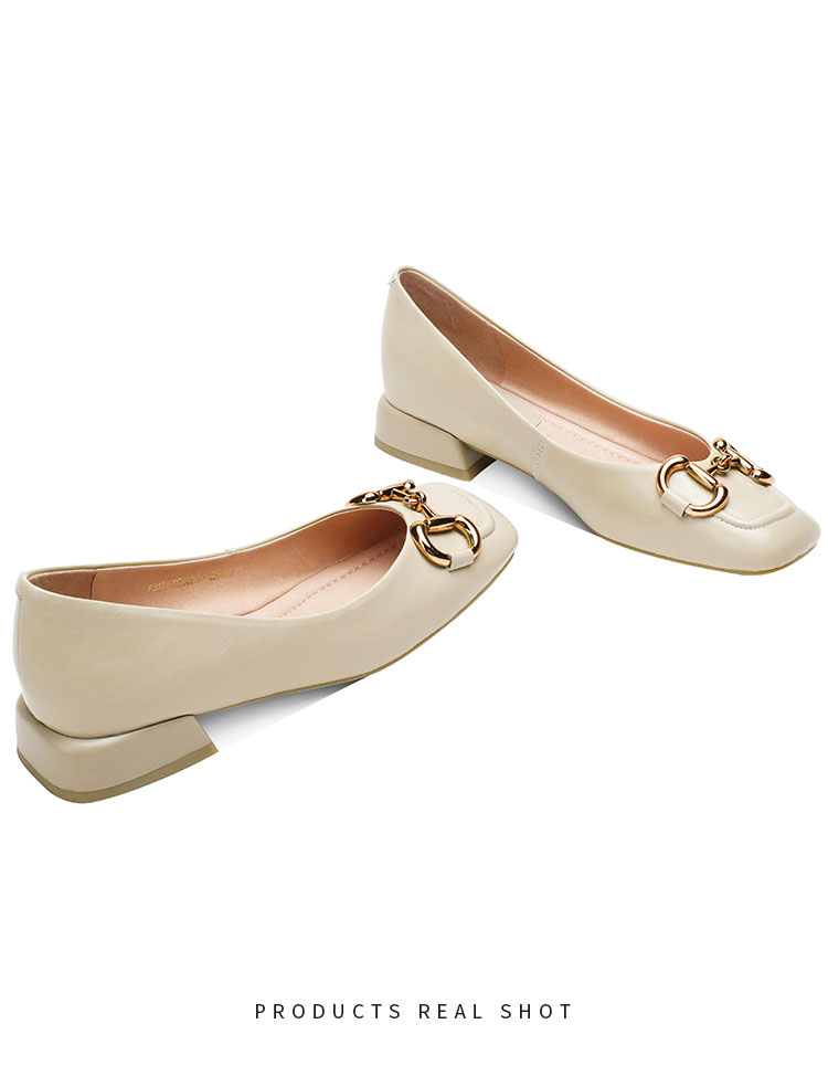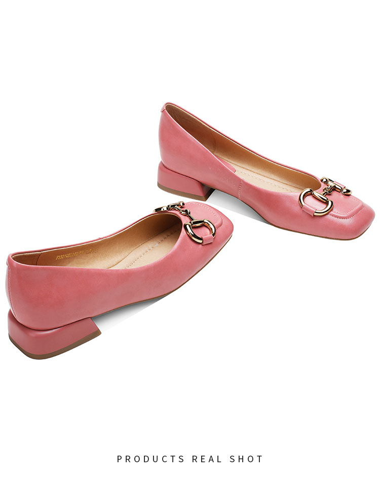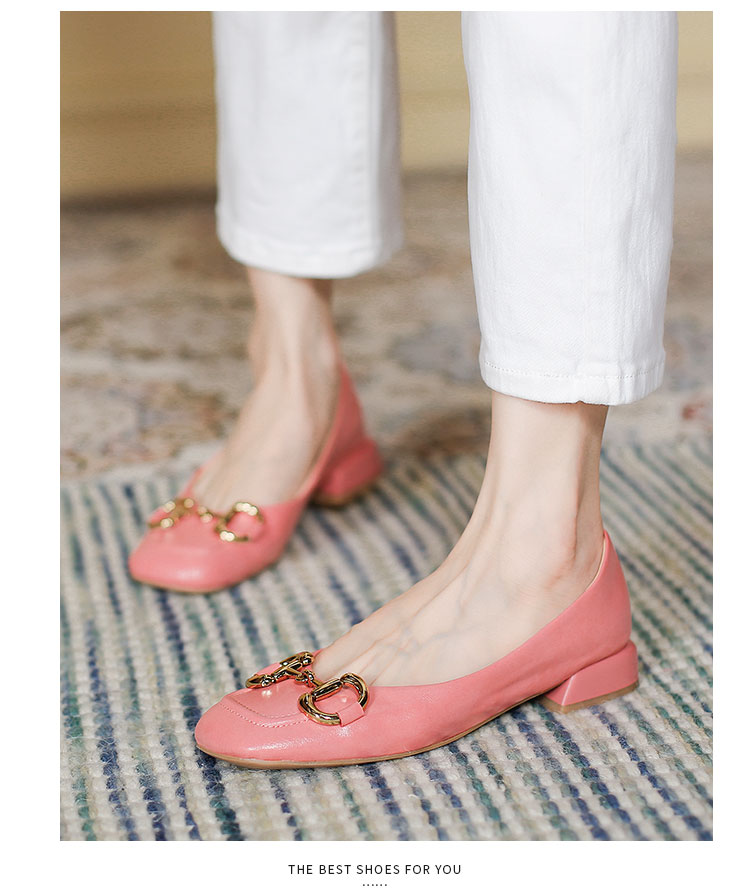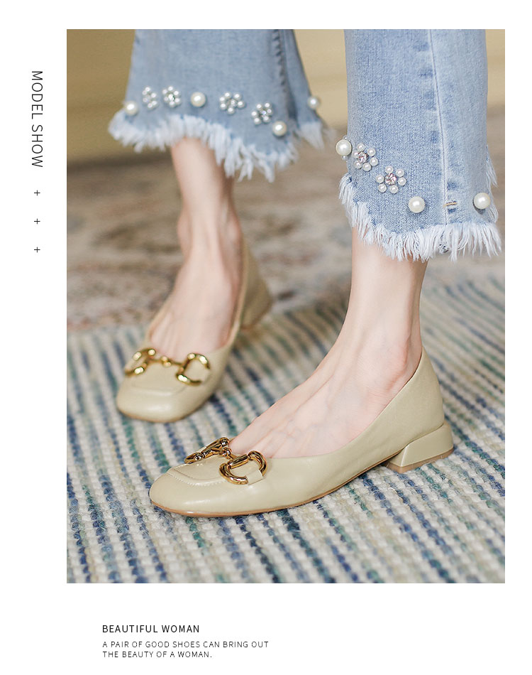 【预售5天】韩版小众低跟小皮鞋2024年新款时尚方头浅口金属扣粗跟单鞋女HCYYHD&2425