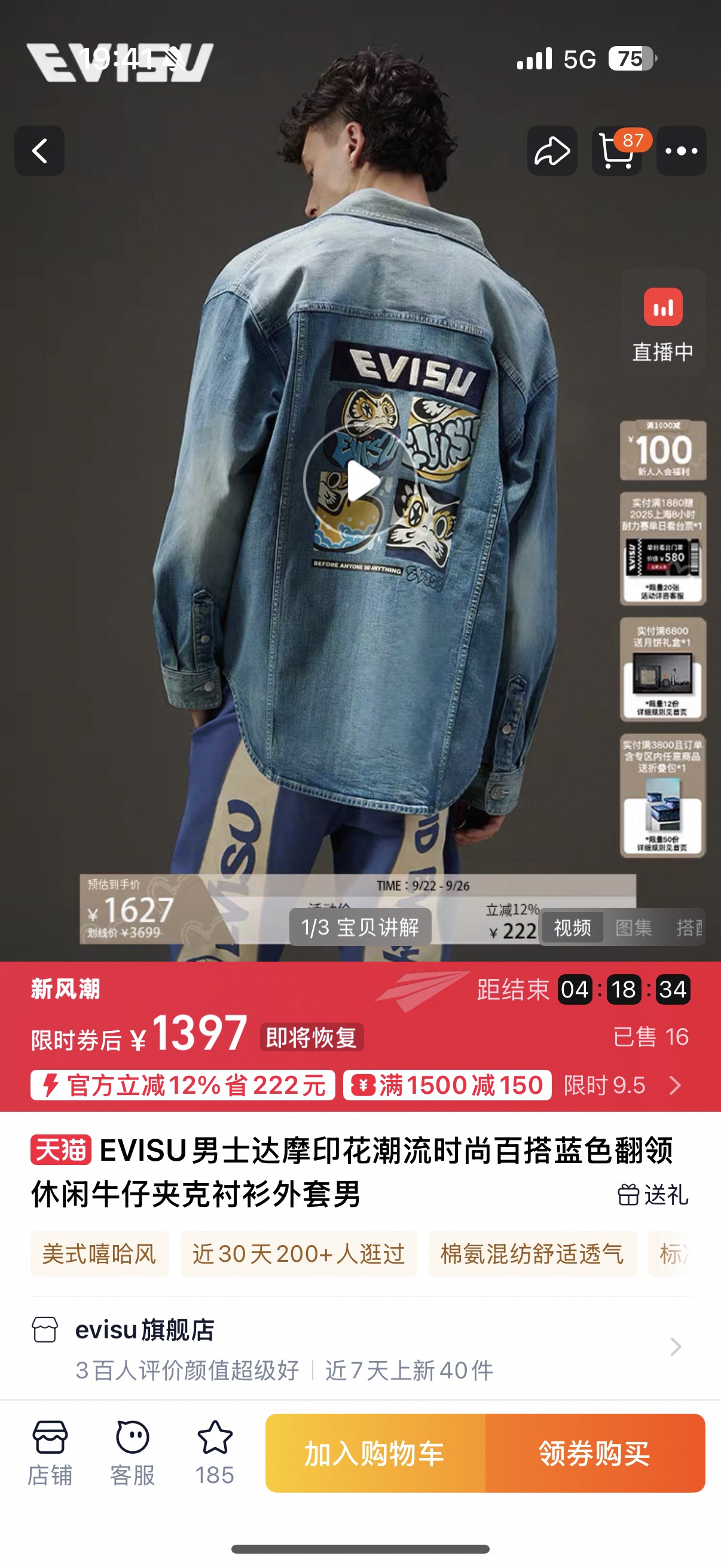 达摩四宫格印花印花➕Evisu方标刺绣