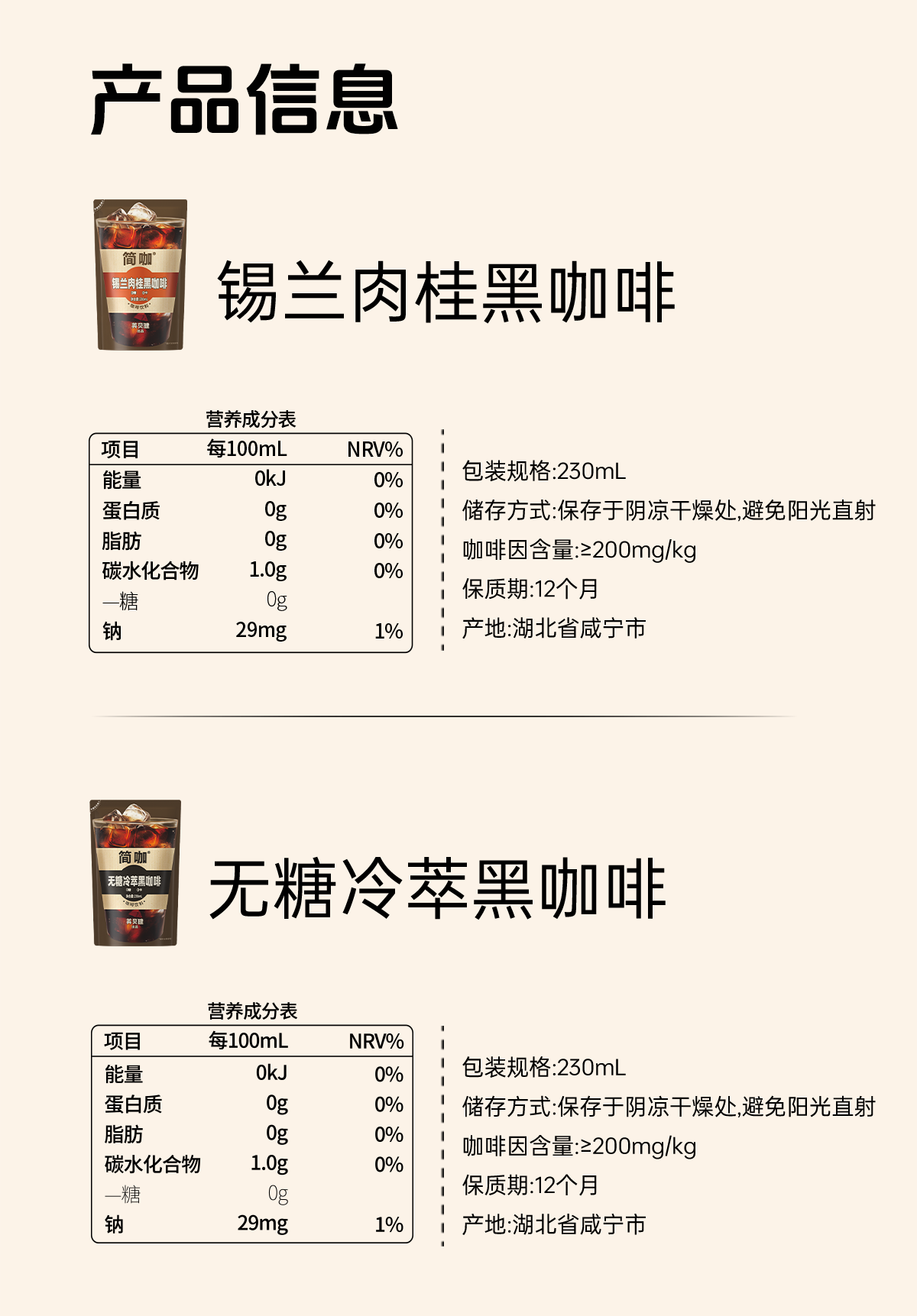 英贝健无糖冷萃/无糖锡兰肉桂黑咖啡230ml/袋