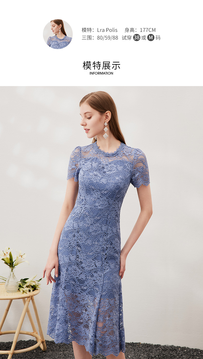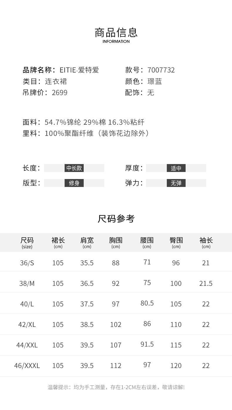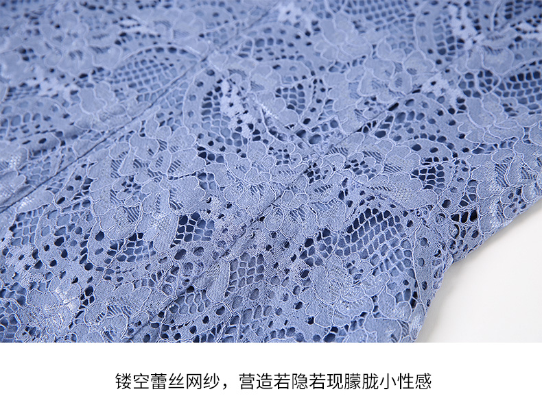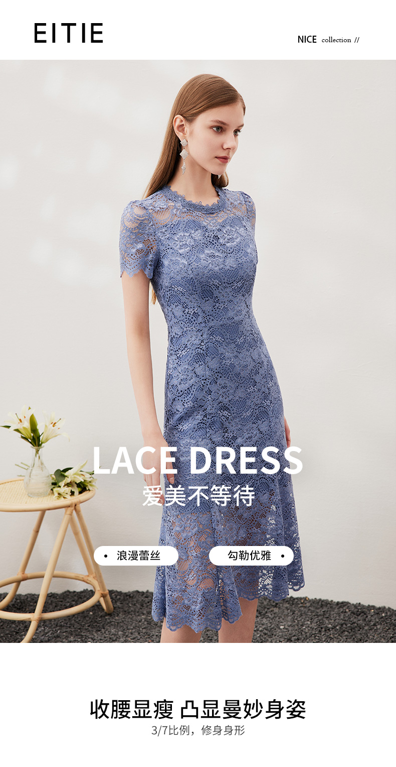 EITIE爱特爱夏季新款洋气镂空蕾丝显瘦收腰连衣裙女裙7007732