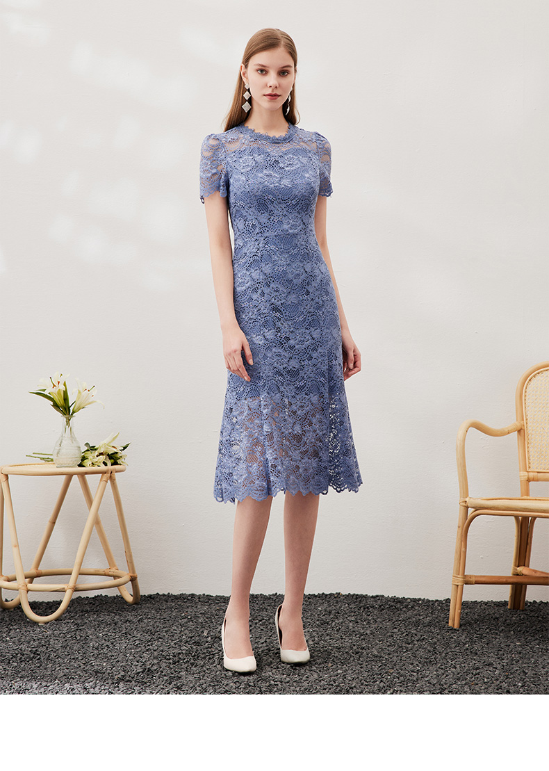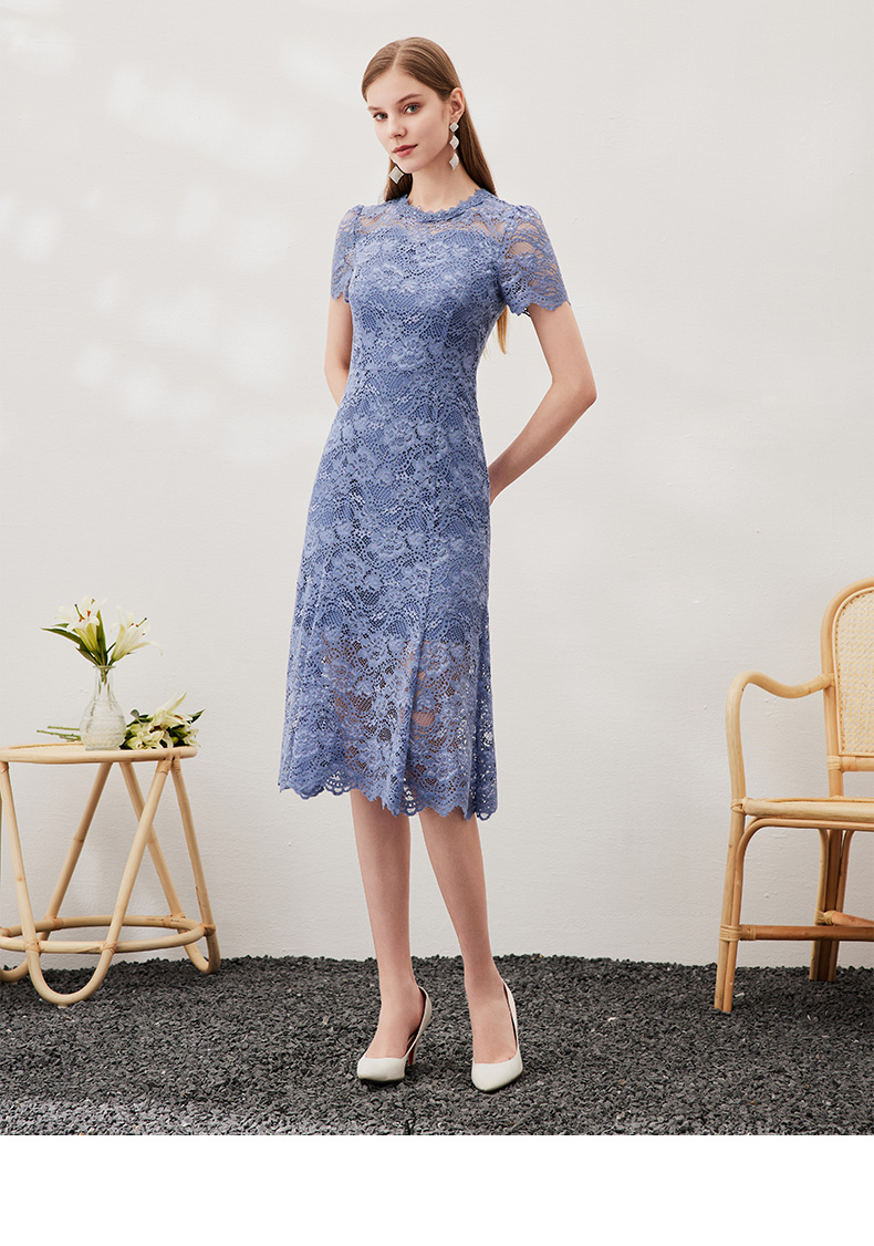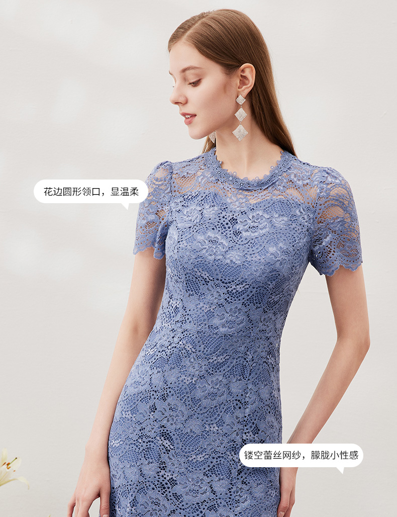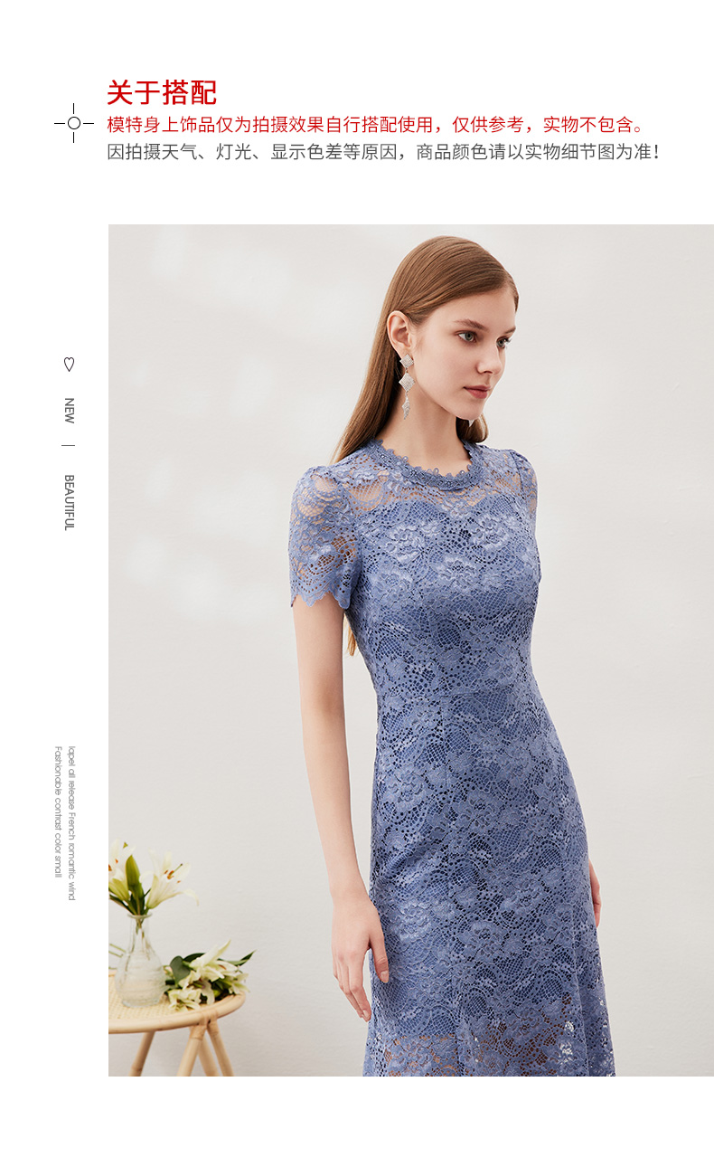 EITIE爱特爱夏季新款洋气镂空蕾丝显瘦收腰连衣裙女裙7007732
