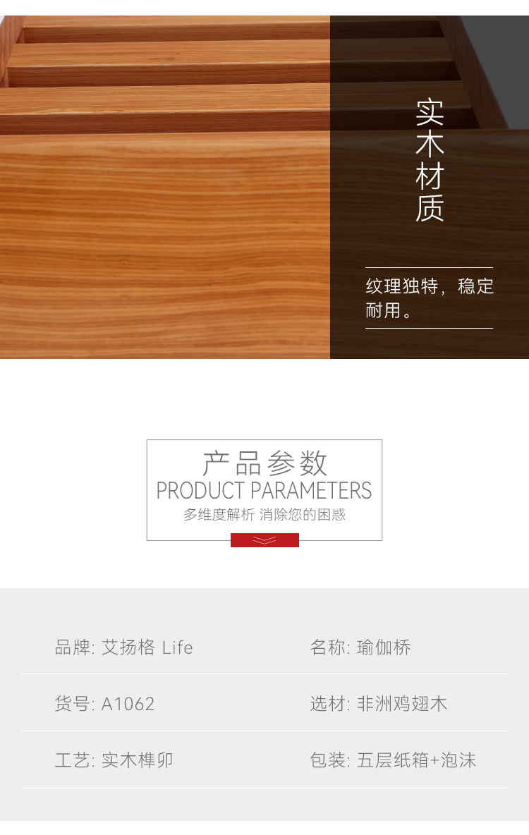 艾扬格 life A1062 瑜伽桥(鸡翅木)小鲸鱼/倒手杖式长凳/背部舒展器/瑜伽辅具