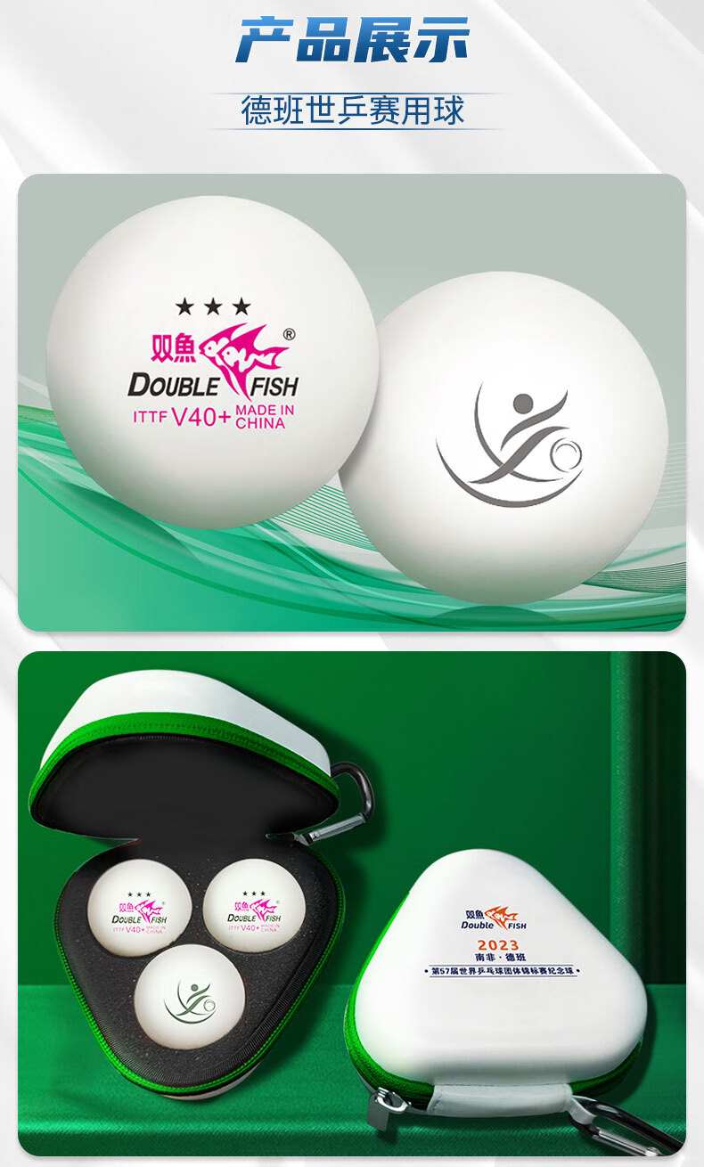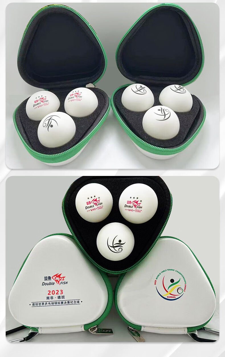 双鱼Doublefish 2023德班世乒赛纪念球(含球盒) 三星40+有缝乒乓球 三个装