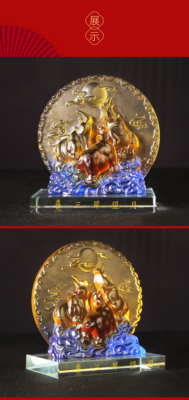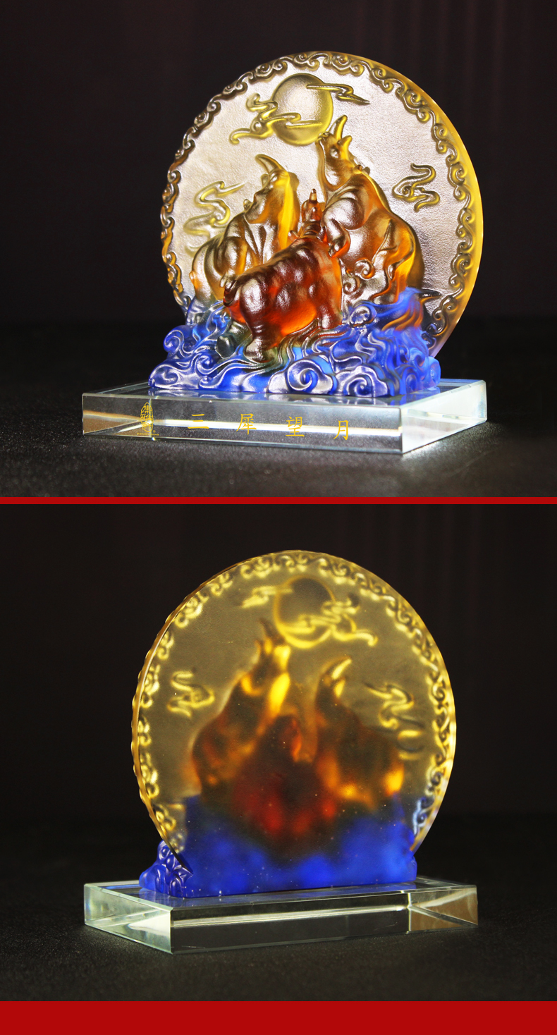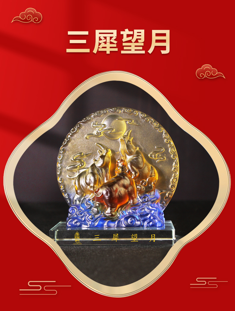 宋韶光大师三犀望月 犀牛古法琉璃摆件礼品饰物