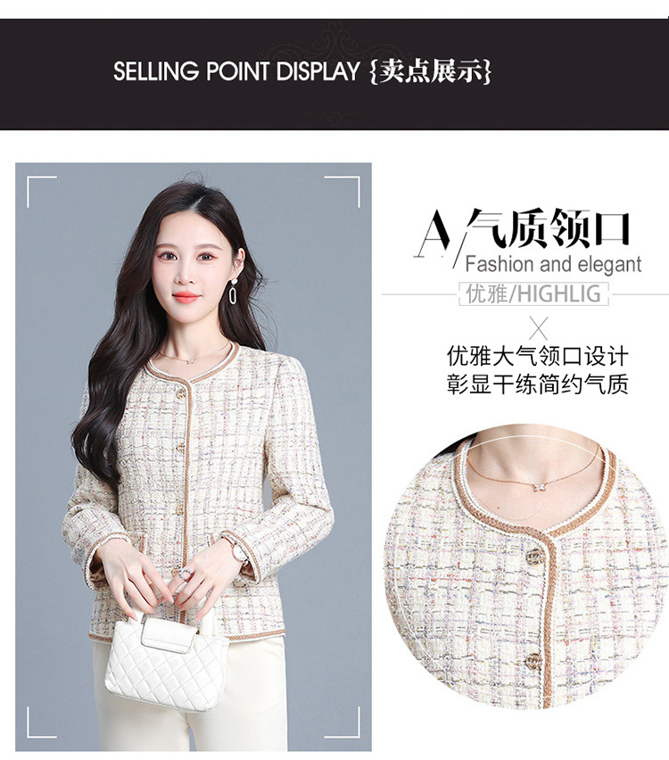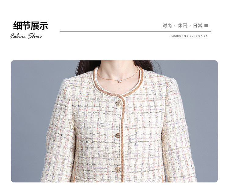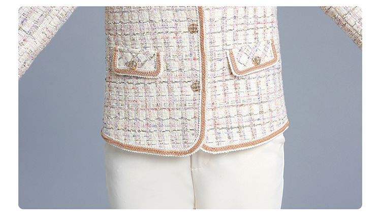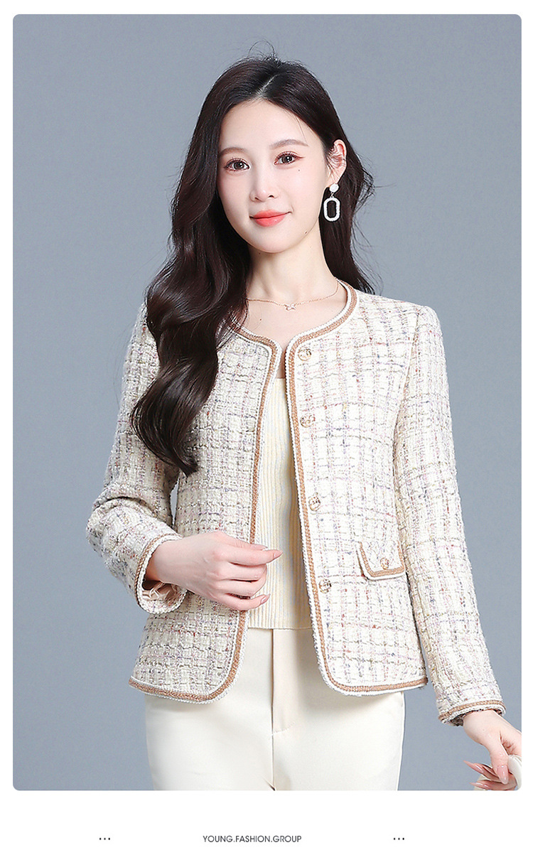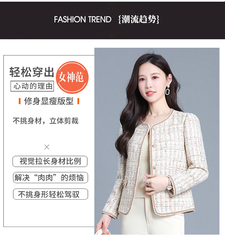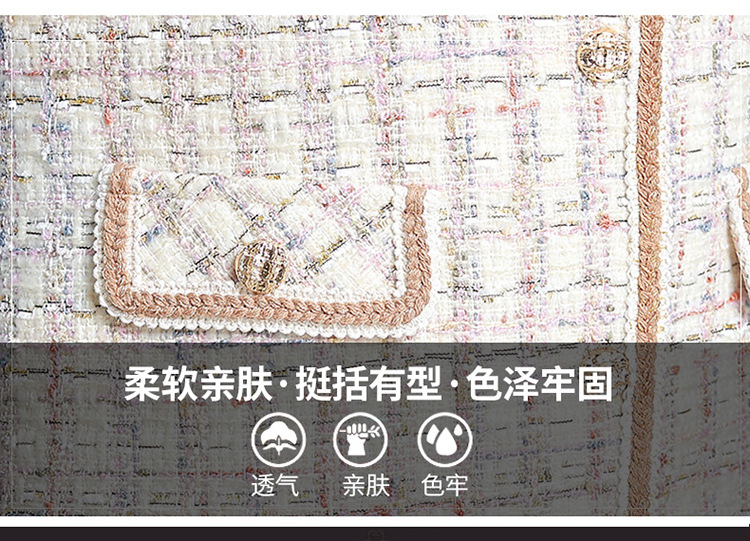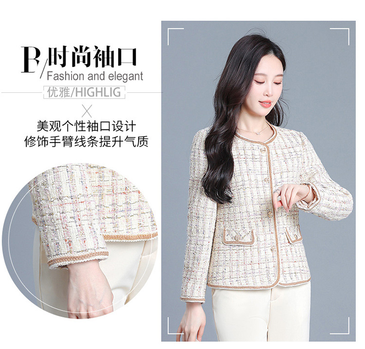 QYM 725020-Y时髦换新外套格纹小香风短款休闲单排扣 商品图3