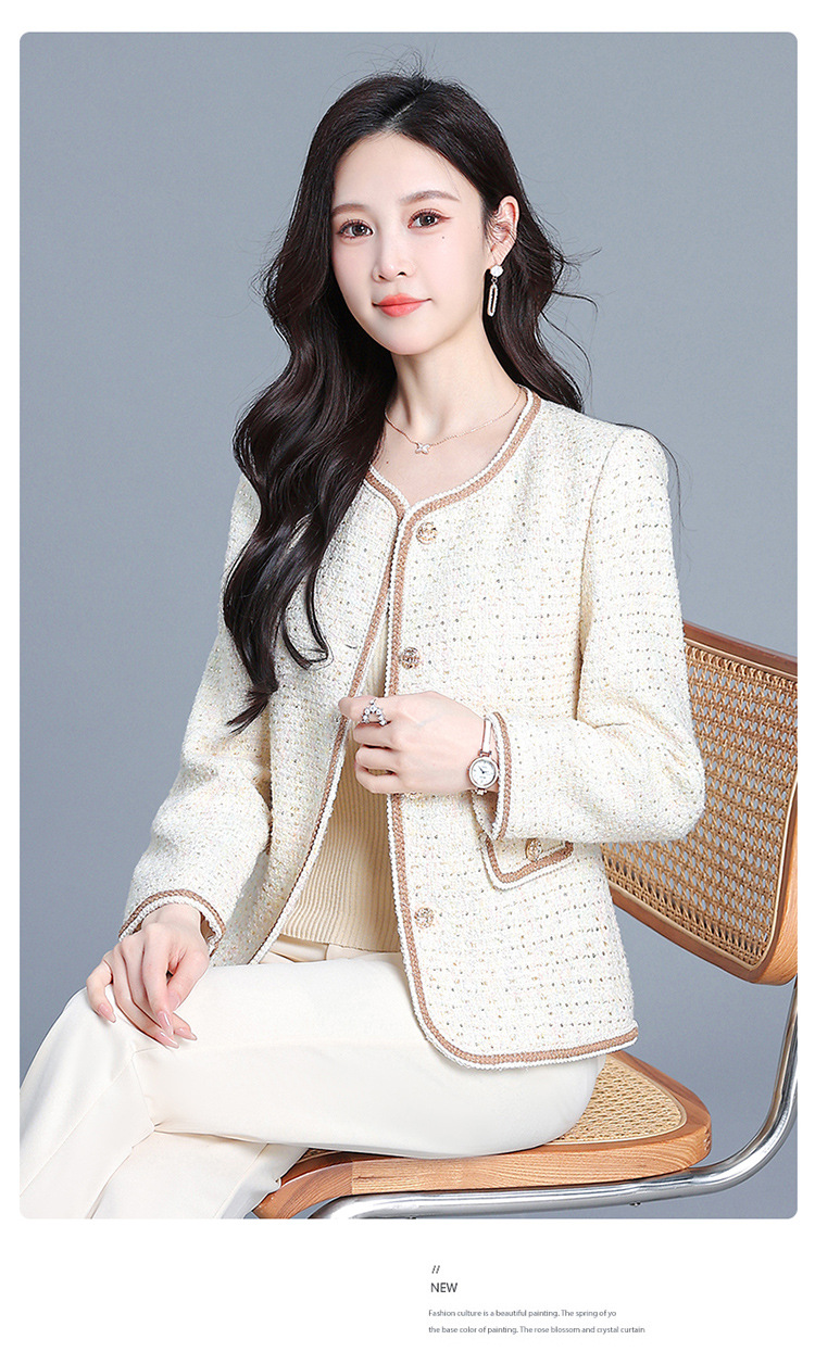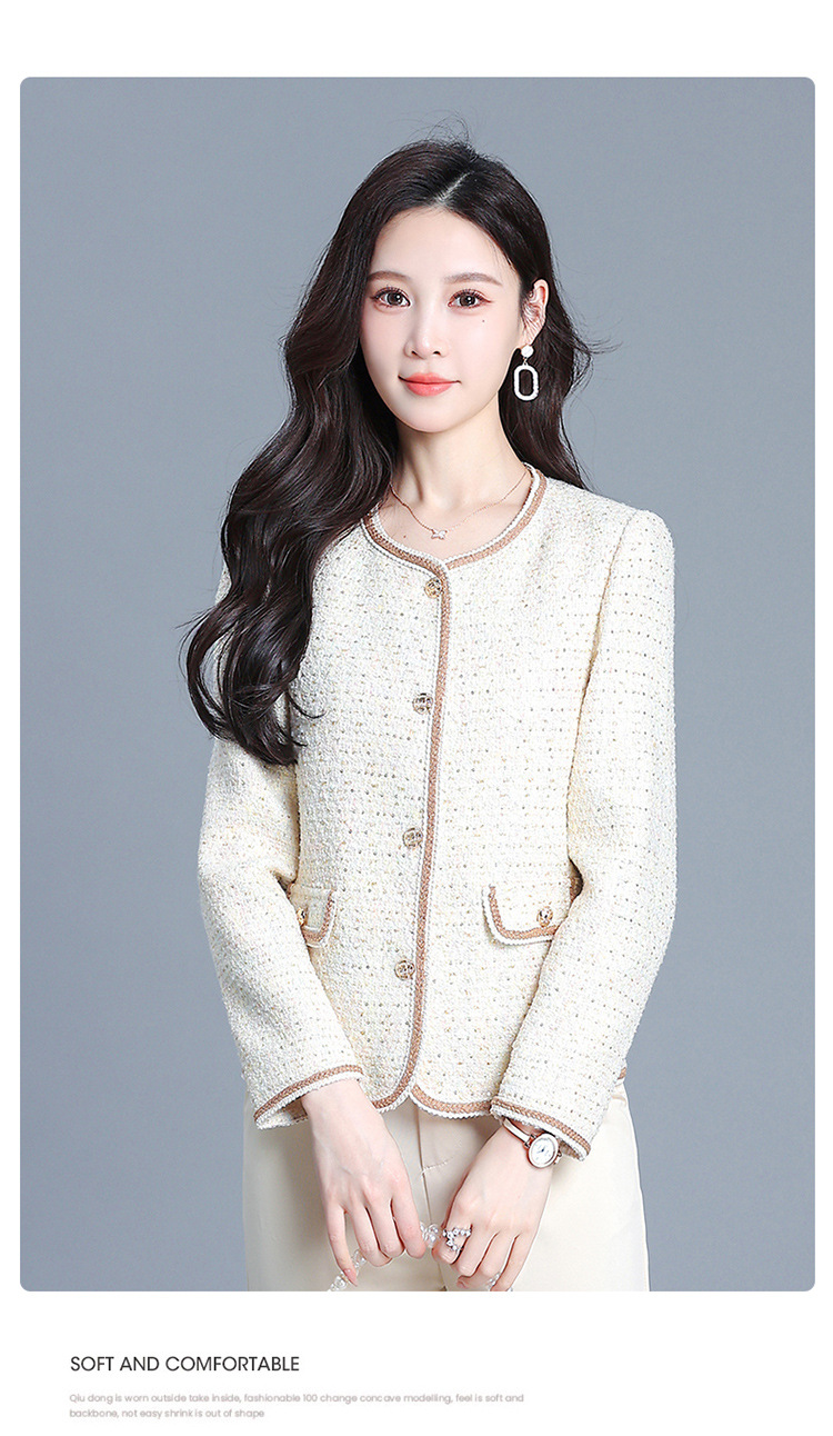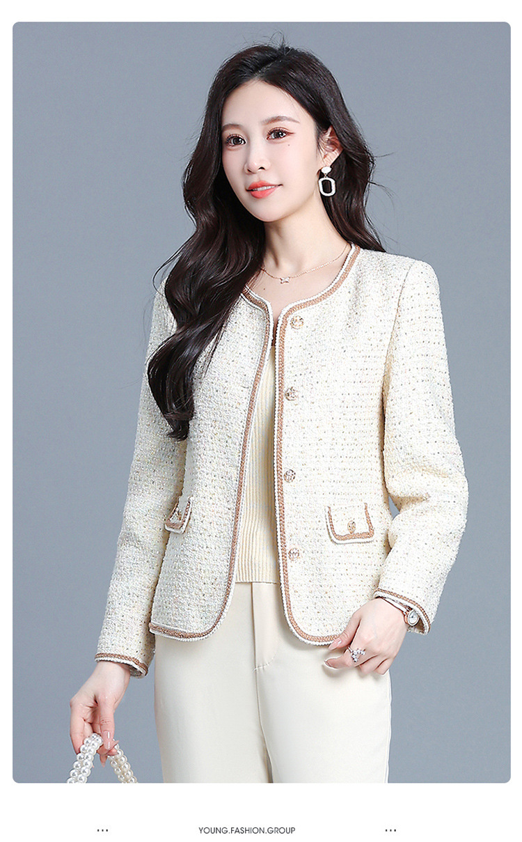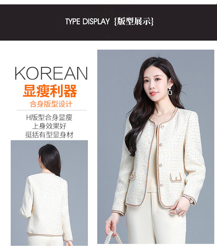 QYM 725020-Y时髦换新外套格纹小香风短款休闲单排扣 商品图3