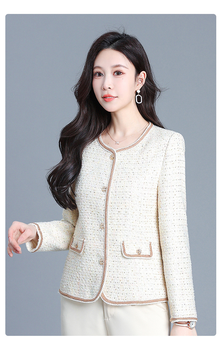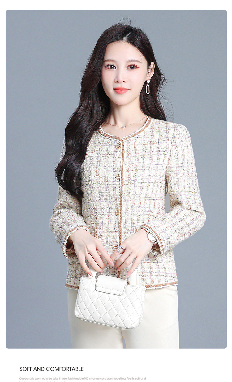 QYM 725020-Y时髦换新外套格纹小香风短款休闲单排扣 商品图2