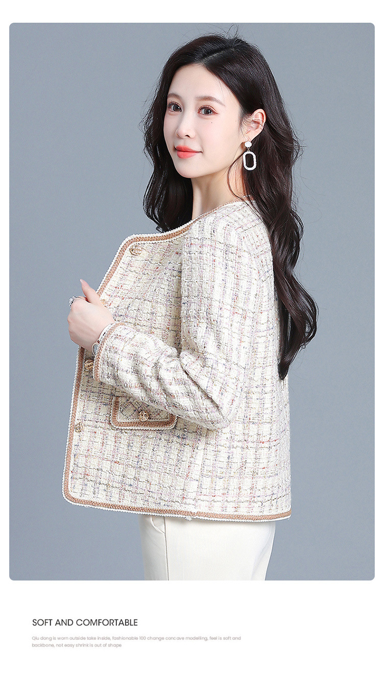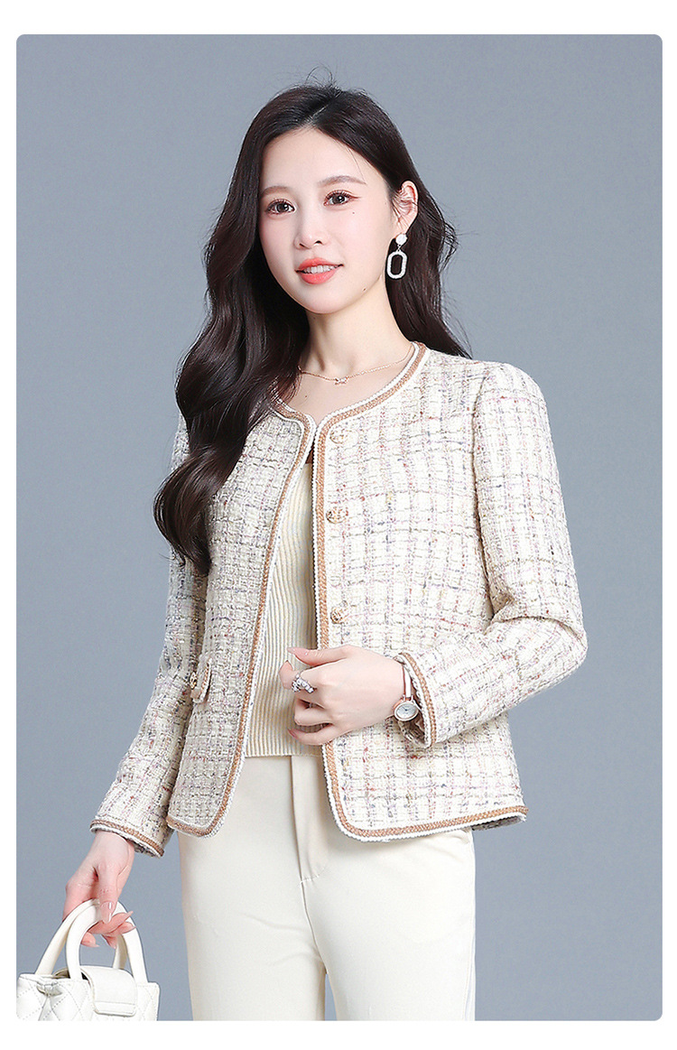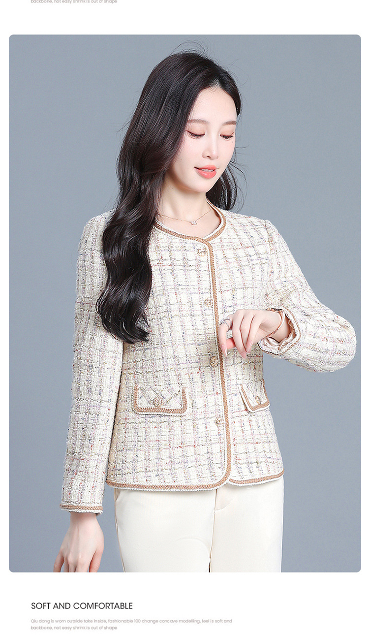 QYM 725020-Y时髦换新外套格纹小香风短款休闲单排扣