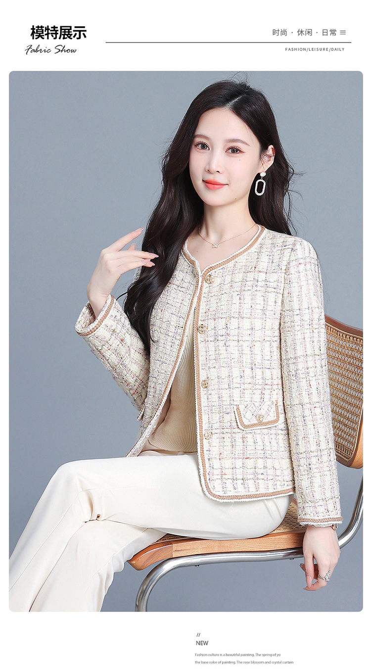 QYM 725020-Y时髦换新外套格纹小香风短款休闲单排扣 商品图1