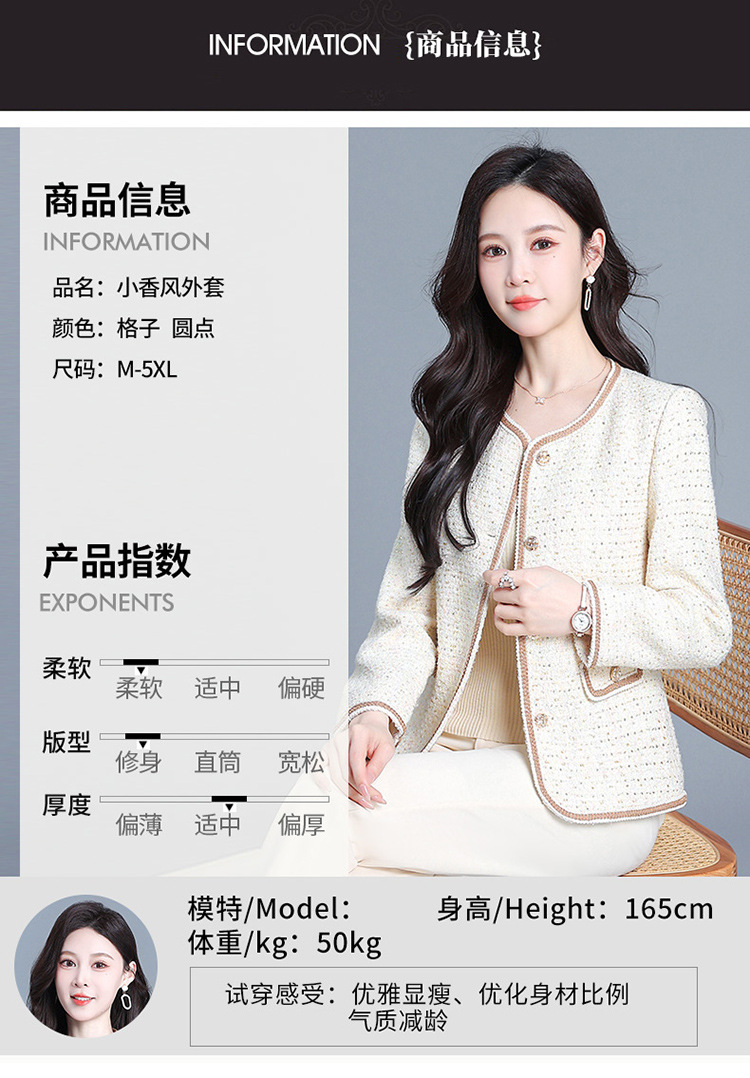 QYM 725020-Y时髦换新外套格纹小香风短款休闲单排扣 商品图0