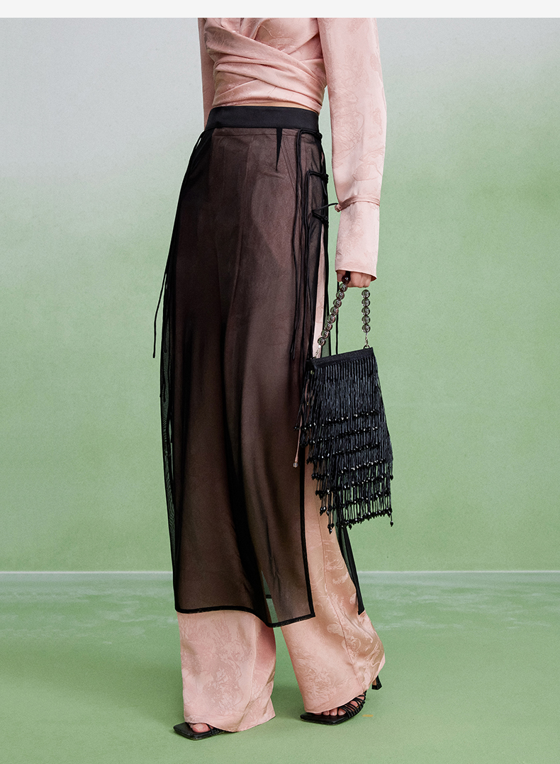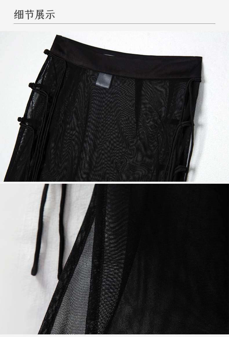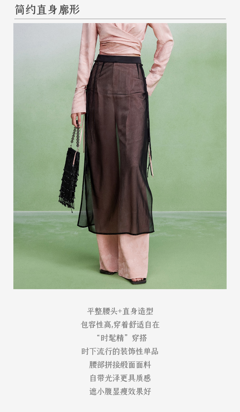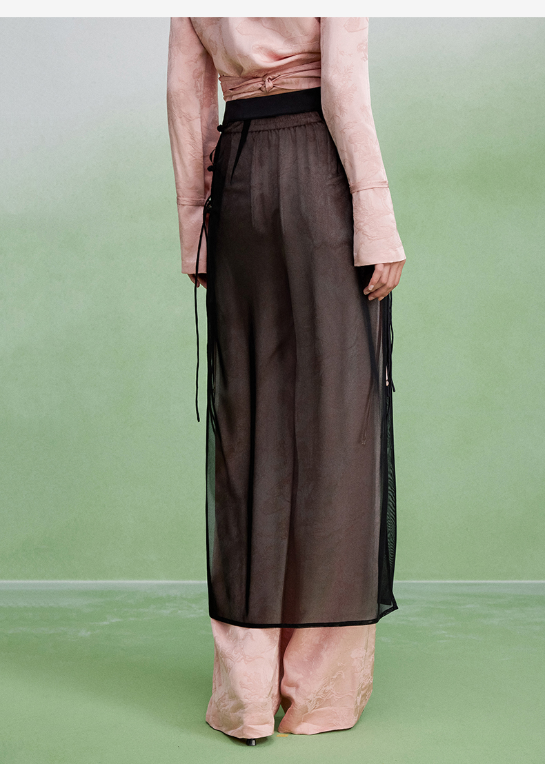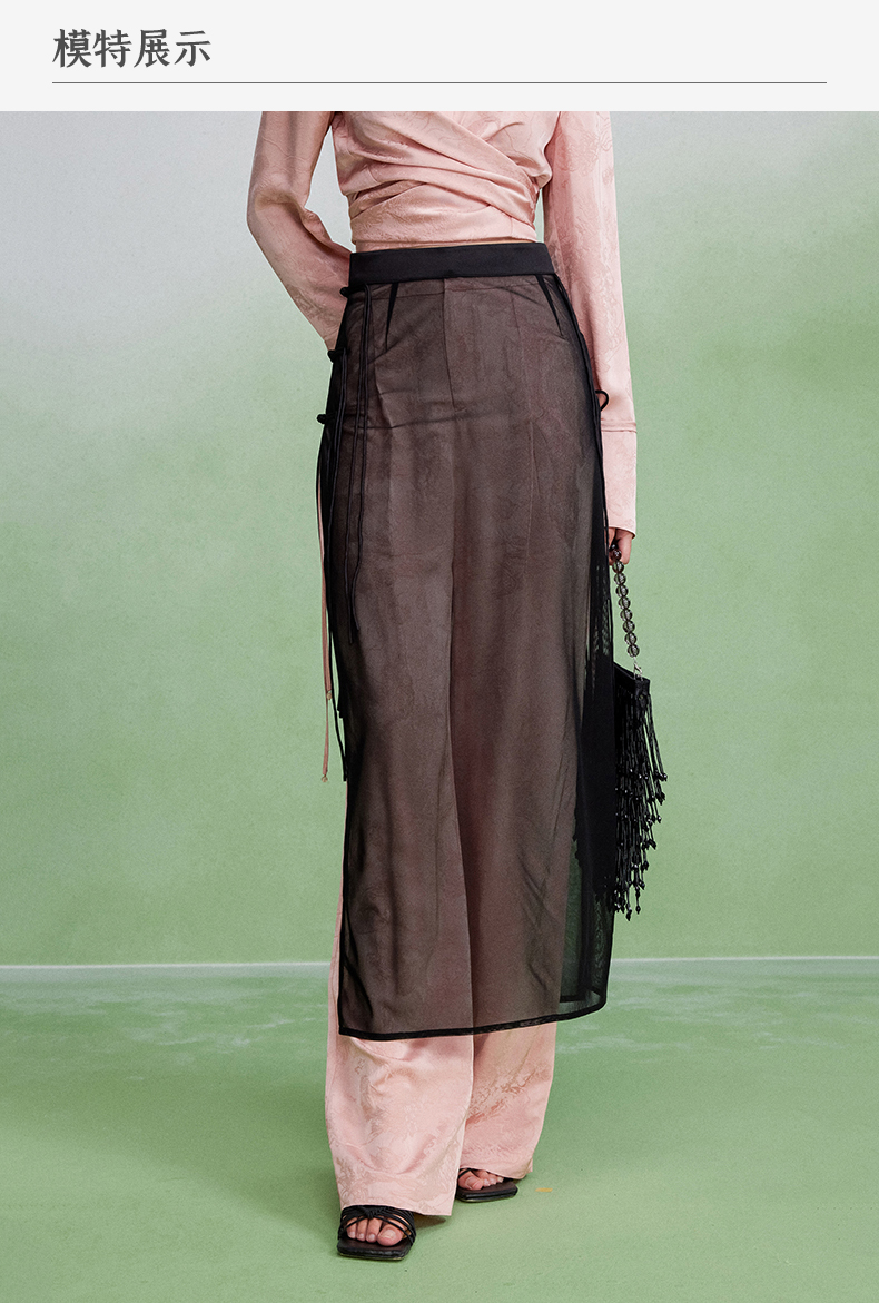 西嘉新中式醋酸网纱高腰气质拼接直筒叠穿半裙