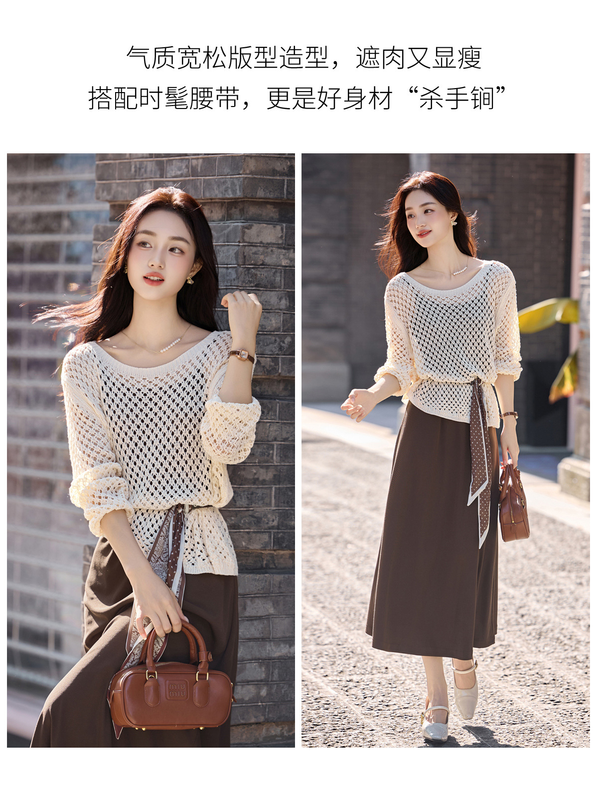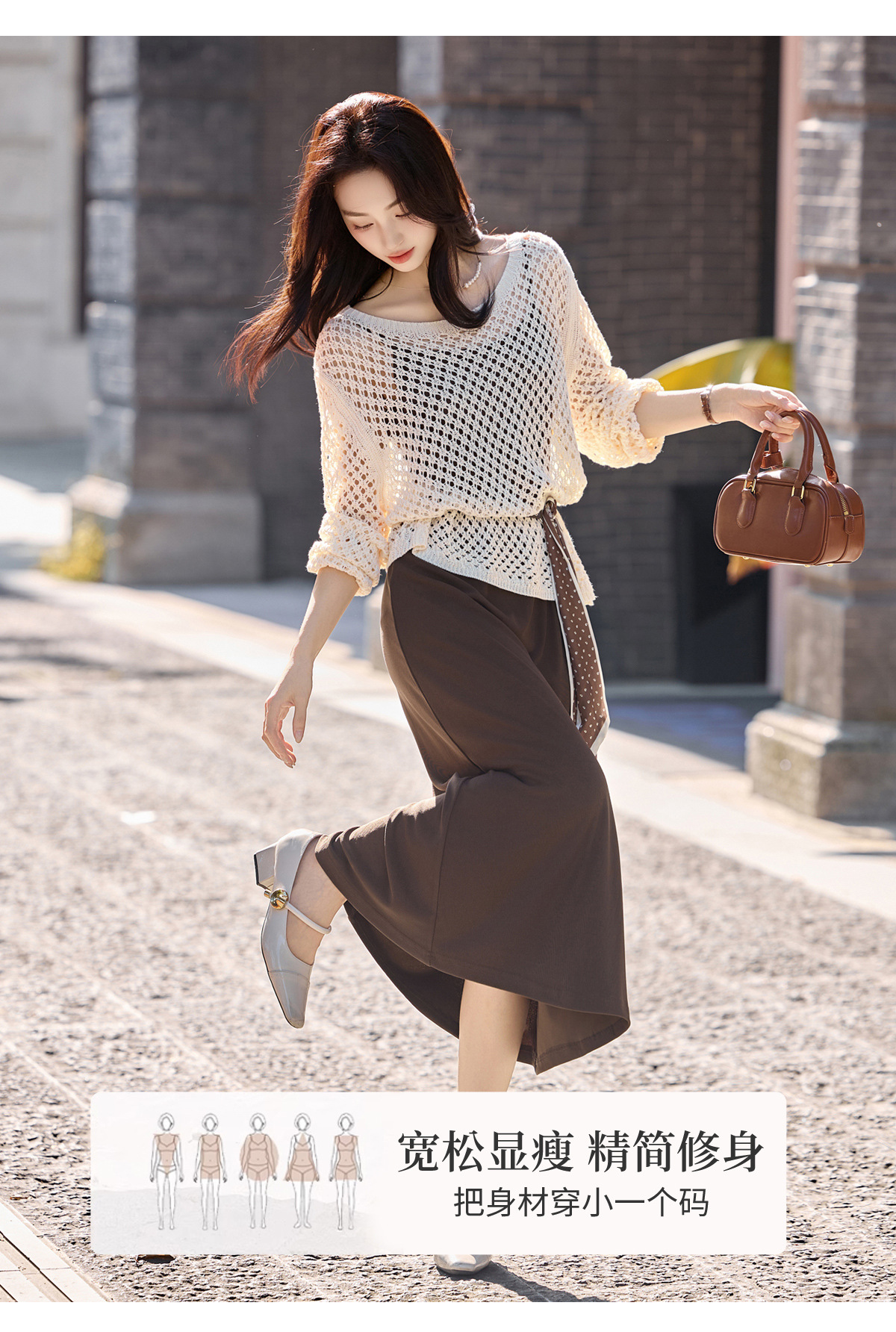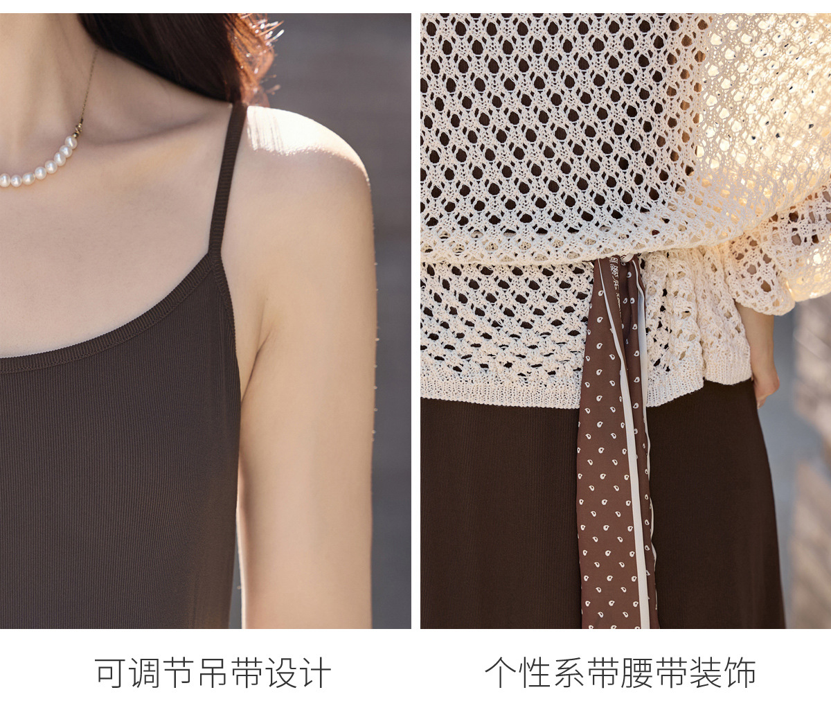HY8633时尚连衣裙女2025秋季新款气质镂空罩衫+吊带裙显瘦两件套 商品图3