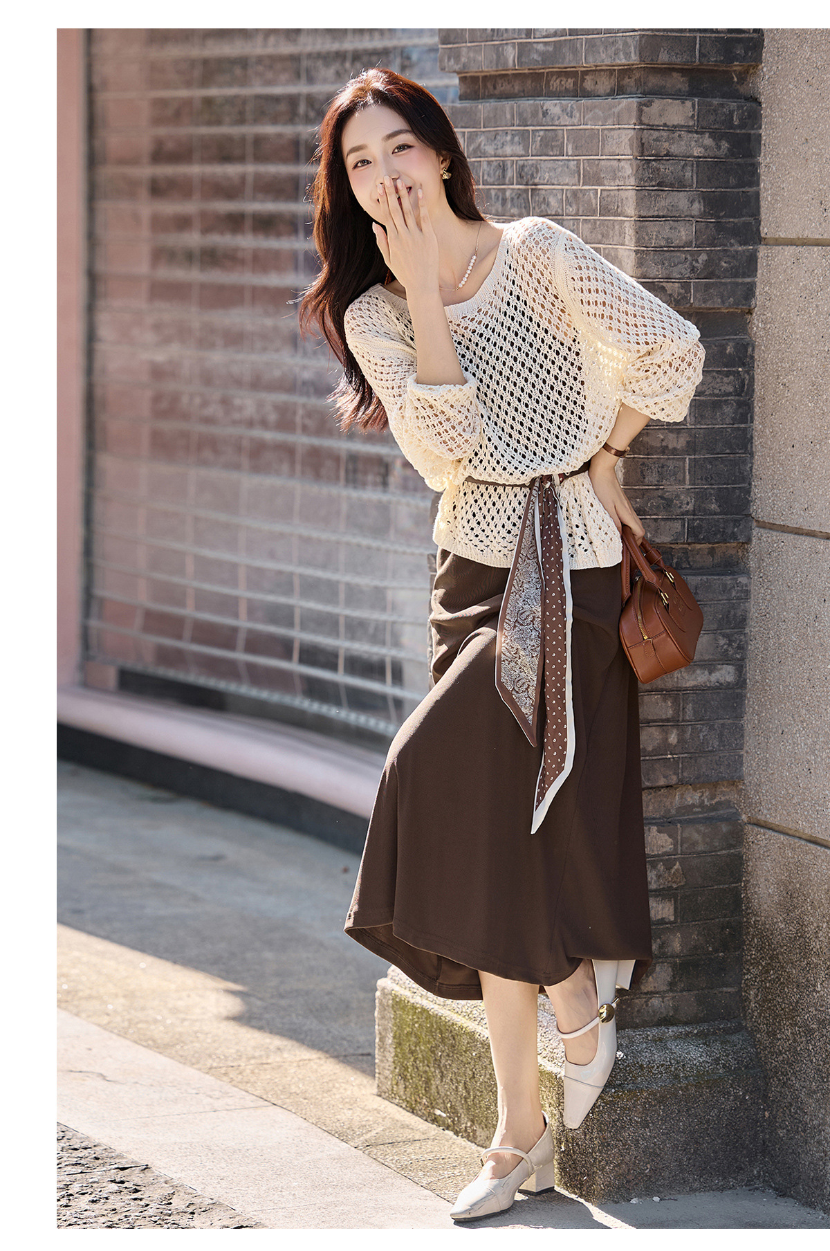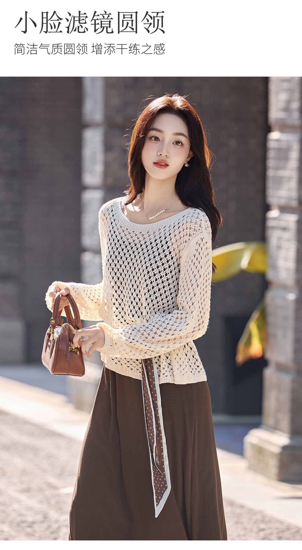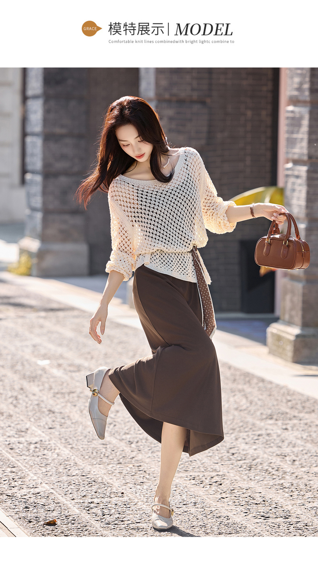 HY8633时尚连衣裙女2025秋季新款气质镂空罩衫+吊带裙显瘦两件套 商品图3