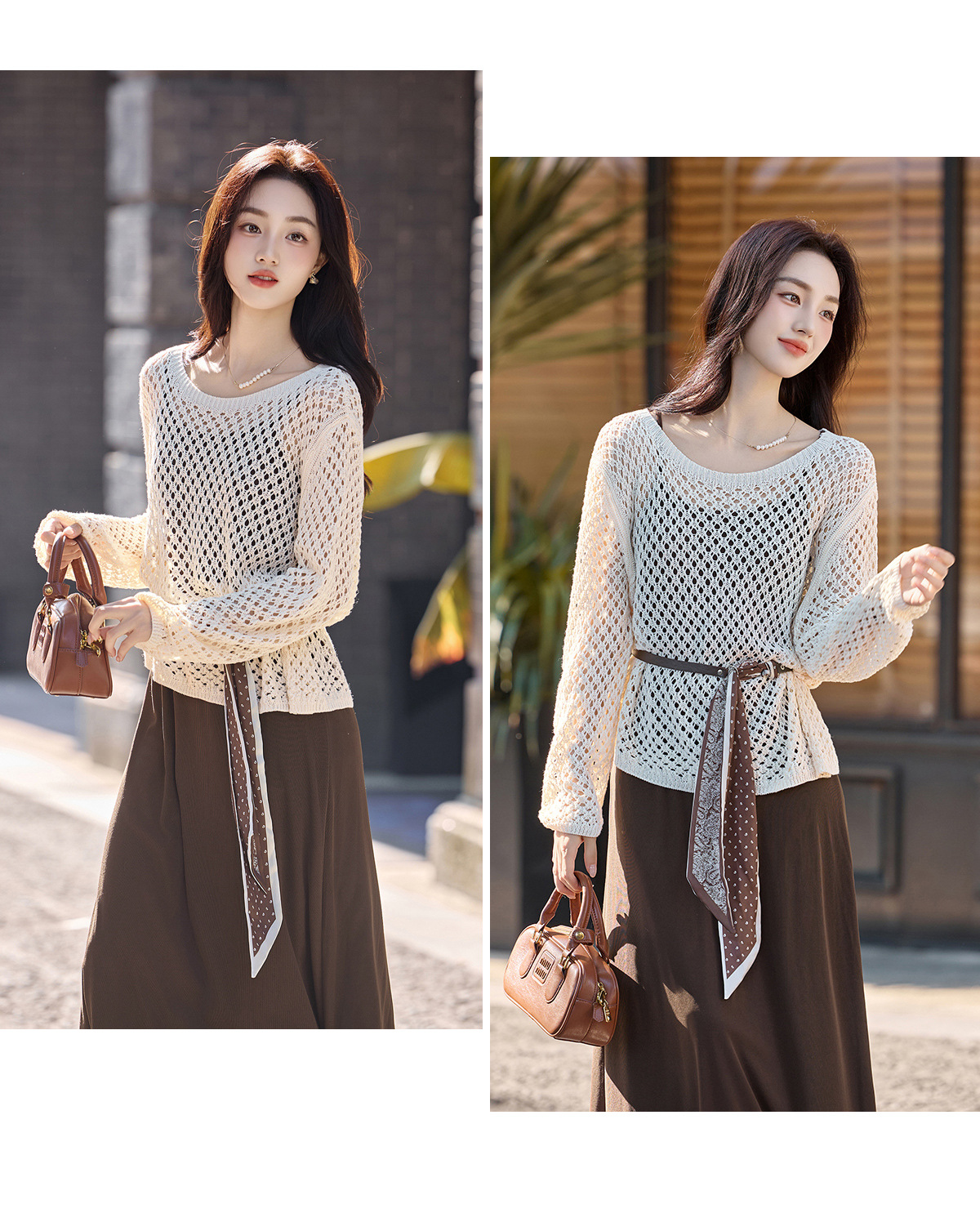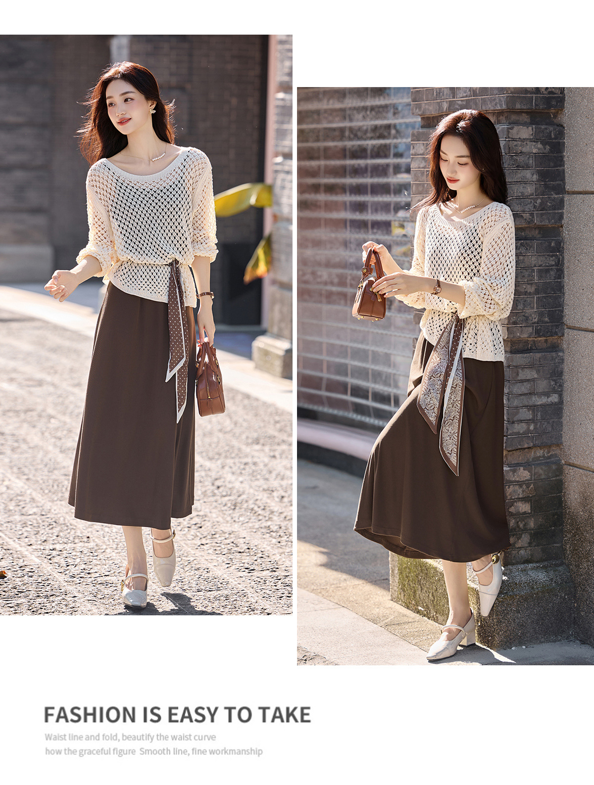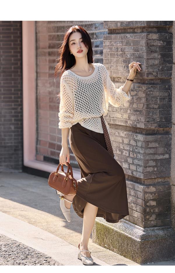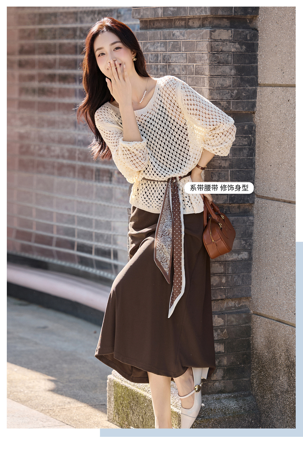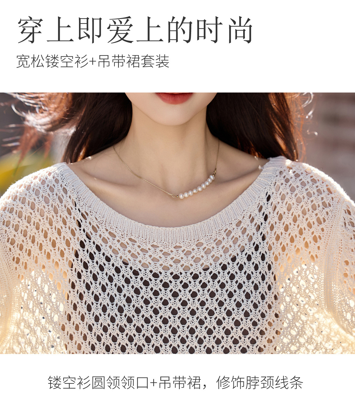 HY8633时尚连衣裙女2025秋季新款气质镂空罩衫+吊带裙显瘦两件套 商品图0
