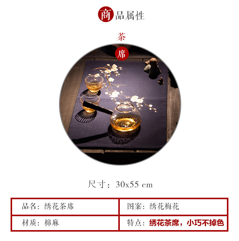 茶道配件-茶席-短款腊梅深蓝【茶席】30cm*55cm
