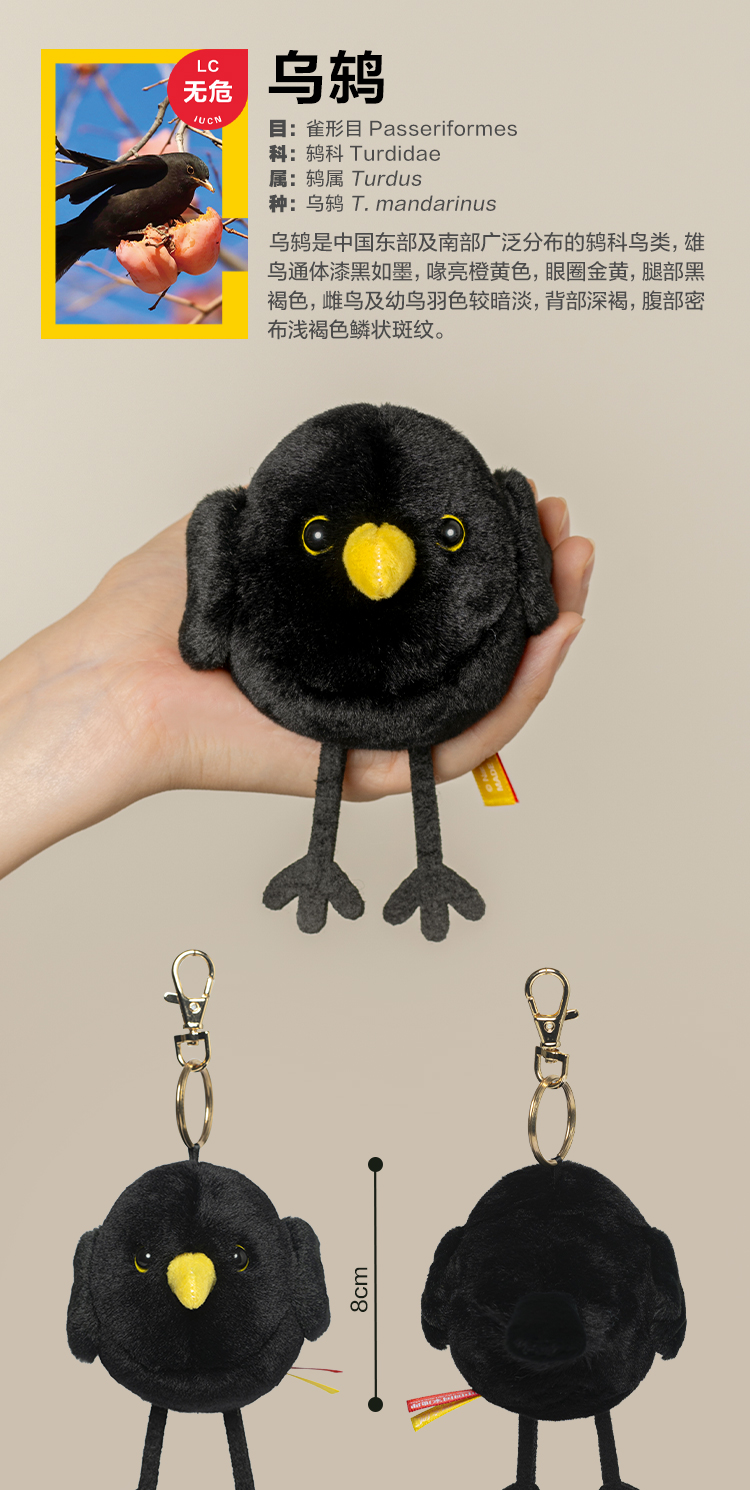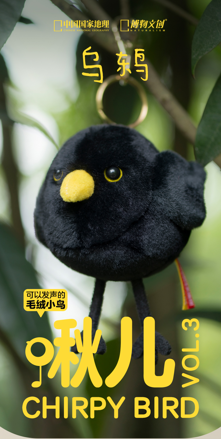 博物文创 啾儿系列第三弹 乌鸫 可发声小鸟球啾啾呆萌可爱节日礼物书包挂件